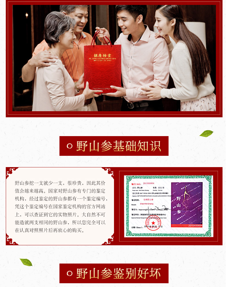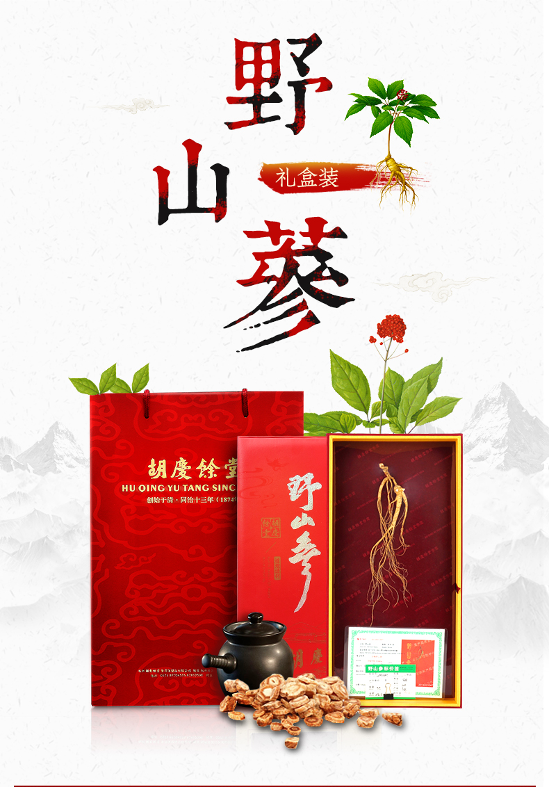 胡庆余堂15年足龄野山参4.5-4.7/4.8-5.0克礼盒装 带国检证书