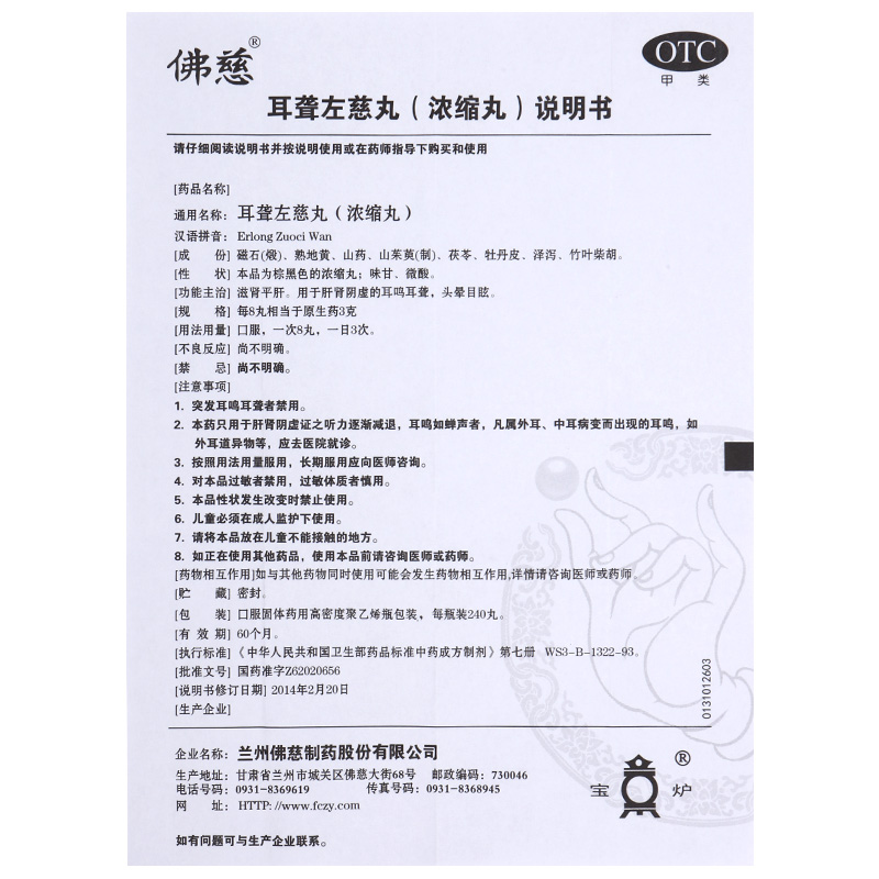 佛慈耳聋左慈丸(浓缩丸)240丸耳鸣耳聋肝肾阴虚头晕目眩滋肾平肝