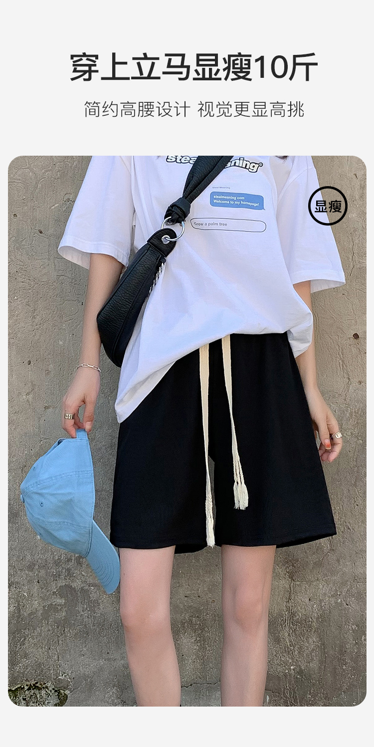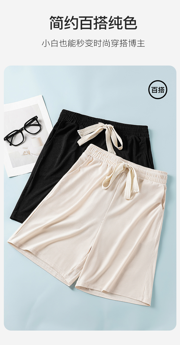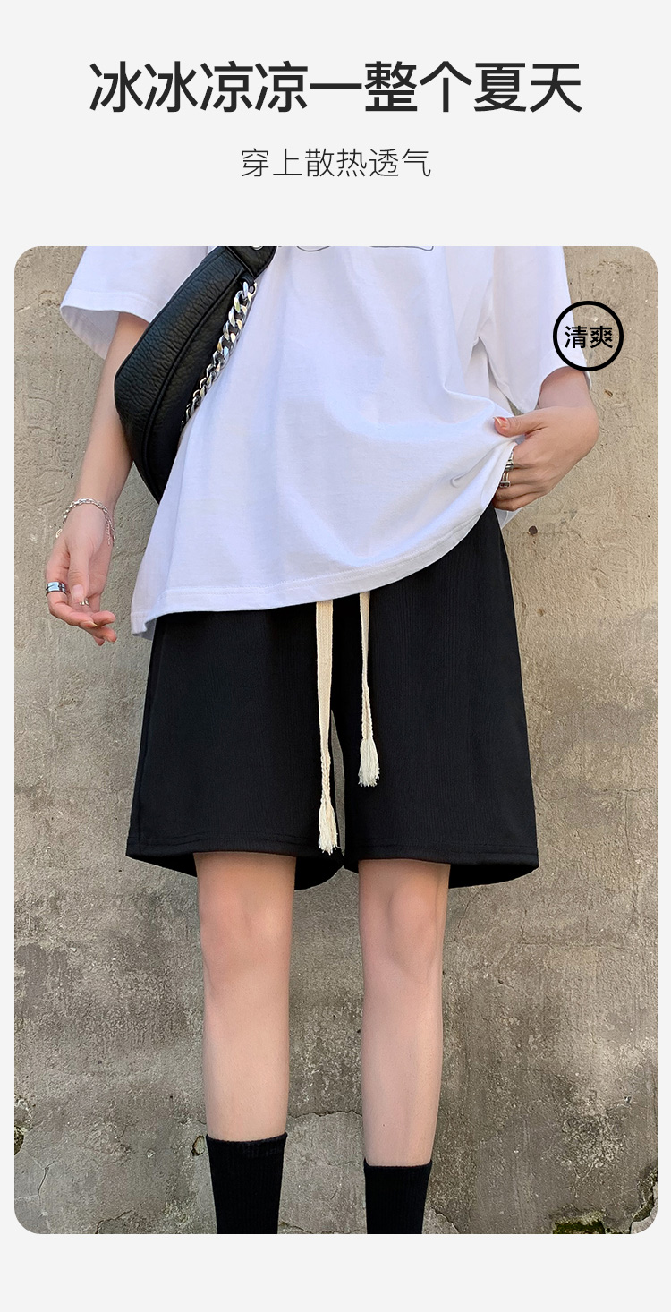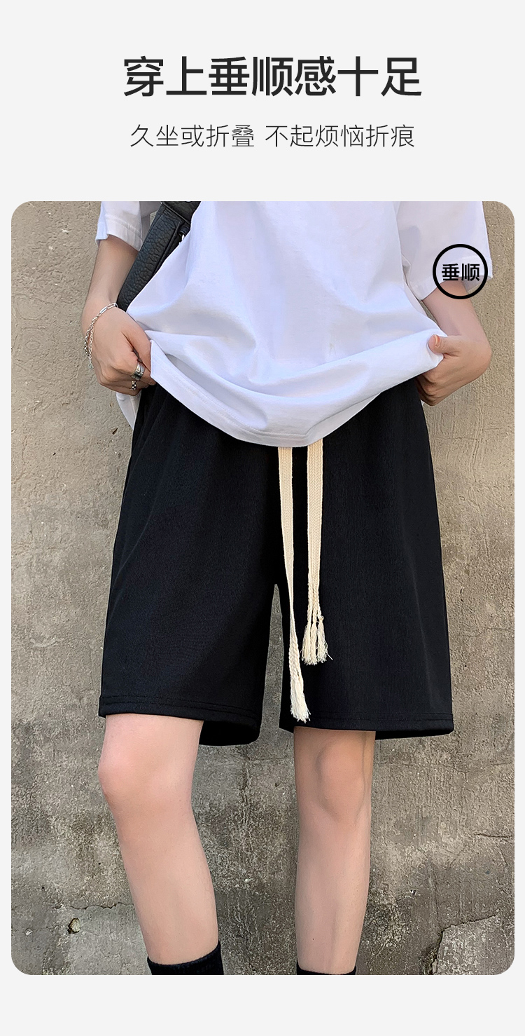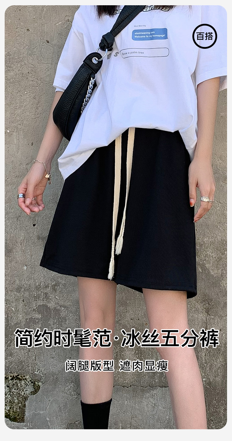夏季薄款高腰垂感显瘦抽绳冰丝透气五分裤西装裤短裤休闲裤女Z113冰丝五分裤