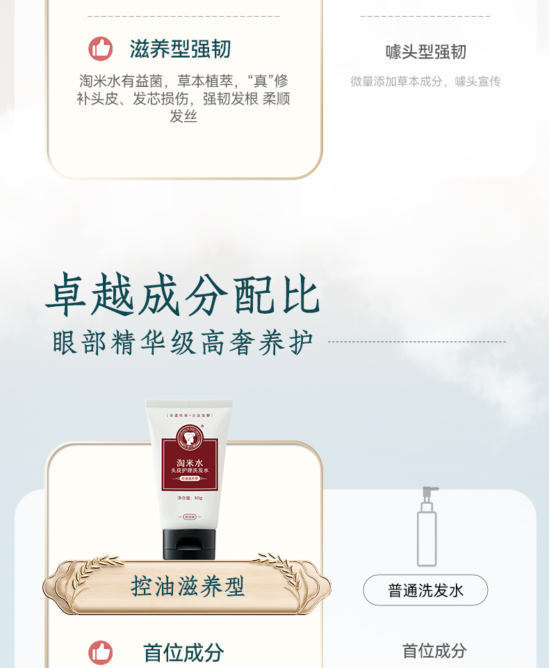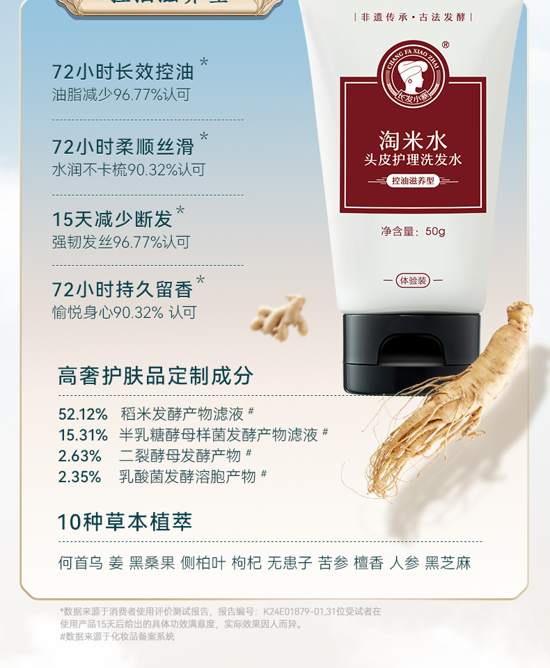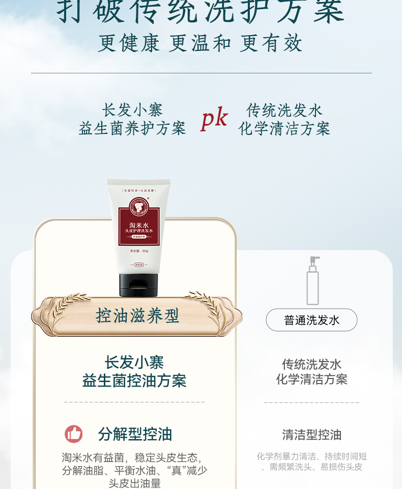 长发小寨淘米水控油滋养洗发水稻米蛋白养发乳旅行装组合