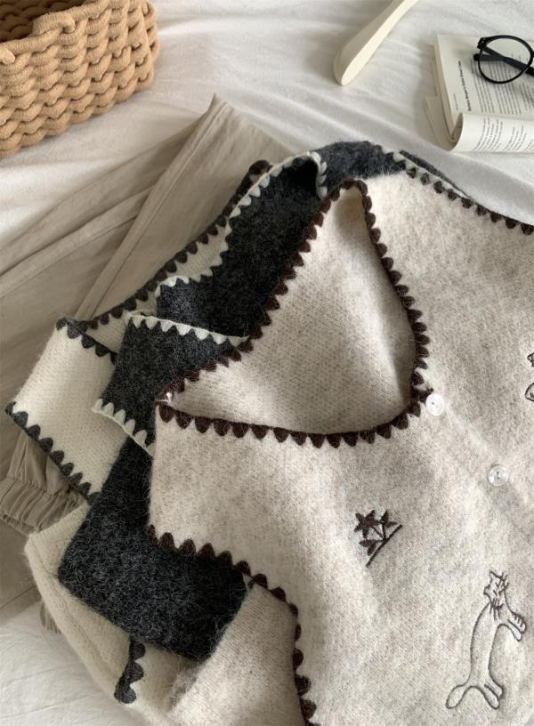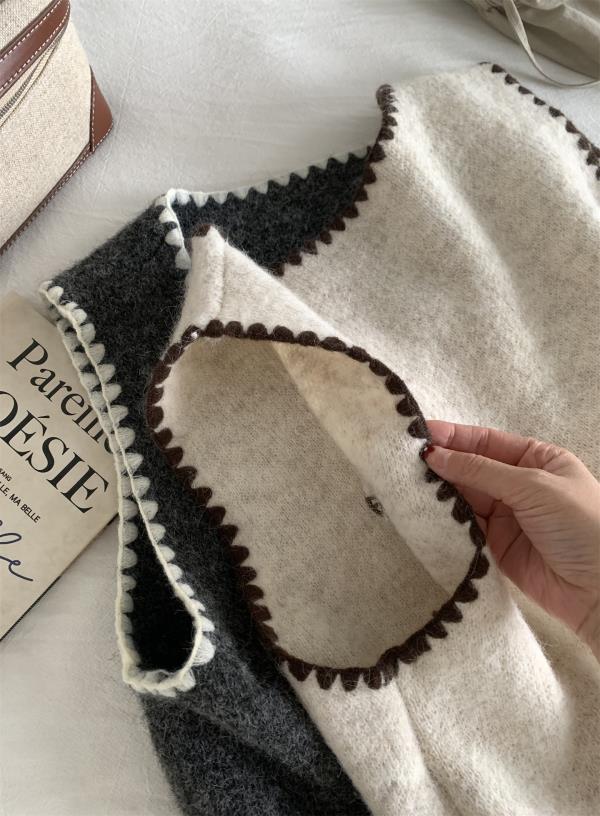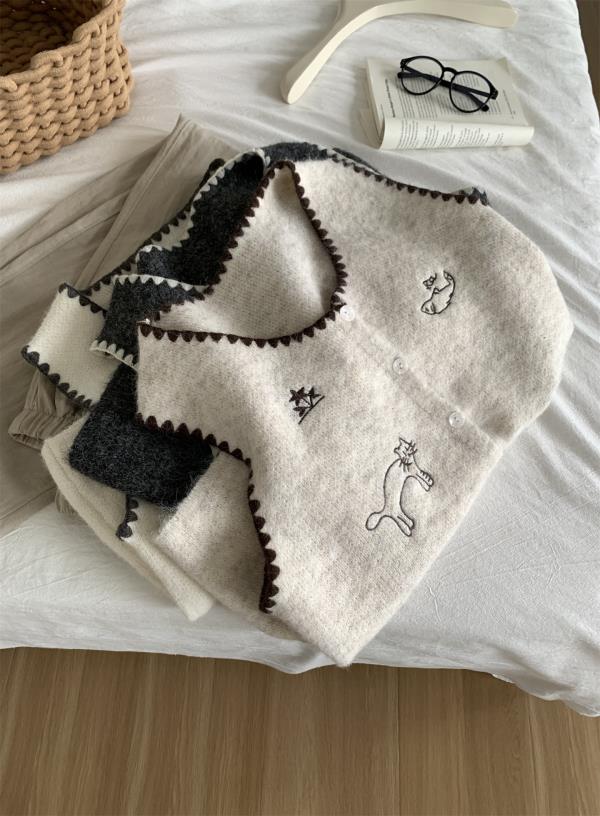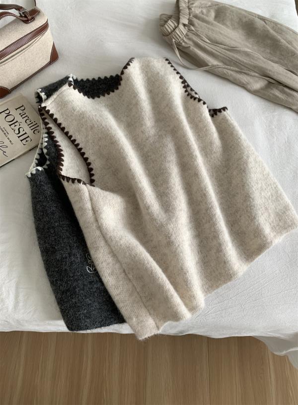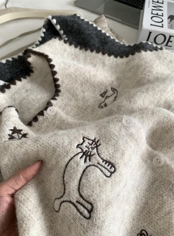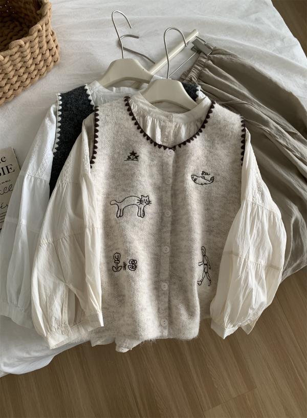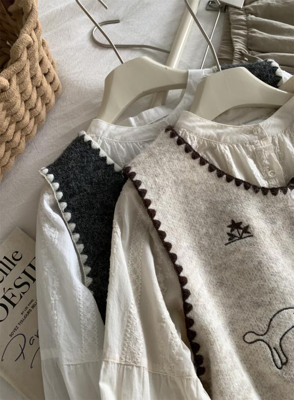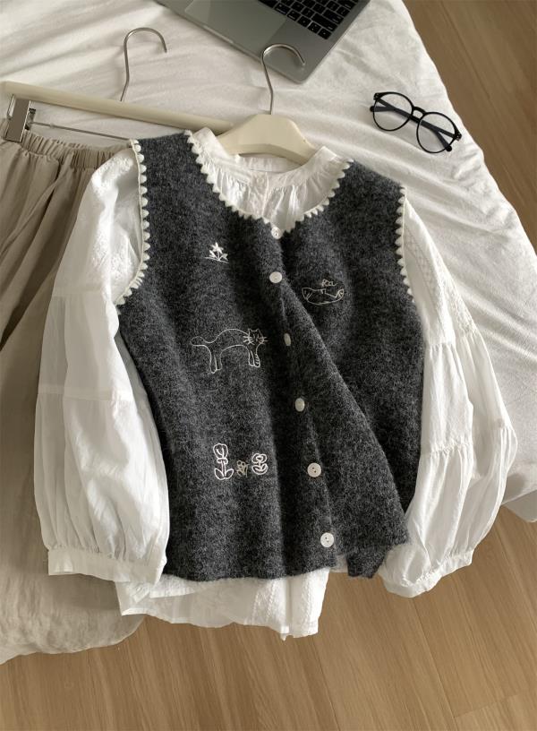 韩系减龄卡通刺绣针织马甲开衫!2025女款设计感花边贝壳扣毛衣背心秋冬~!