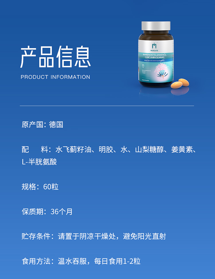 【一般贸易】德国Moslate水飞蓟籽油凝胶糖果0.6g*60粒/瓶