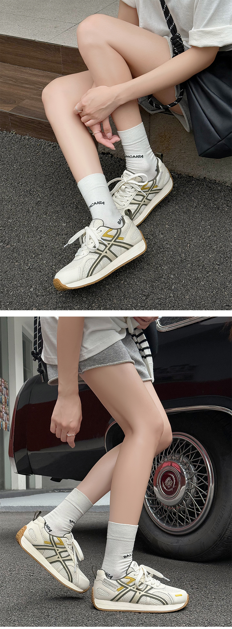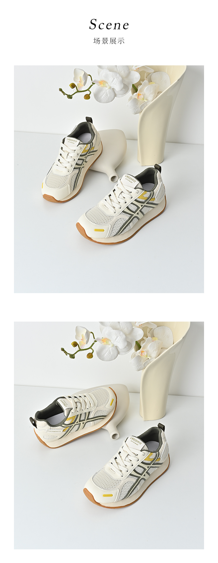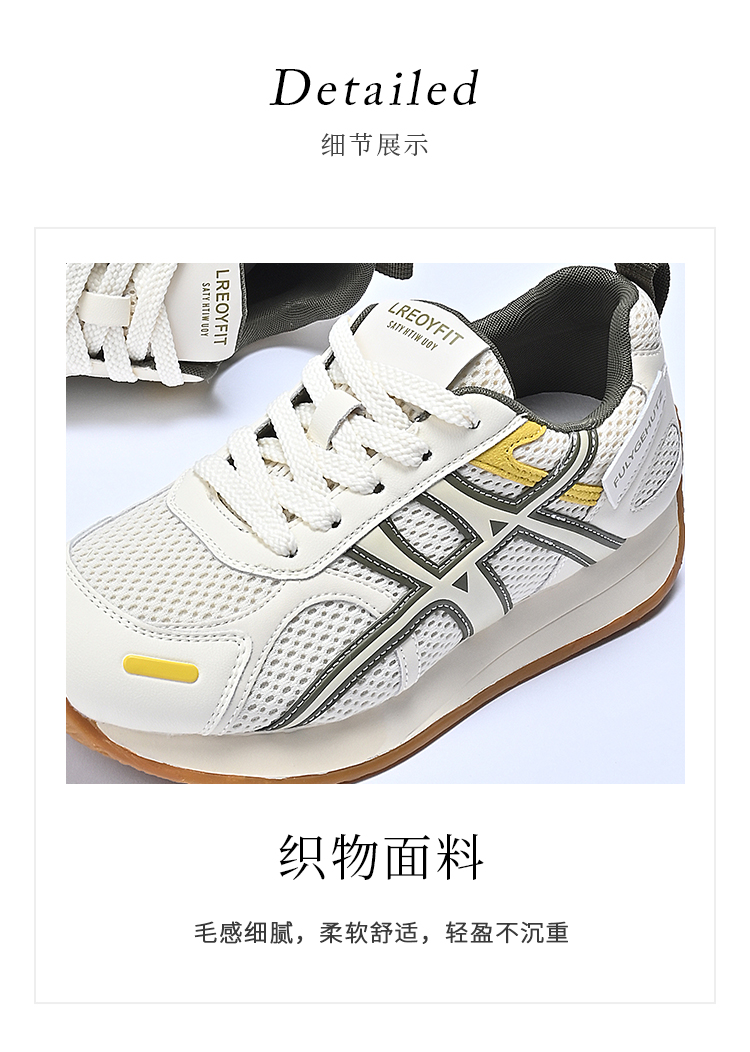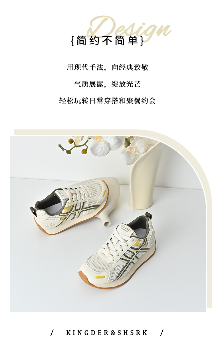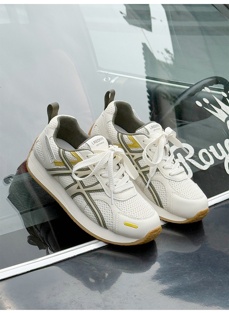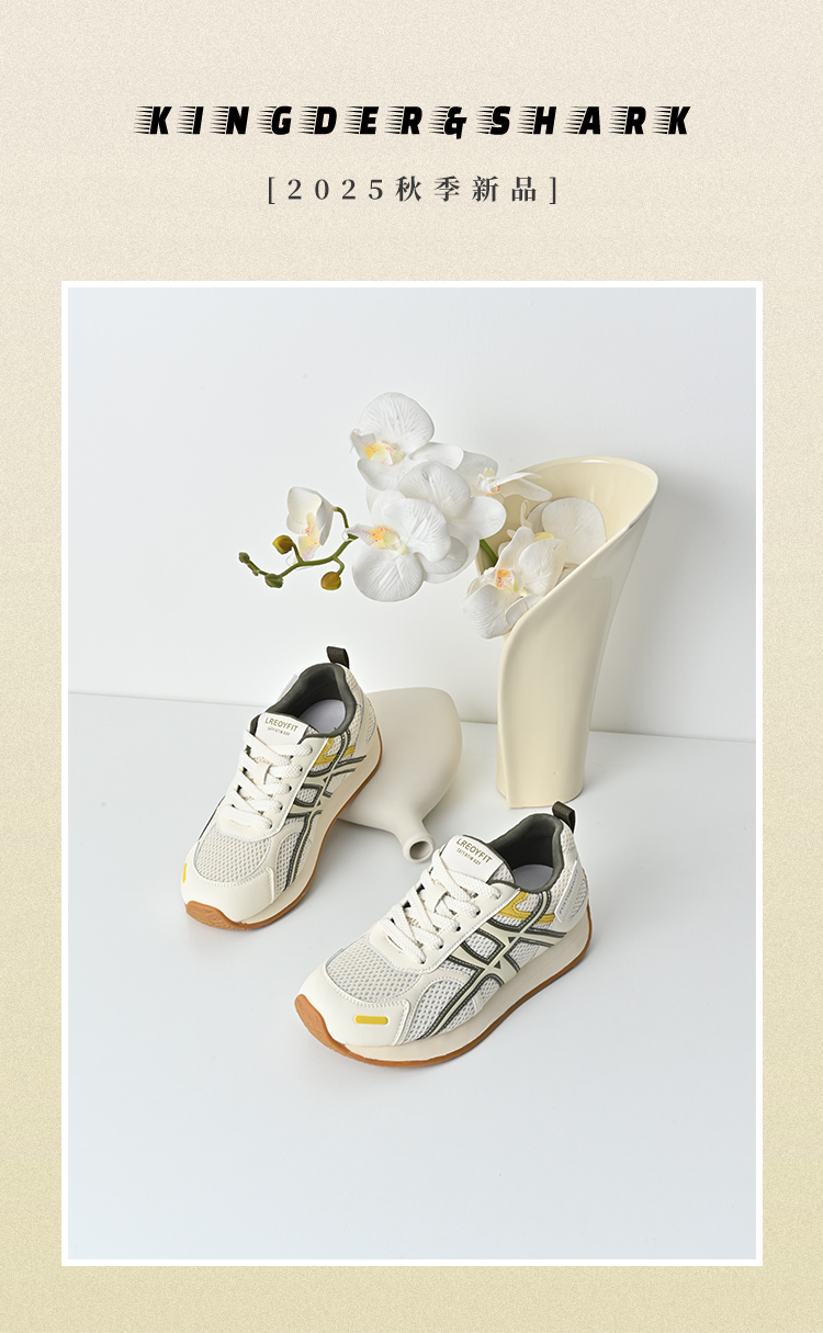 经典鲨2025秋专柜新品牛皮革韩版时尚拼色网面透气休闲鞋女KW160-537271