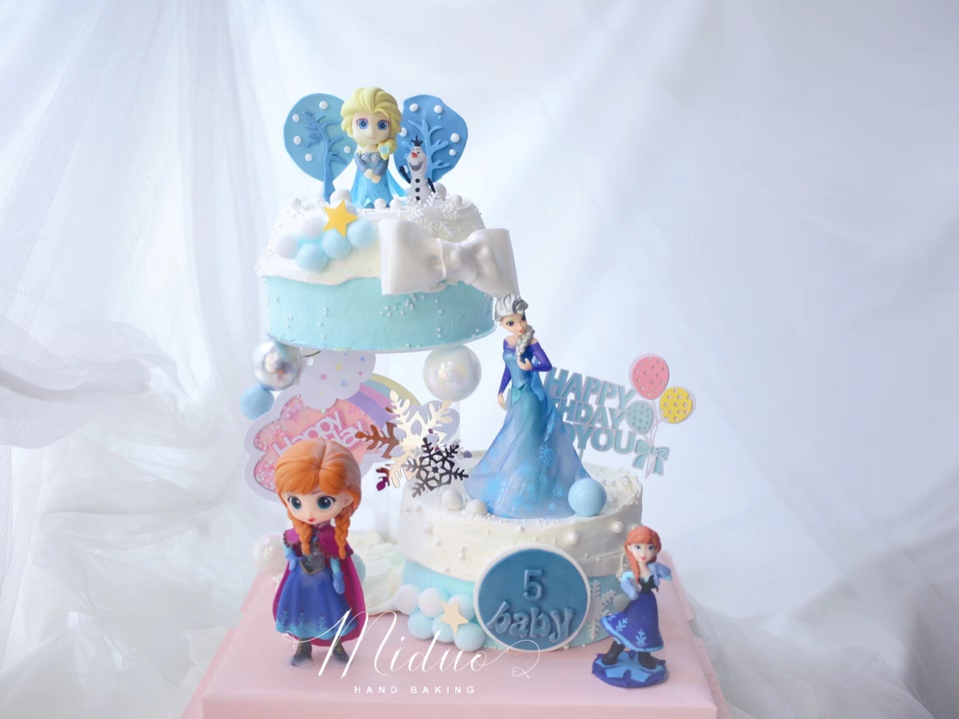 女孩款 冰雪奇缘主题 安娜 艾莎 雪宝 周岁 卡通 悬浮蛋糕