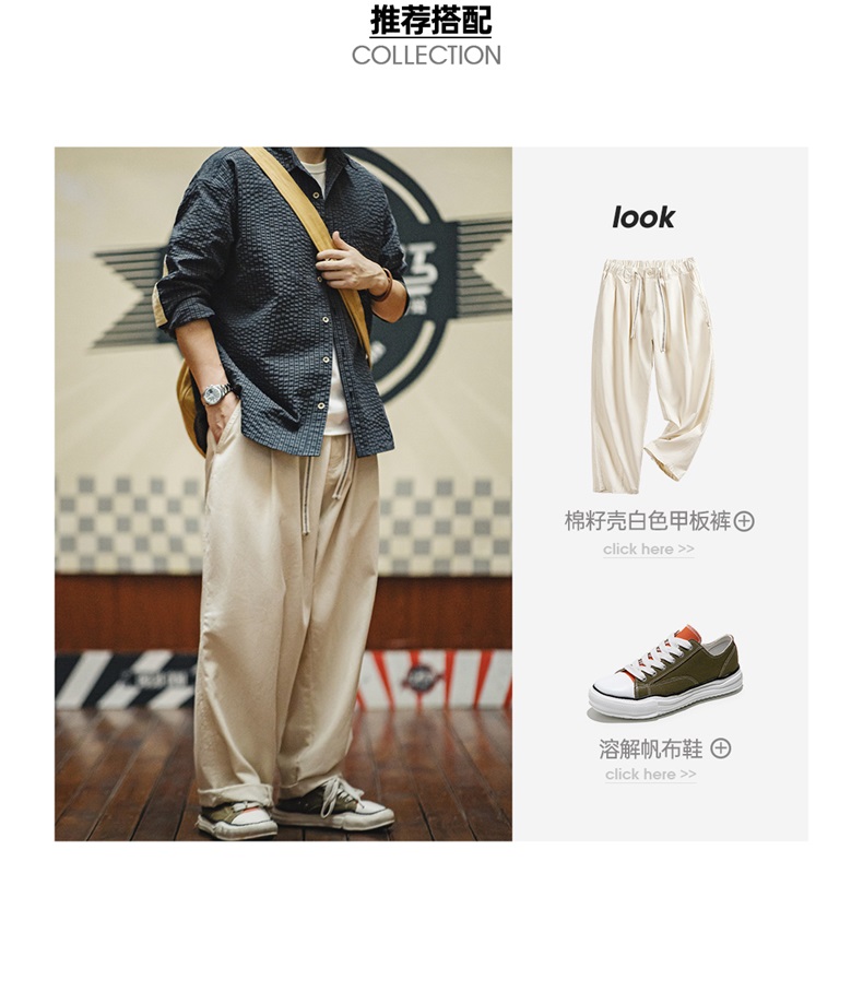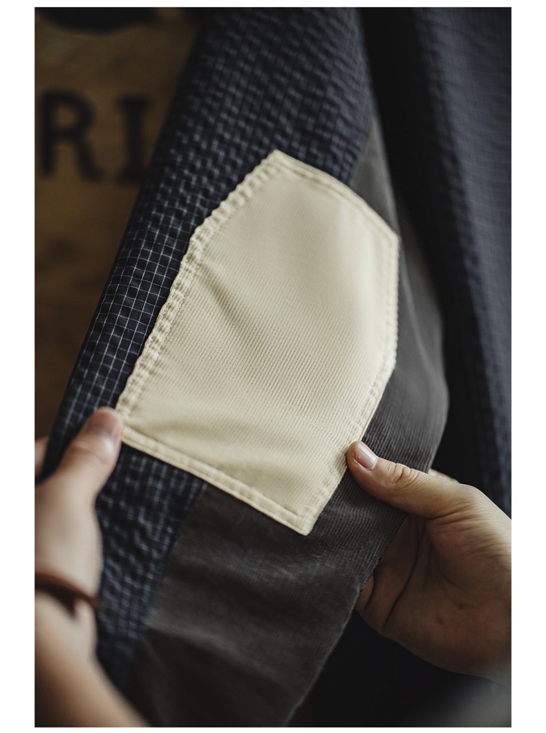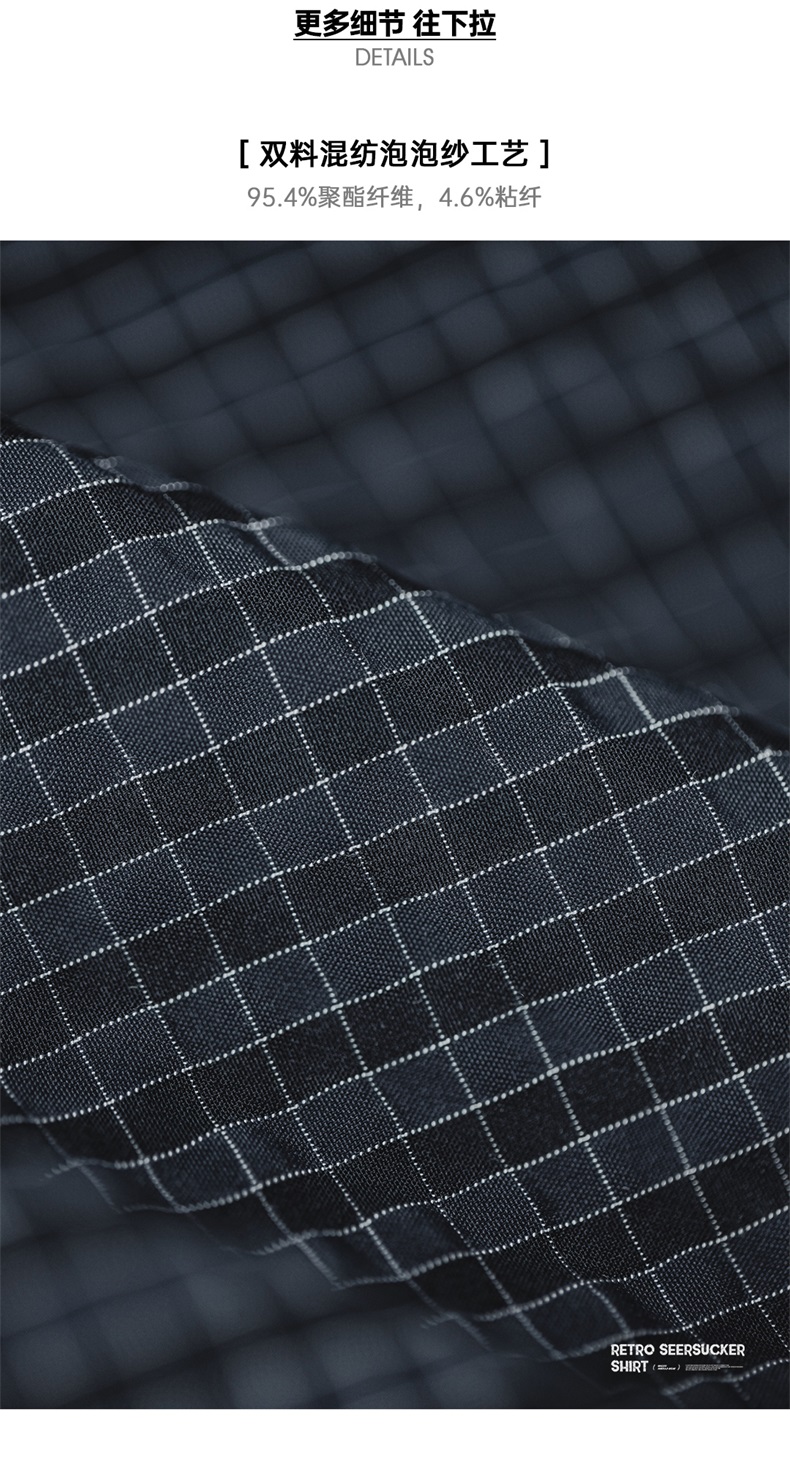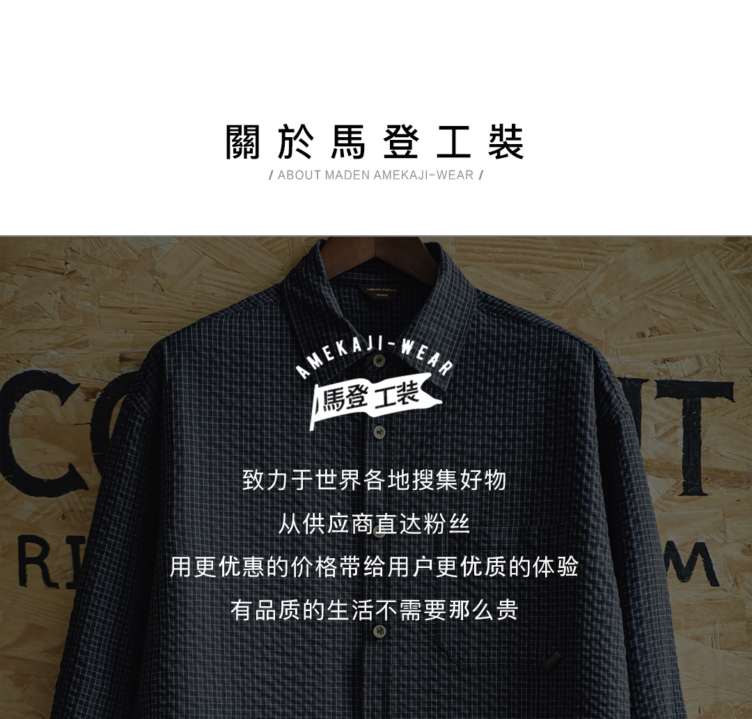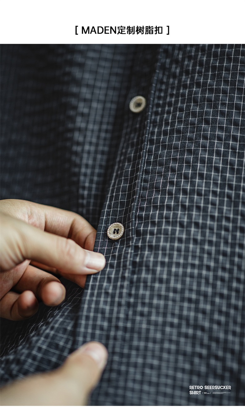 工装优选美式复古泡泡纱格子长袖衬衫肌理感翻领拼接衬衣外套男秋