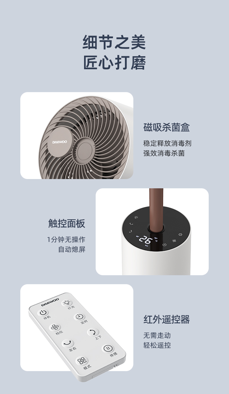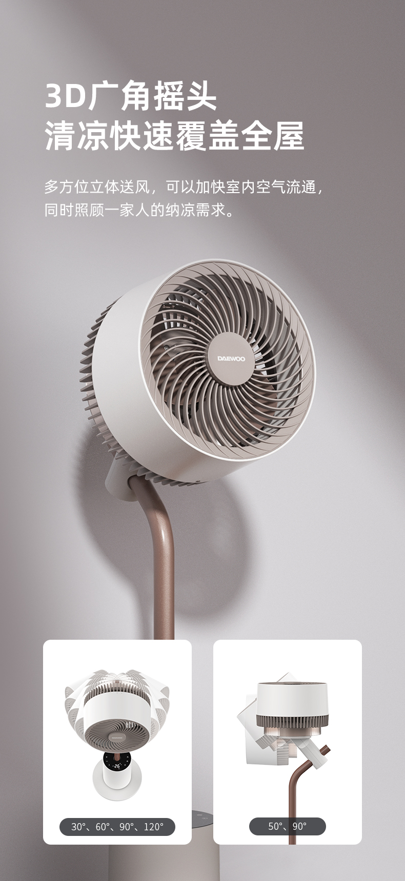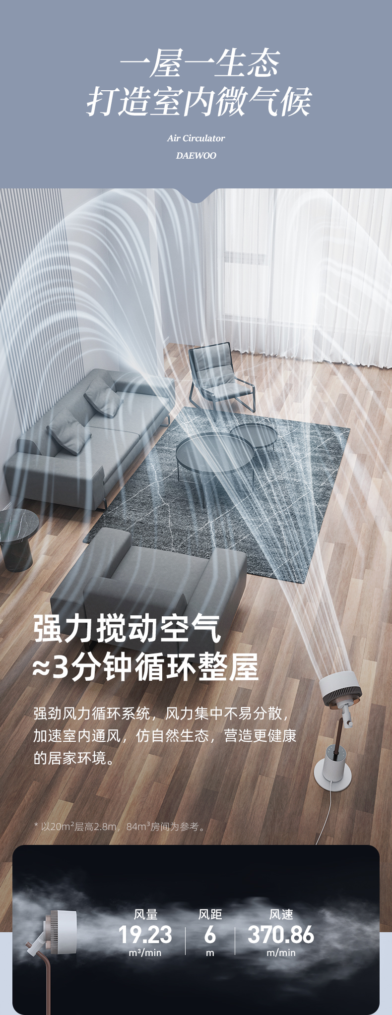 大宇空气循环扇家用轻音台立式智能遥控摇头落地扇电风扇