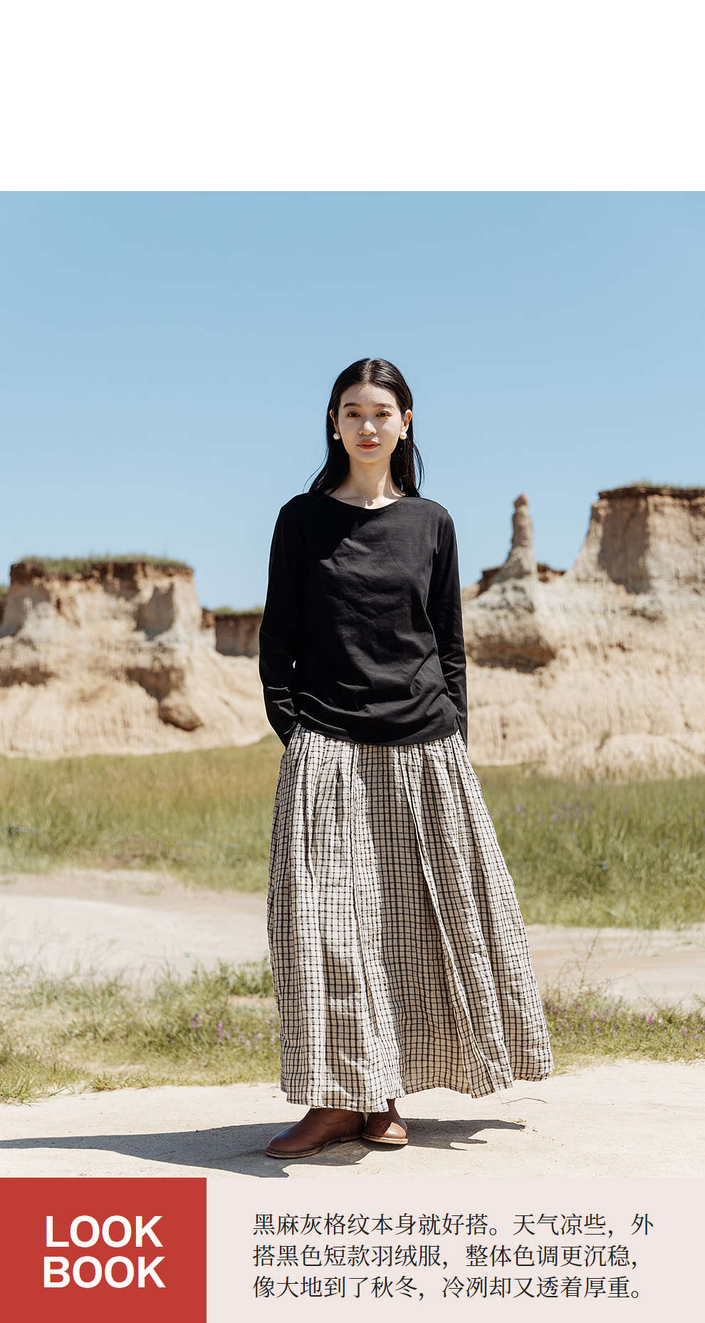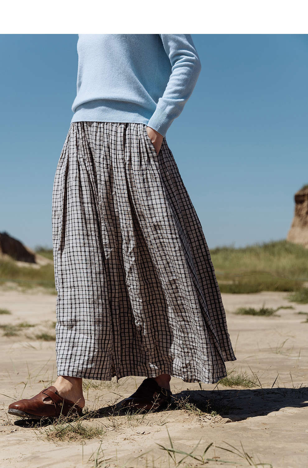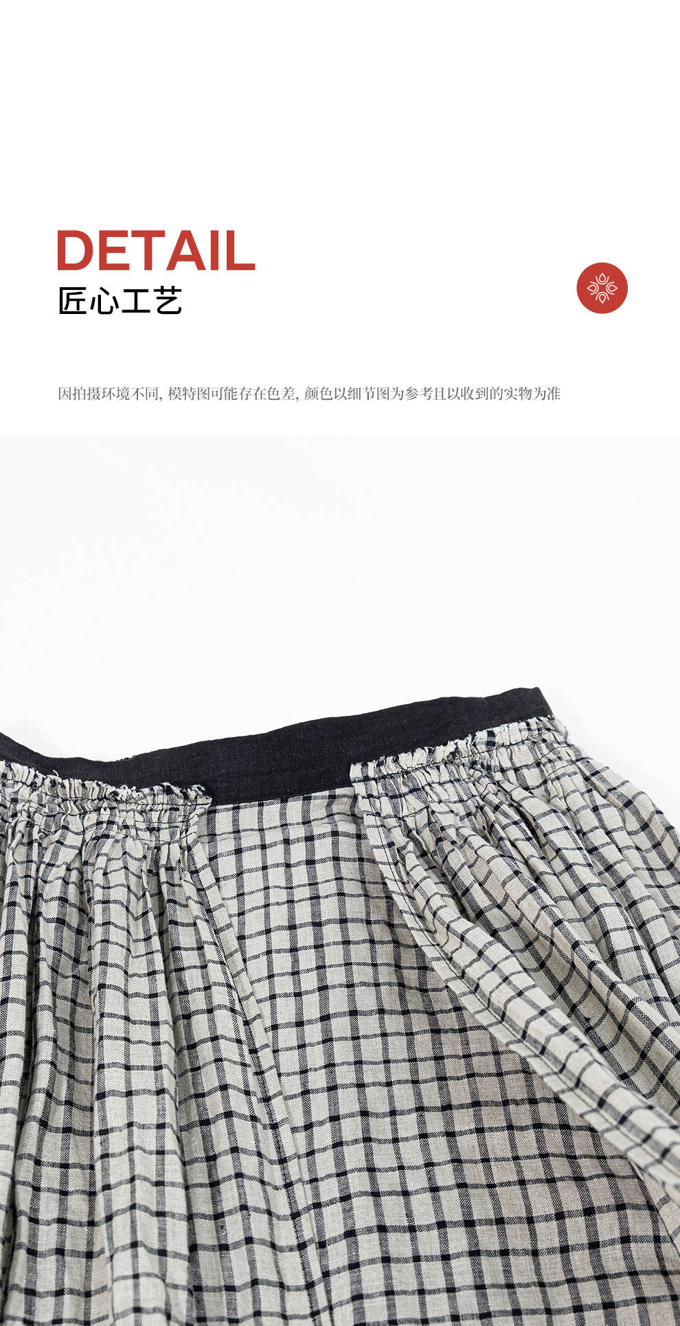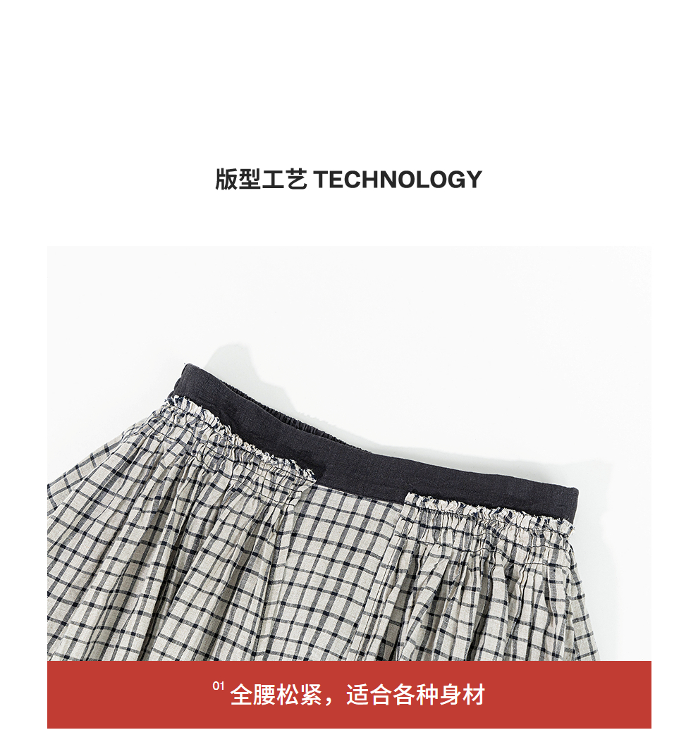 绽放608朵/复古格纹气质显瘦A字全腰松紧半身裙女秋新款半身长裙