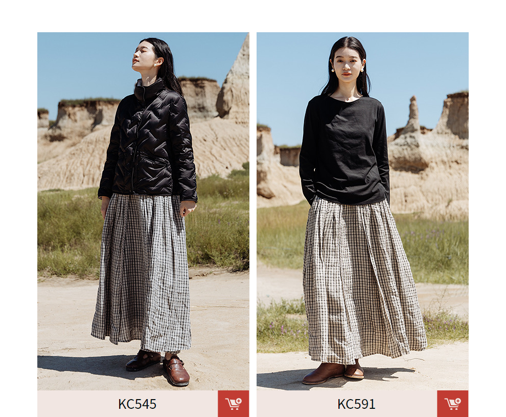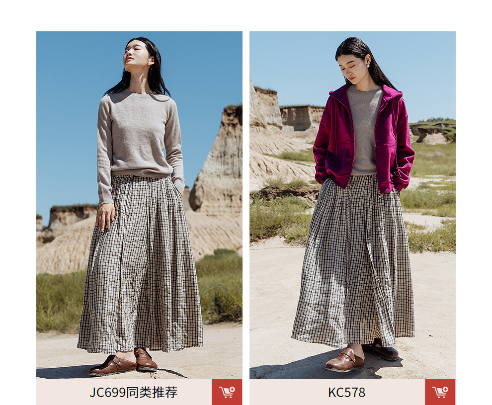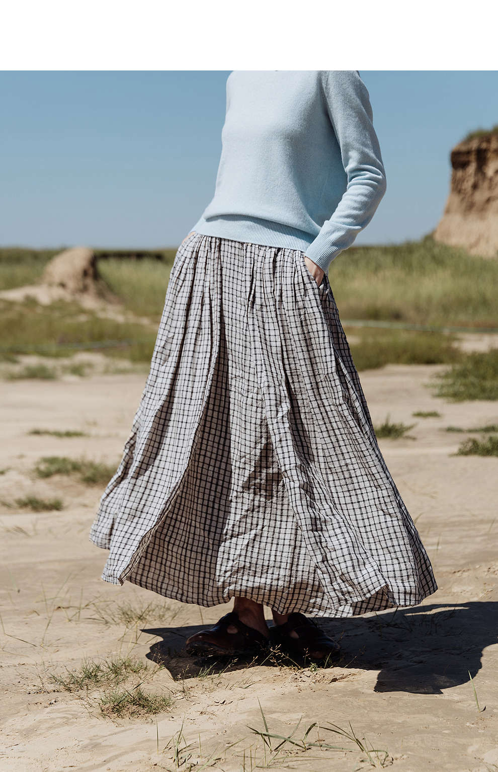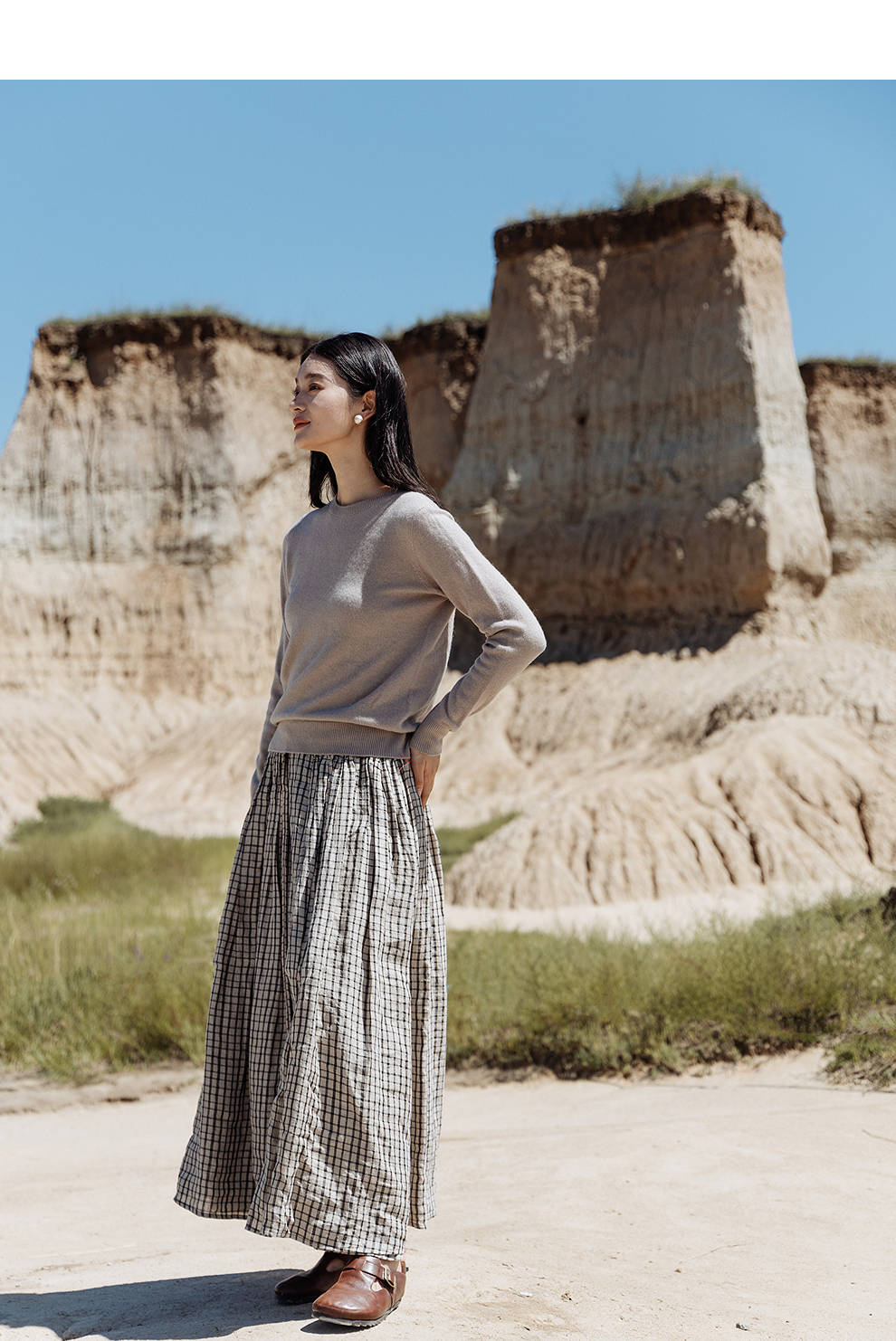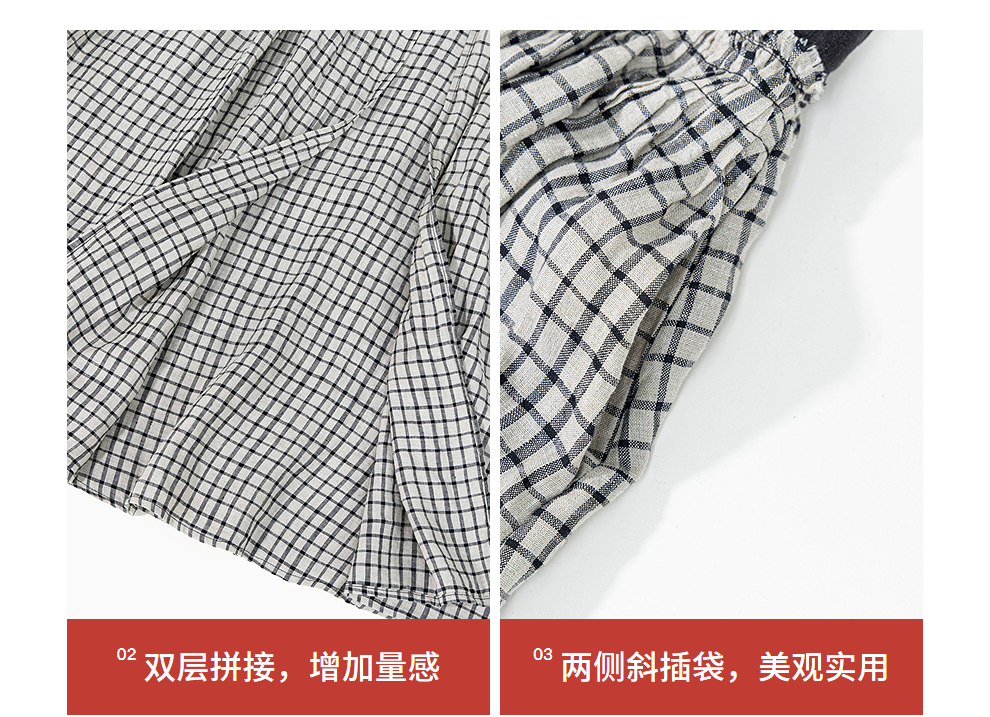 绽放608朵/复古格纹气质显瘦A字全腰松紧半身裙女秋新款半身长裙