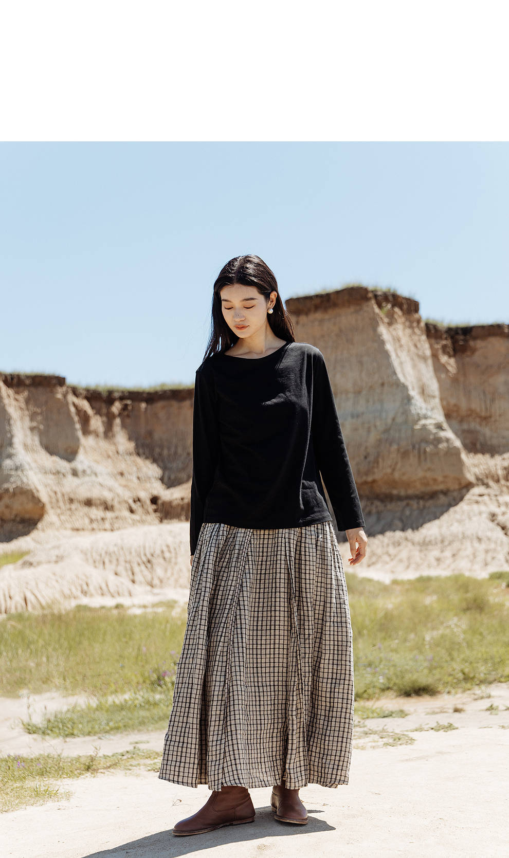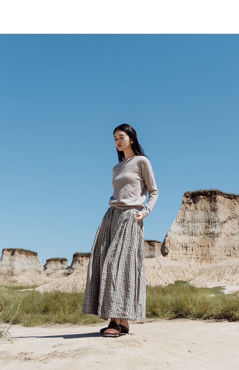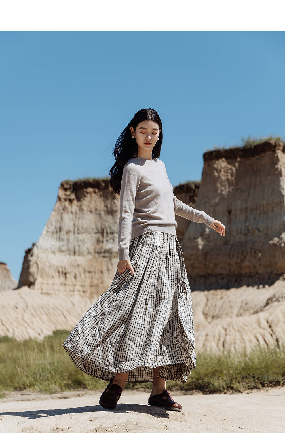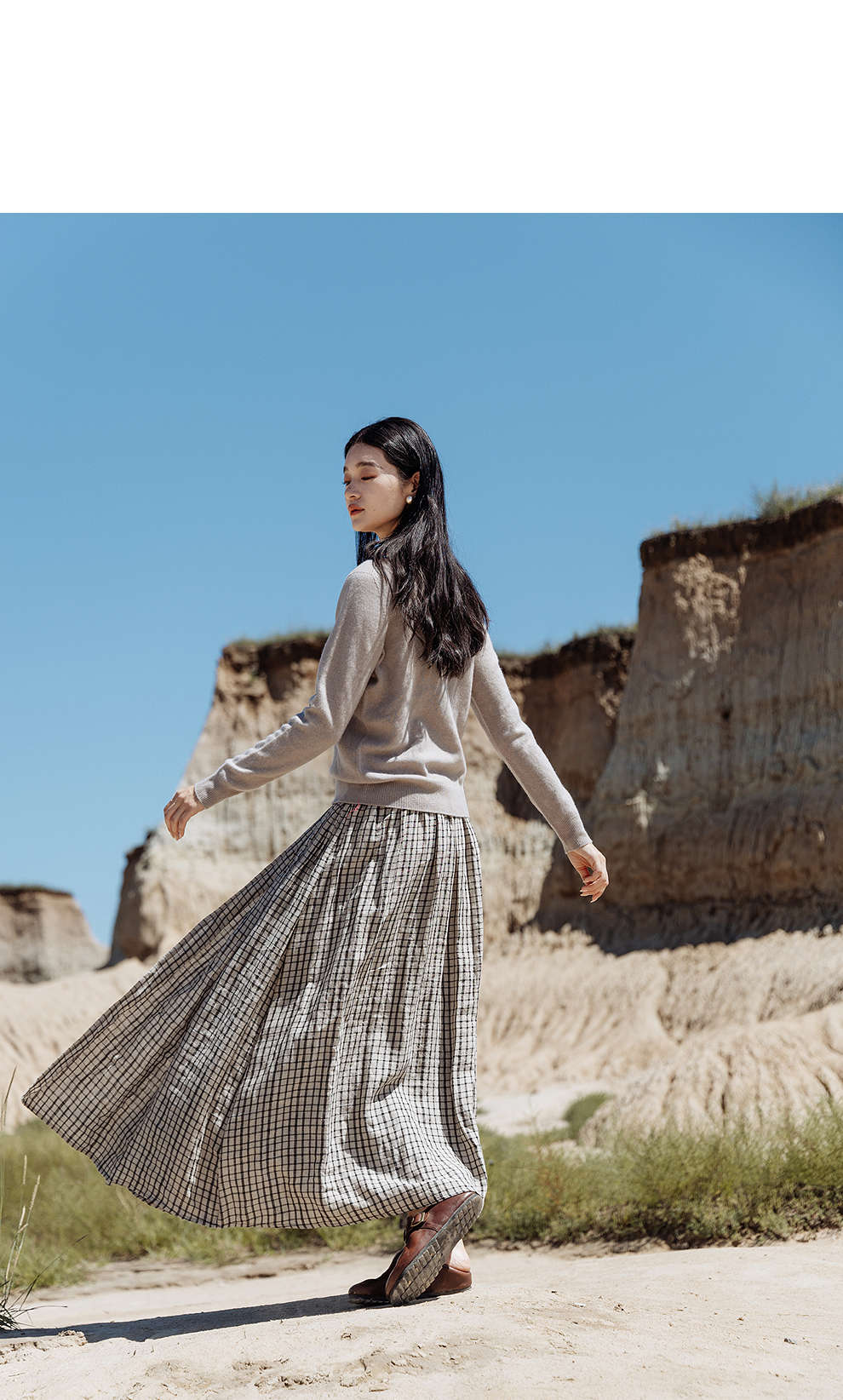 绽放608朵/复古格纹气质显瘦A字全腰松紧半身裙女秋新款半身长裙