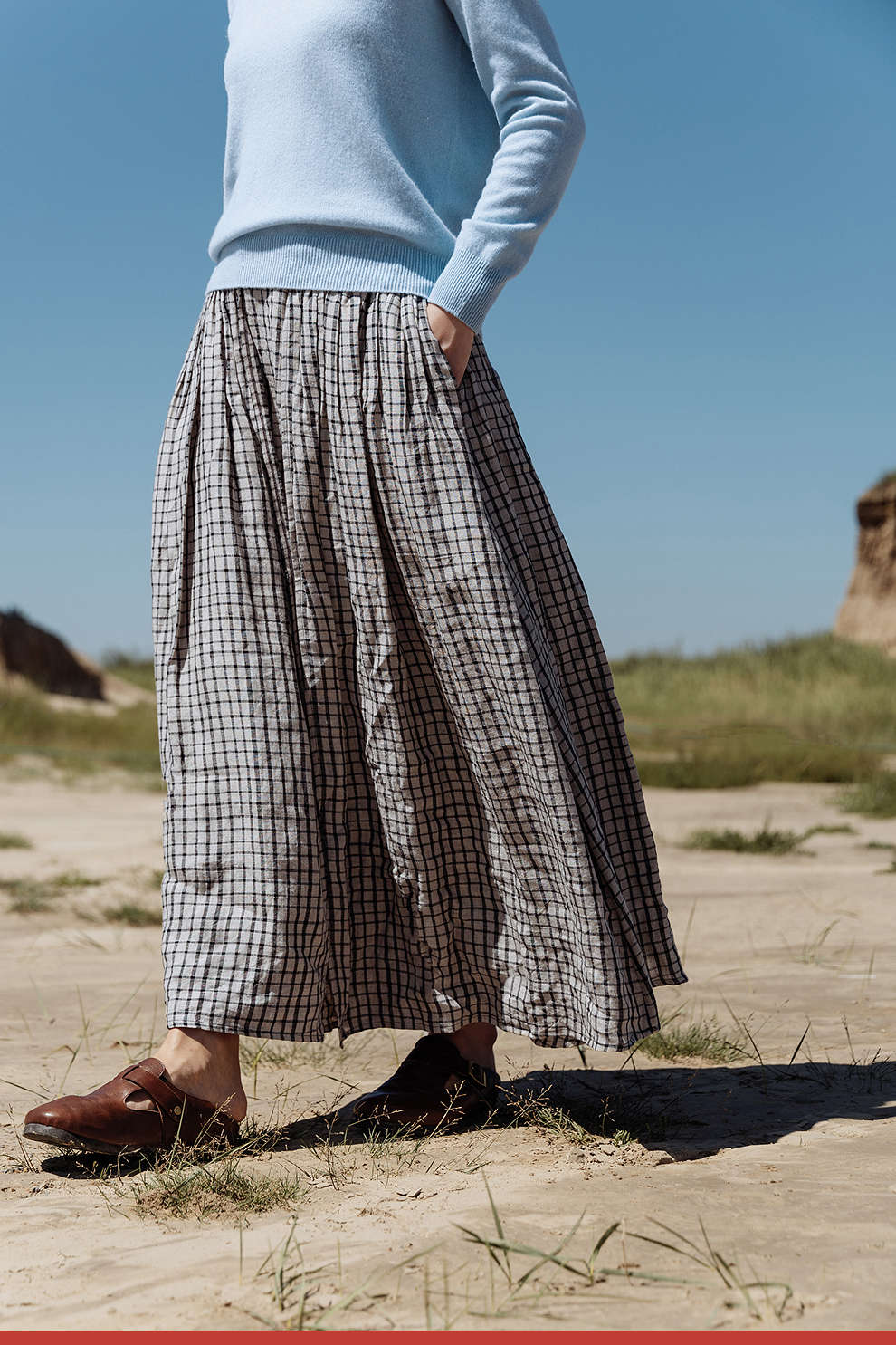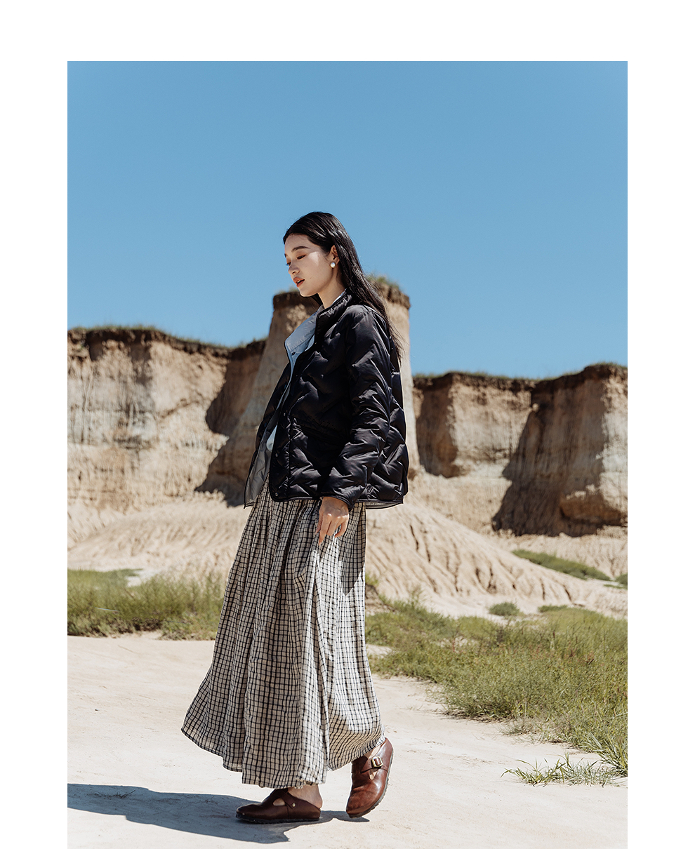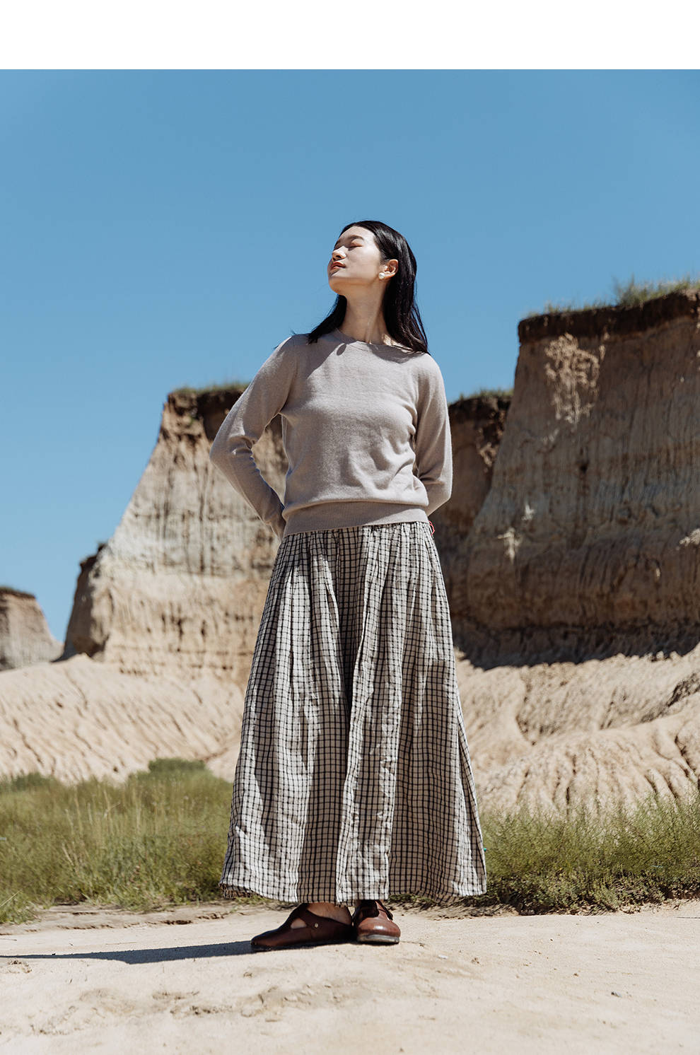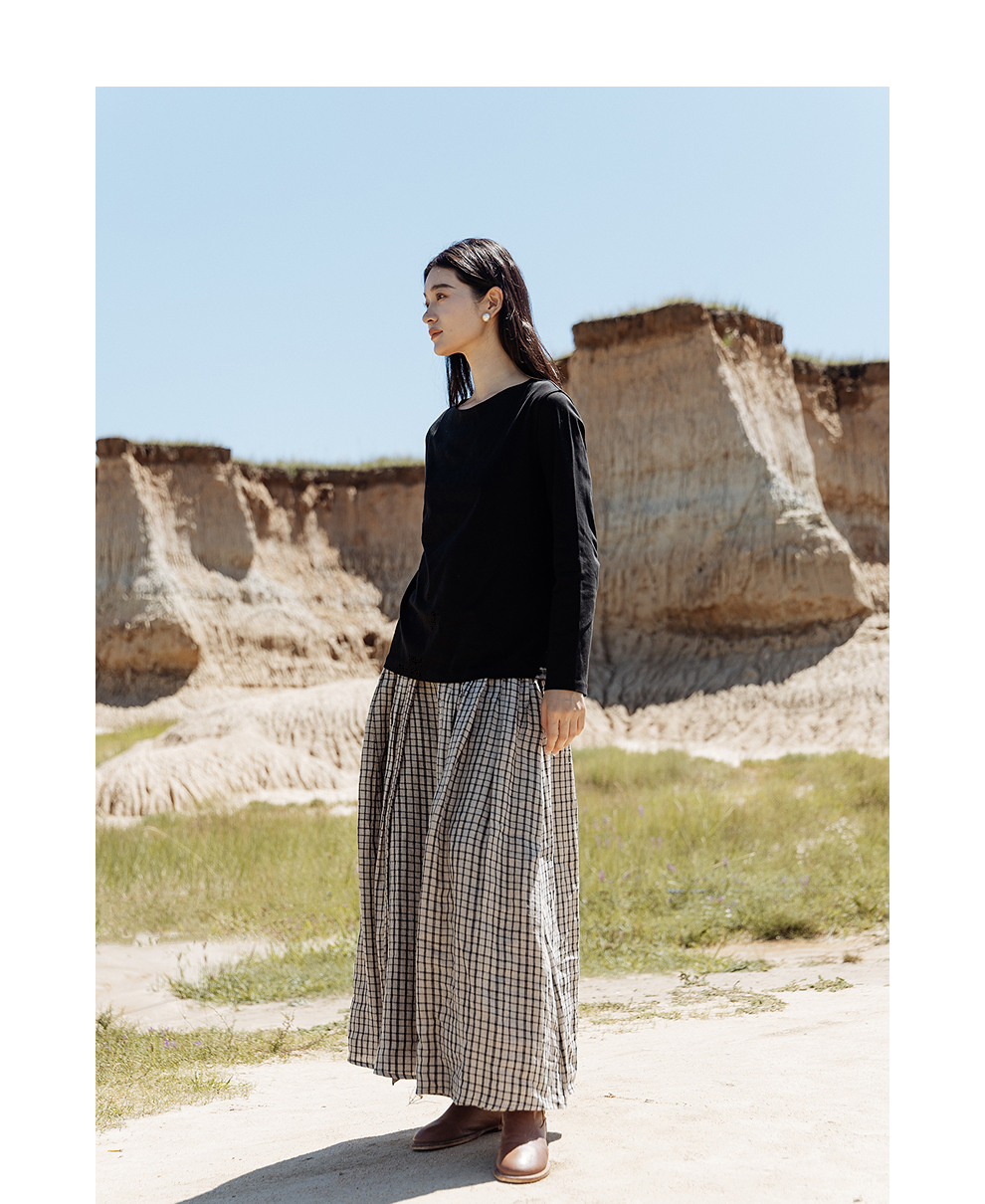 绽放608朵/复古格纹气质显瘦A字全腰松紧半身裙女秋新款半身长裙