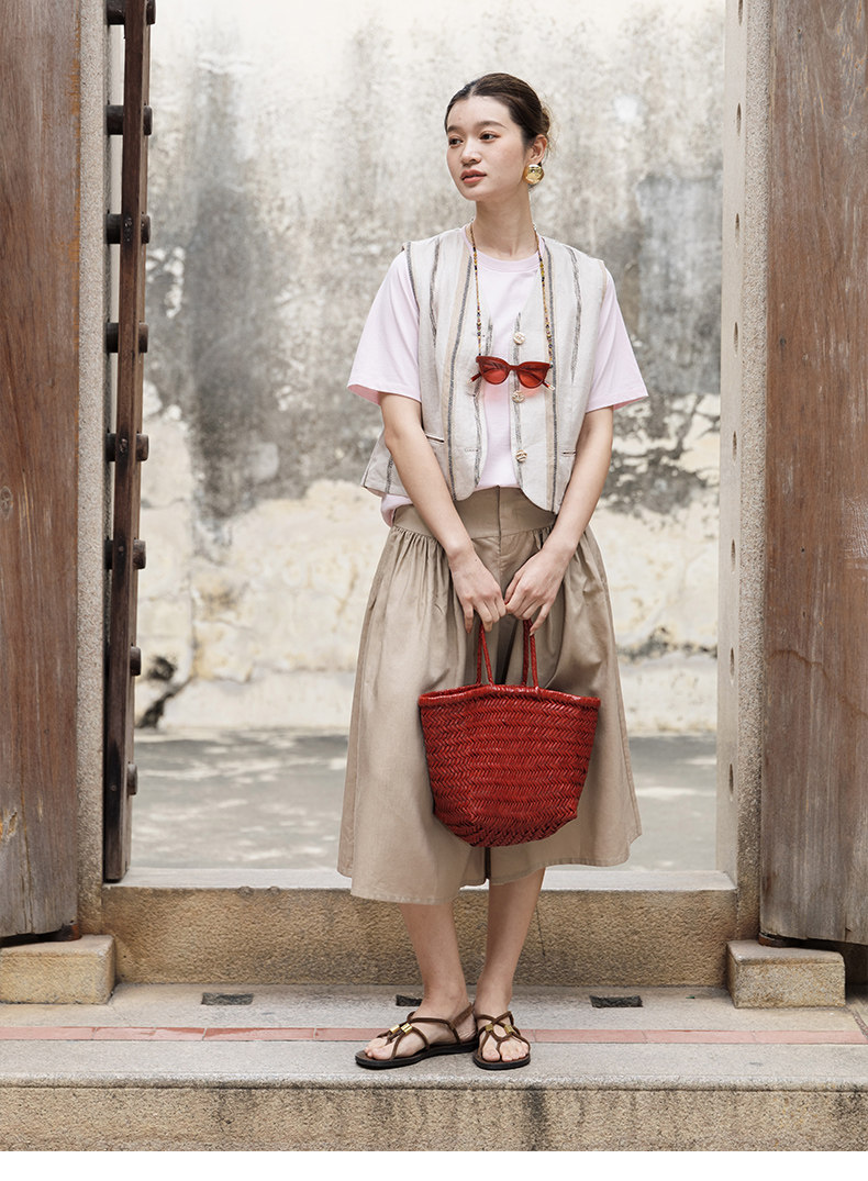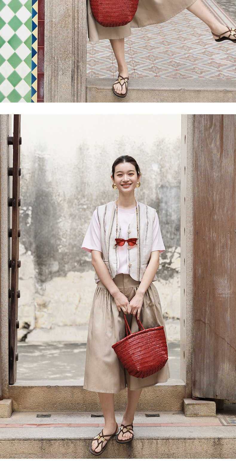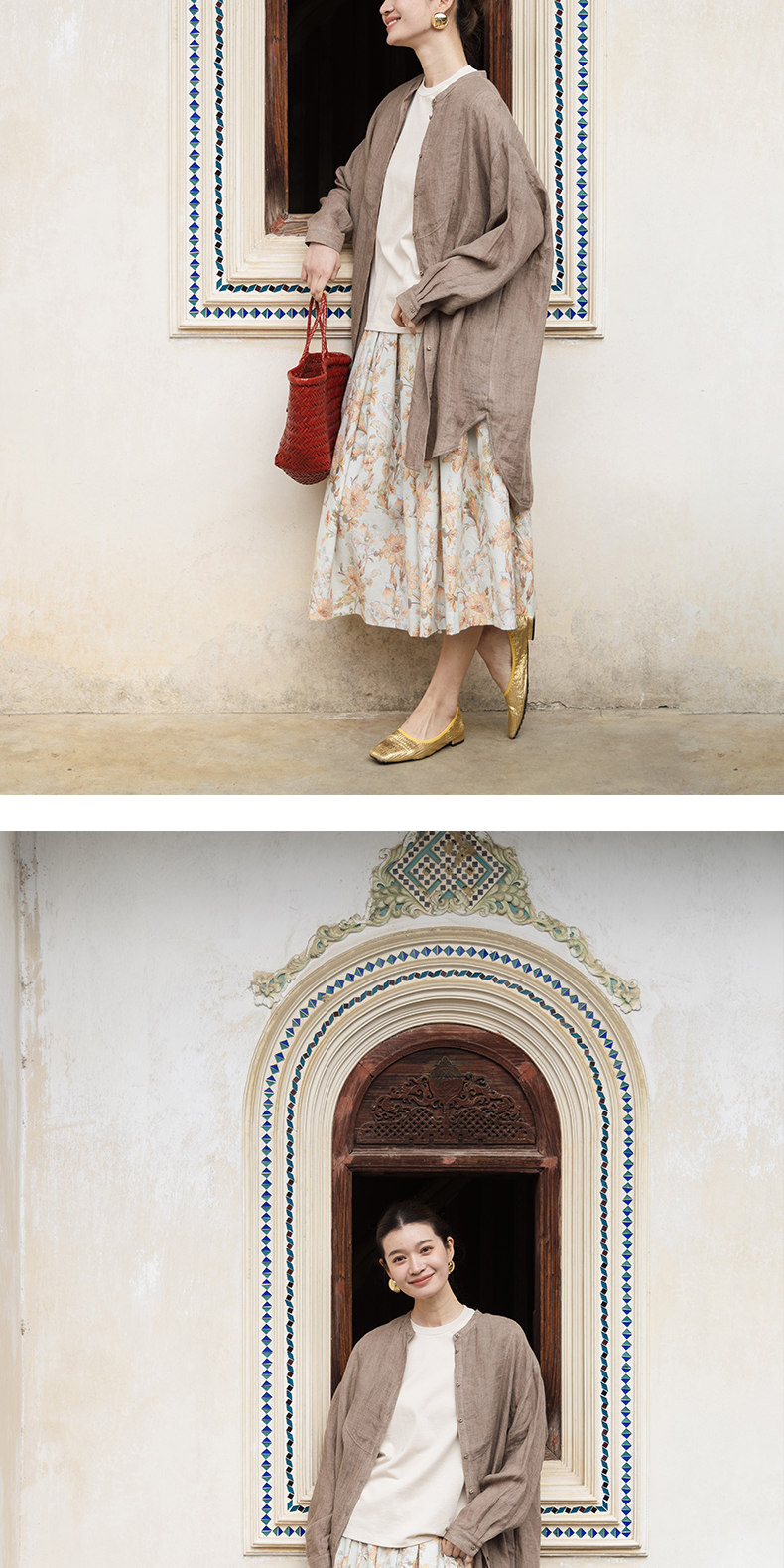 以天然亚麻为载体,融合热烈色彩与自在剪裁为身在城市、心怀远方的女性提供兼具美学与舒适的旅行着装
