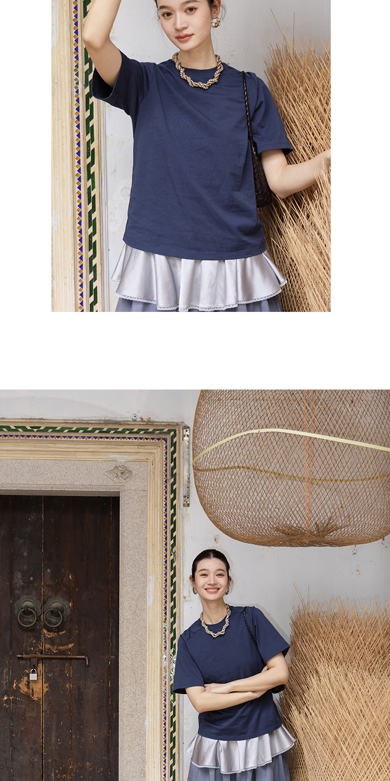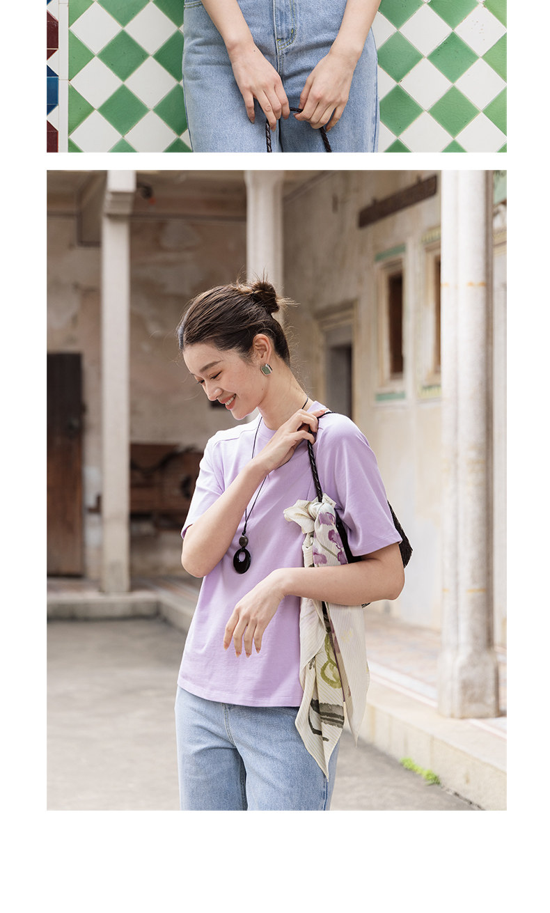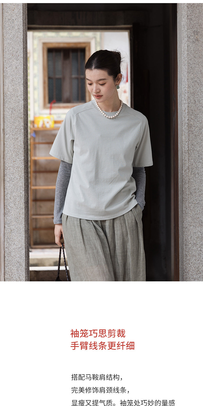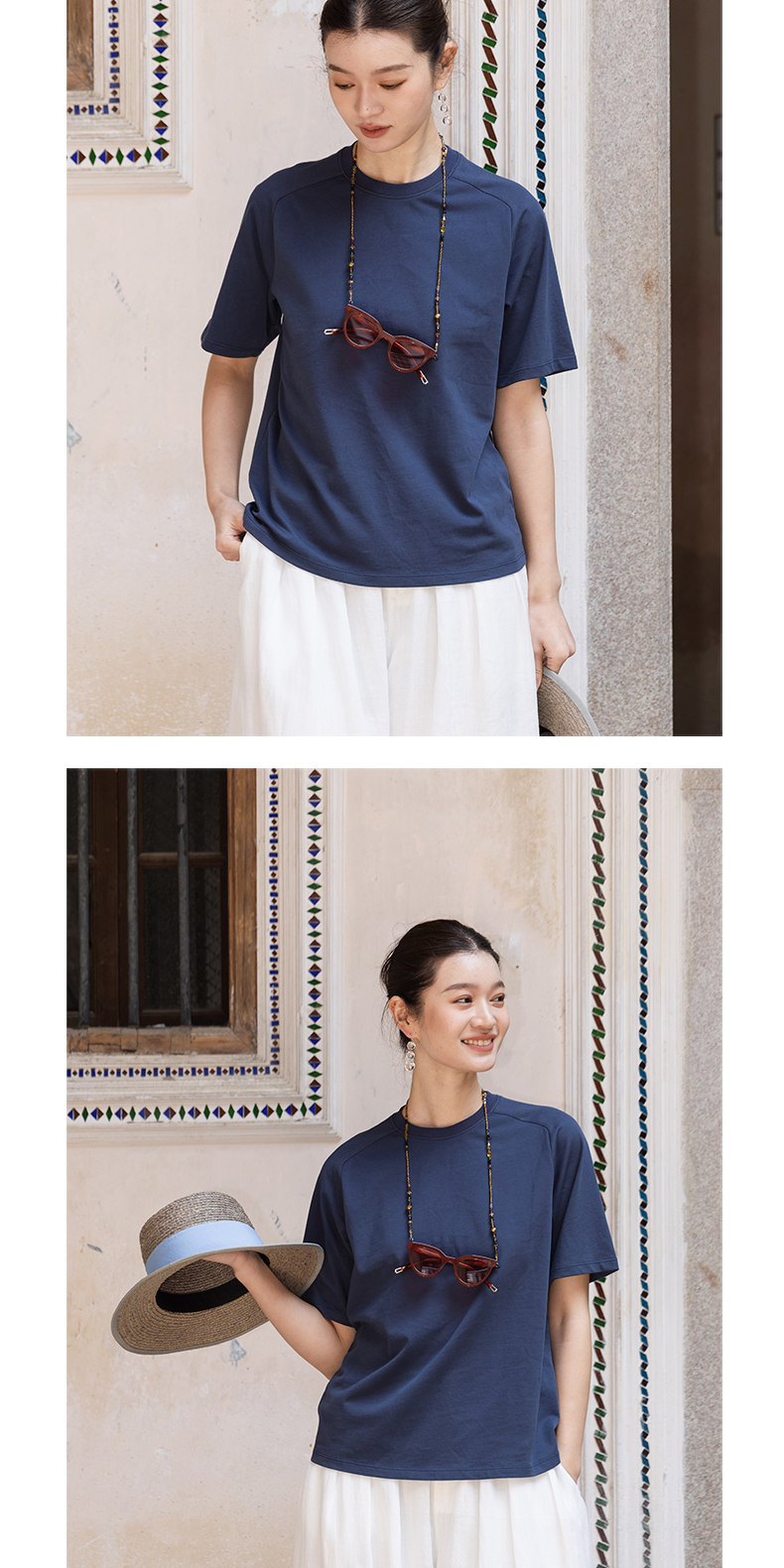 特绽放200朵/马鞍T*棉多色显瘦马鞍肩短袖T恤女上衣夏通勤打底衫