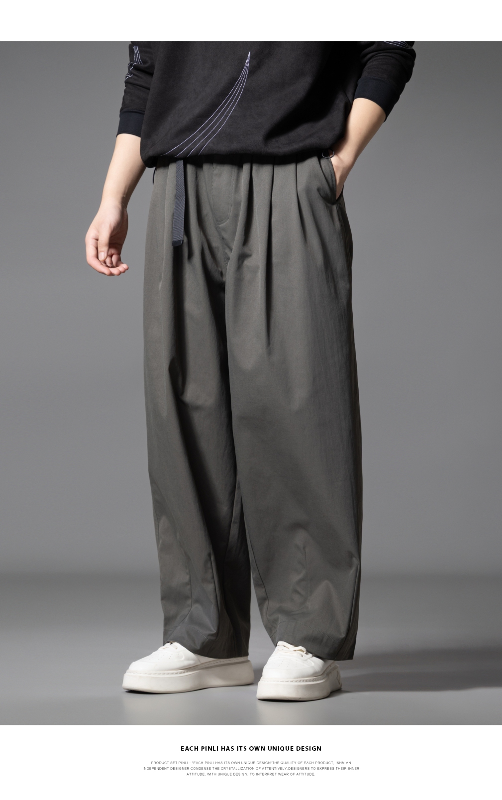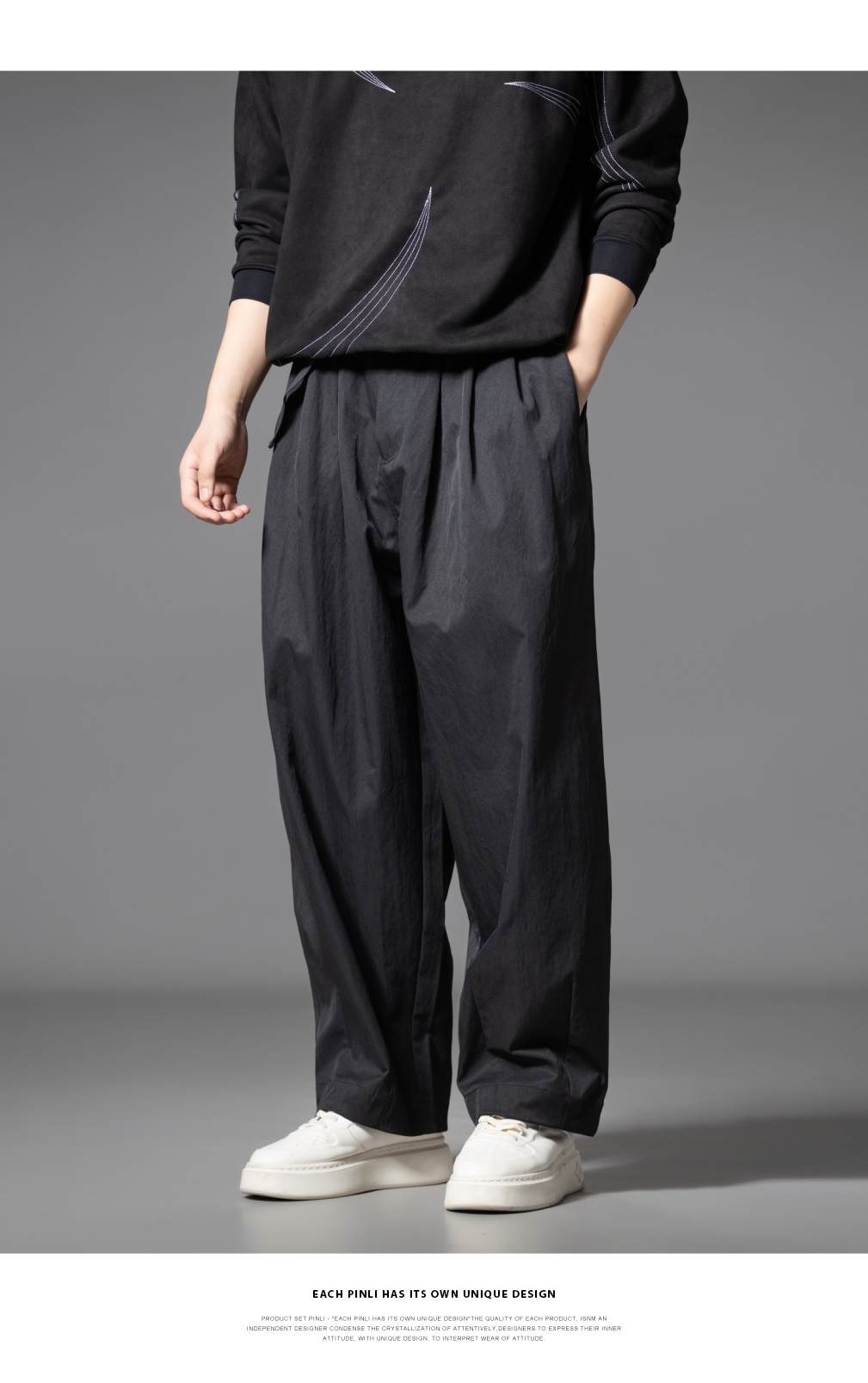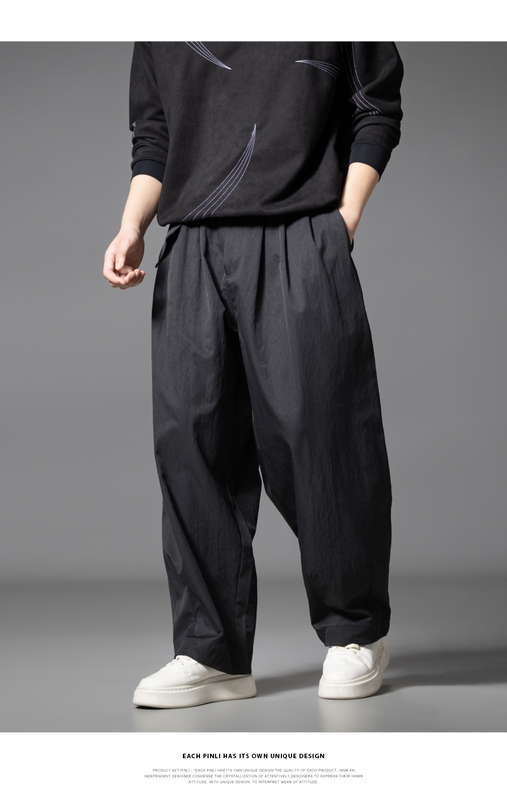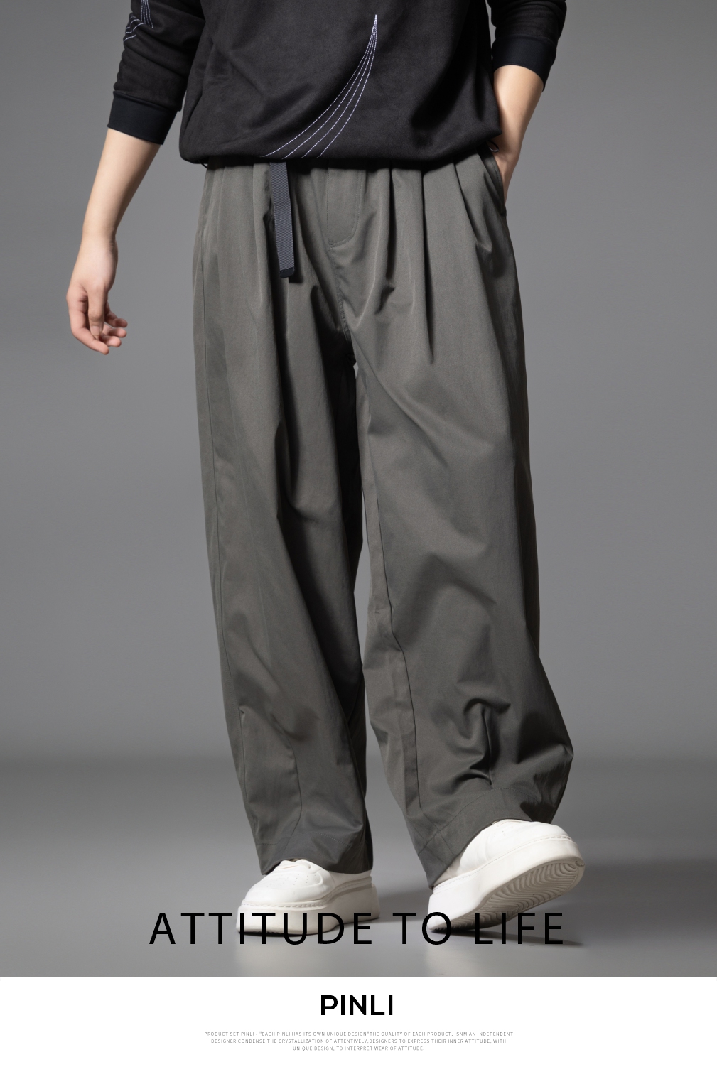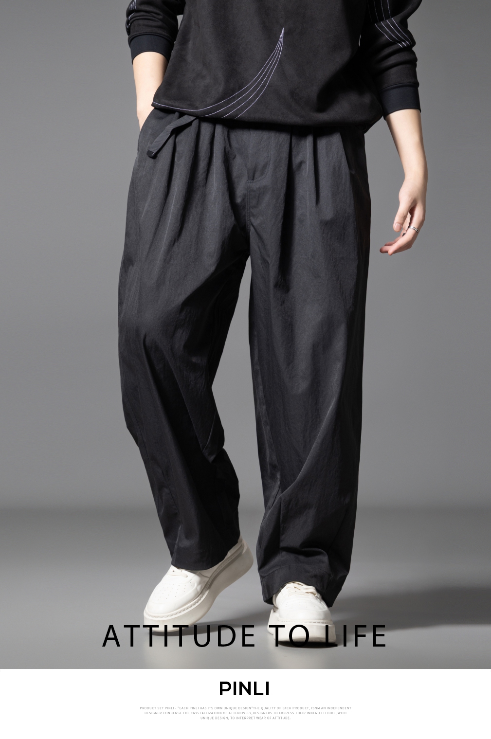 PINLI品立春夏新款宽松直筒休闲长裤男士纯色百搭潮流弯刀裤GD253117013