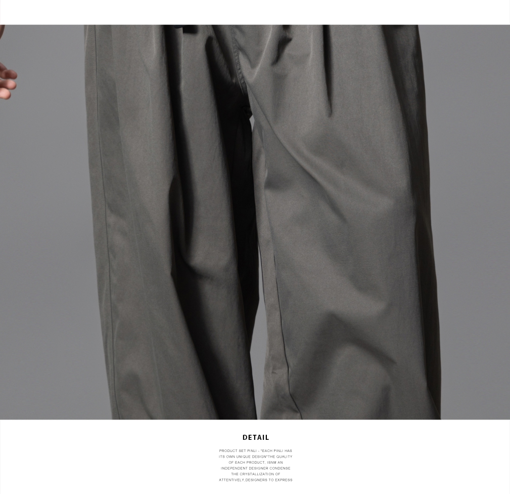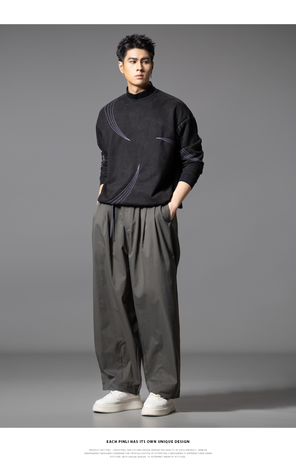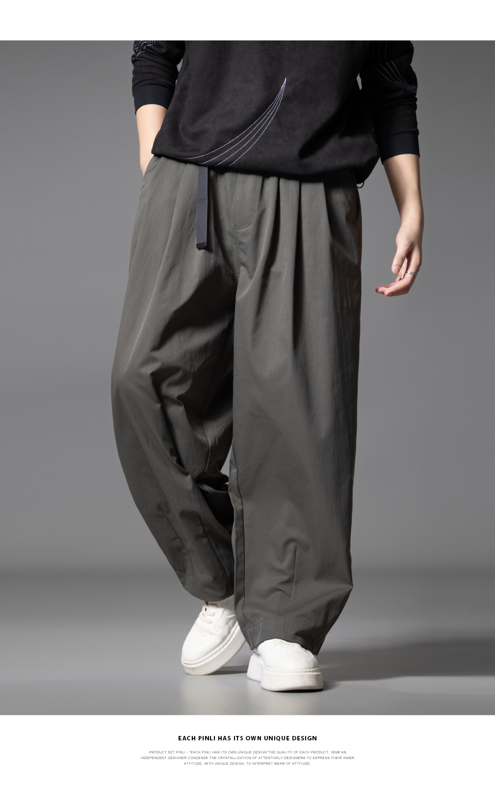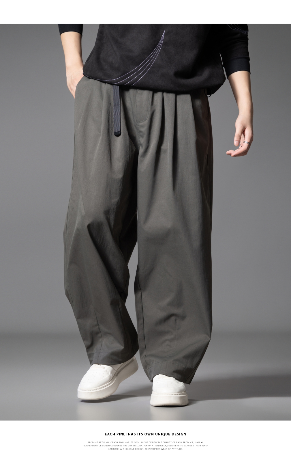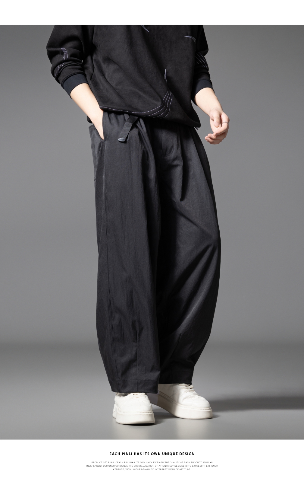 PINLI品立春夏新款宽松直筒休闲长裤男士纯色百搭潮流弯刀裤GD253117013