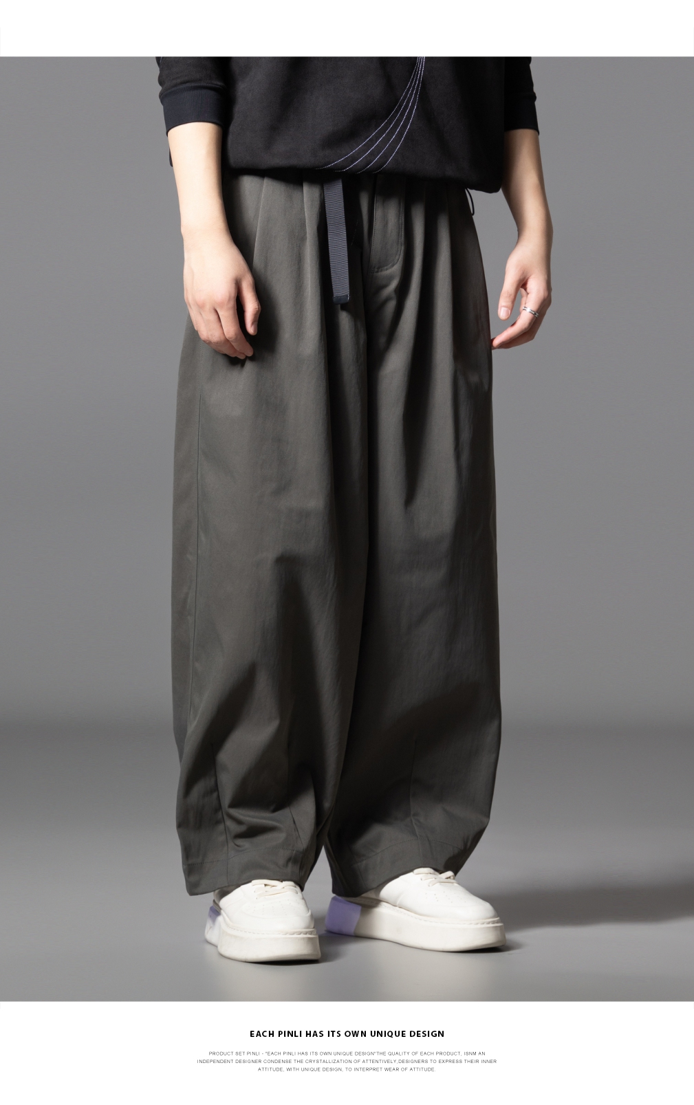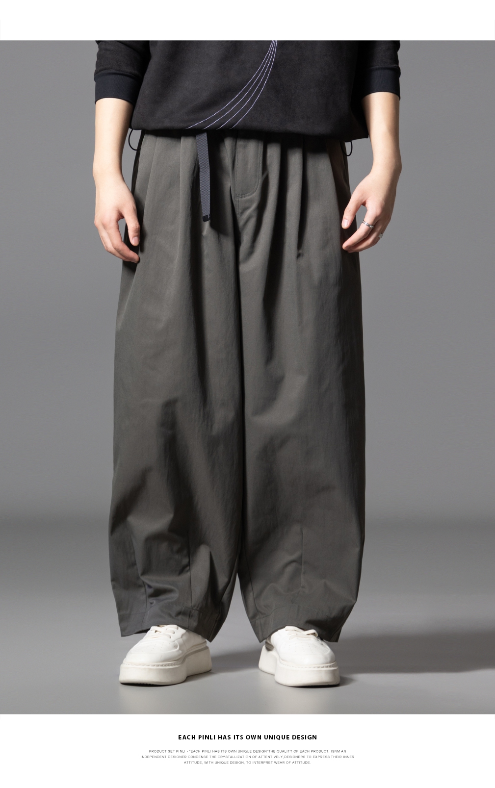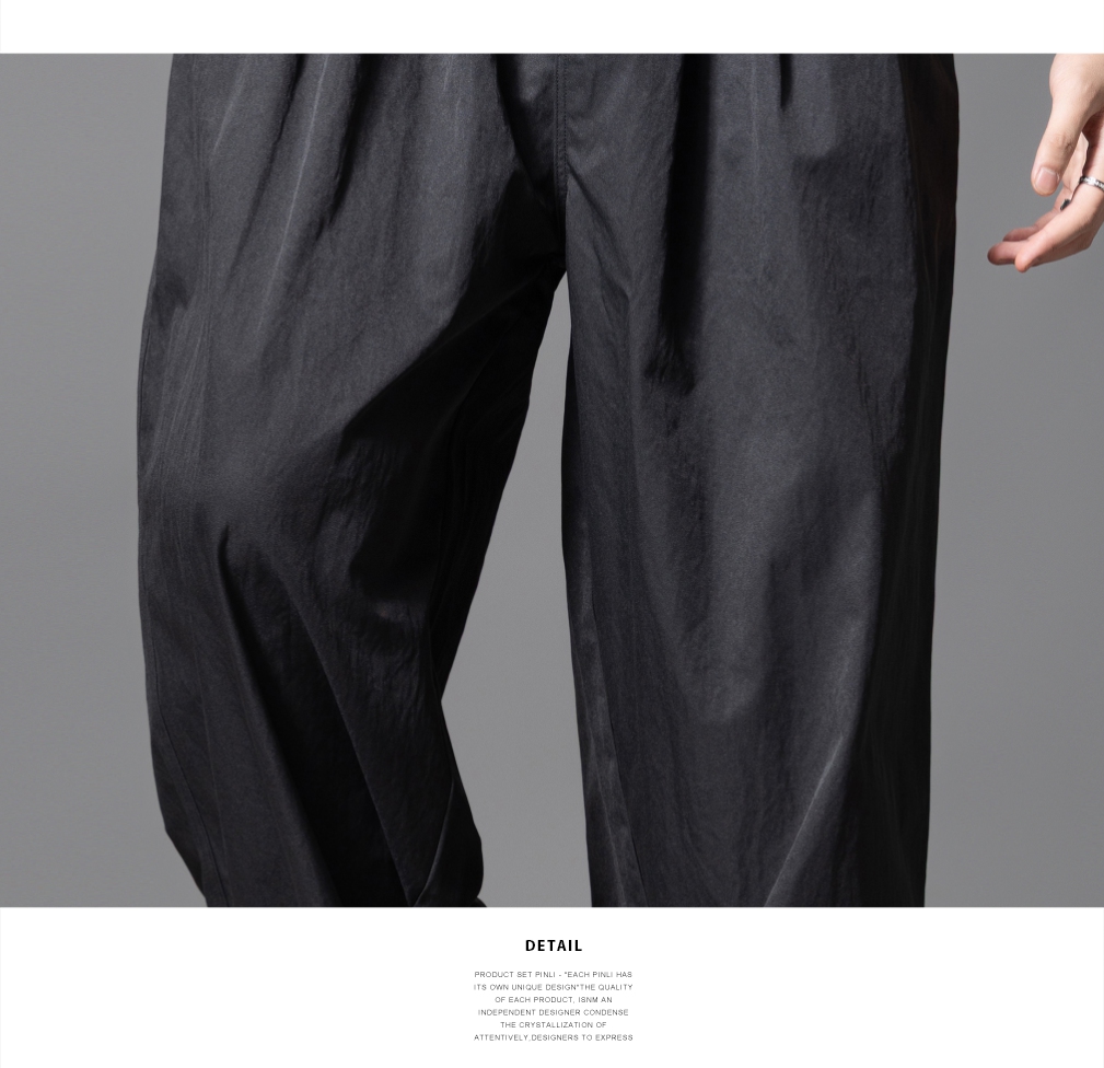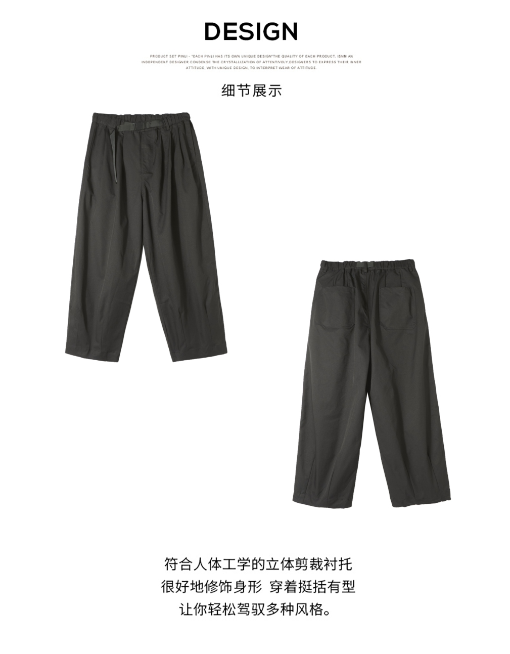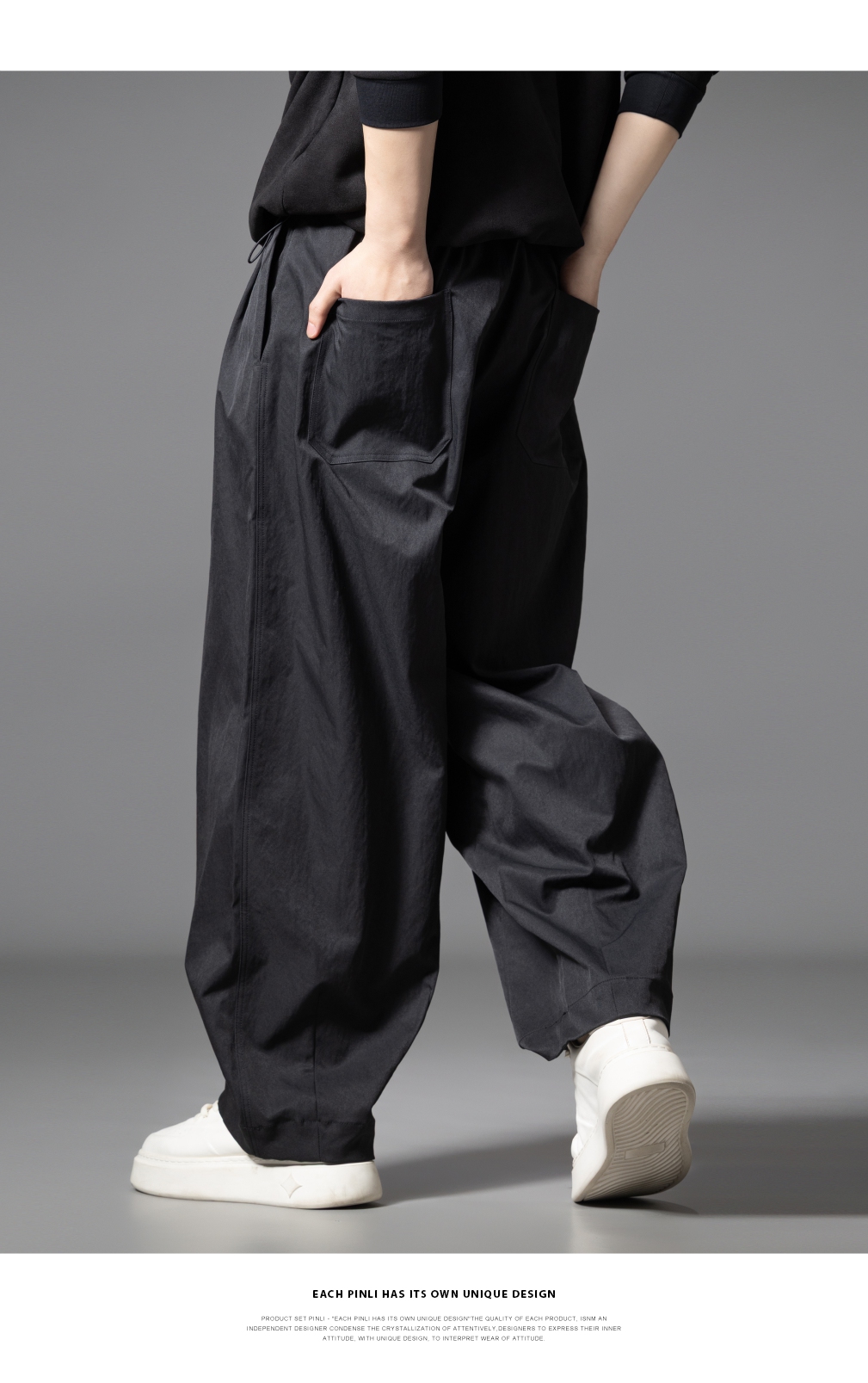 PINLI品立春夏新款宽松直筒休闲长裤男士纯色百搭潮流弯刀裤GD253117013