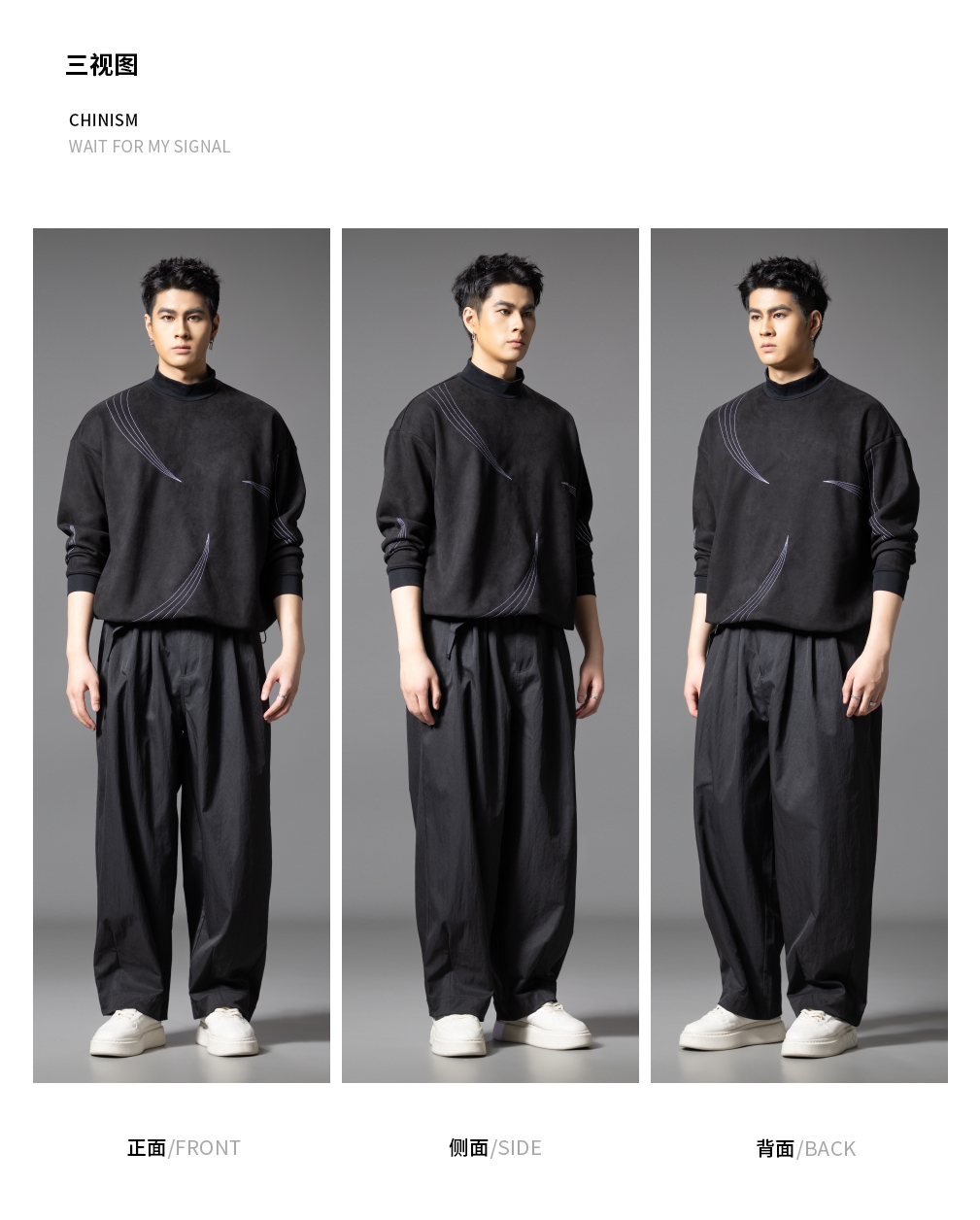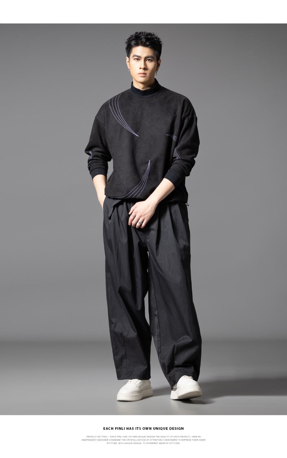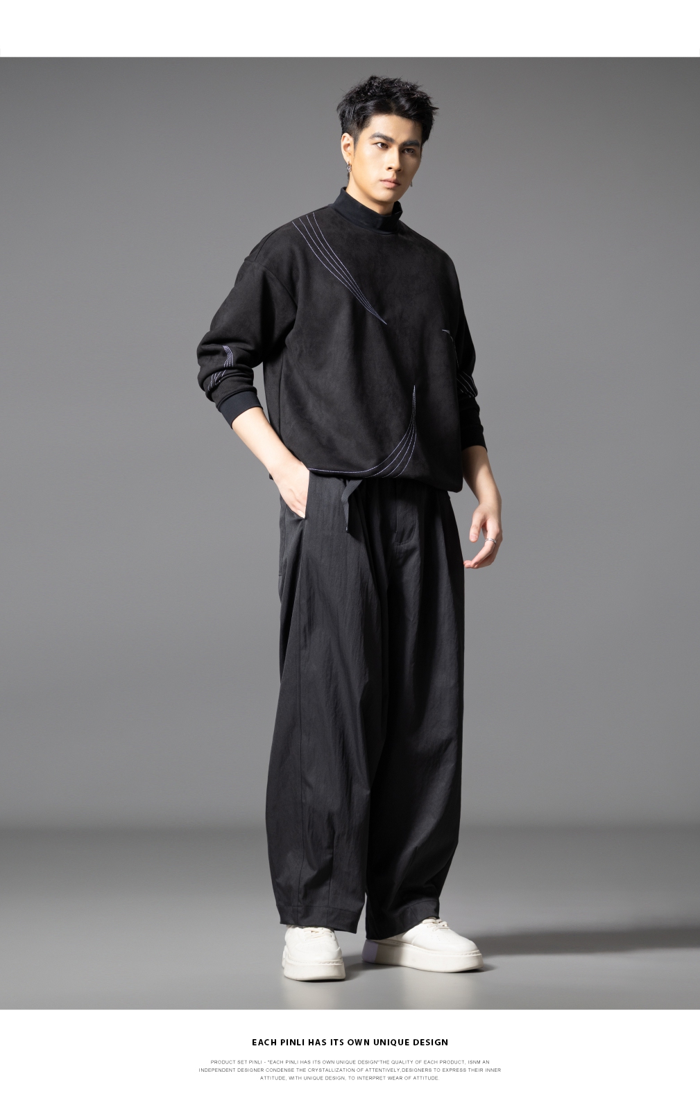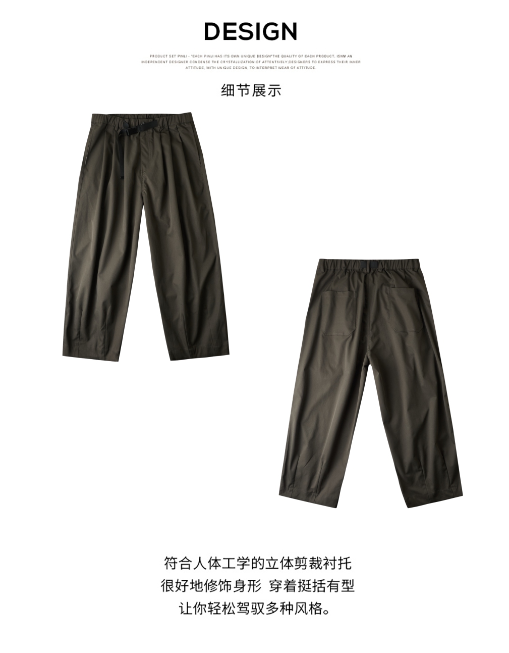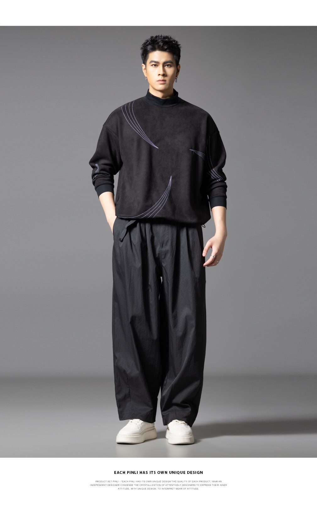 PINLI品立春夏新款宽松直筒休闲长裤男士纯色百搭潮流弯刀裤GD253117013