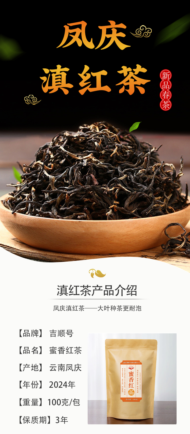 2026年新品蜜香滇红茶100克/包 大叶种更耐泡