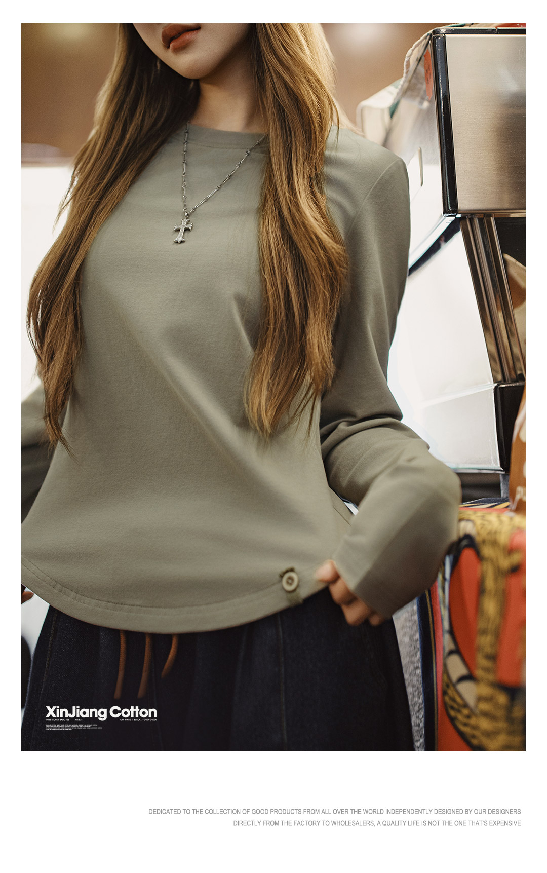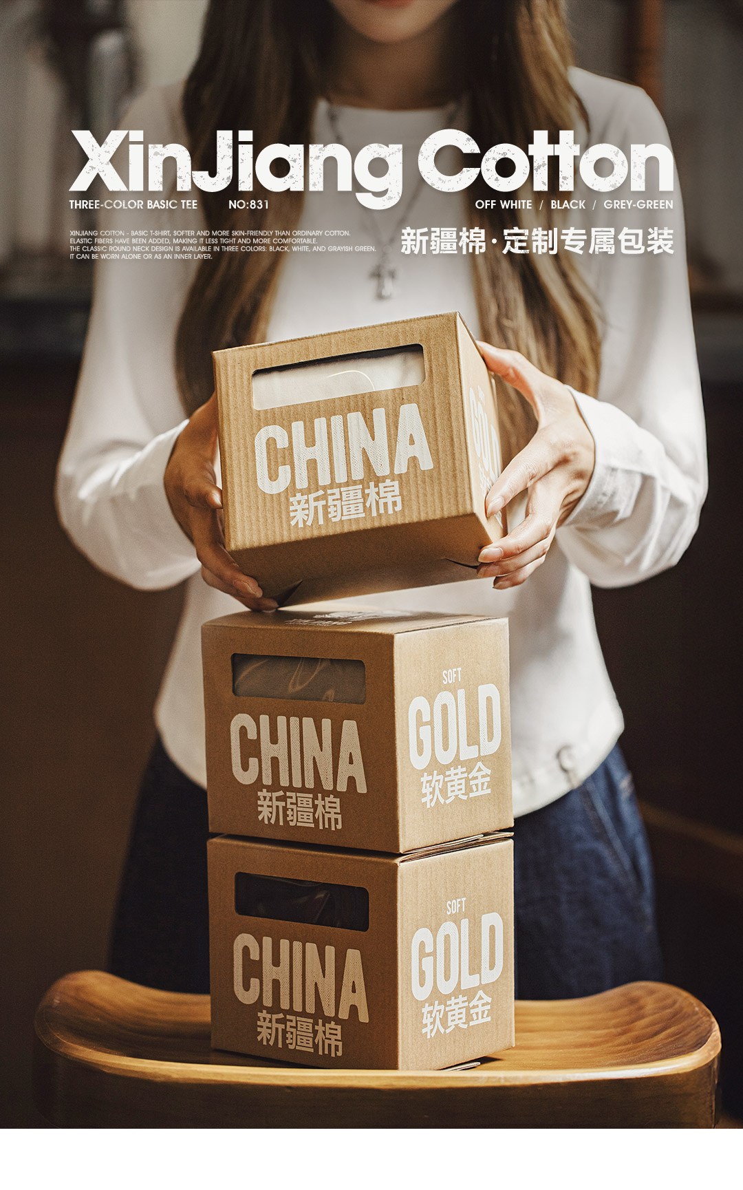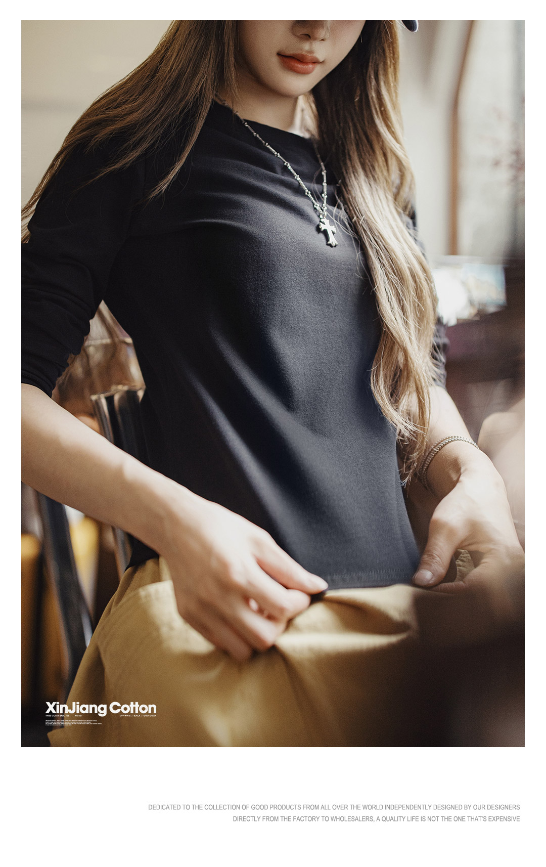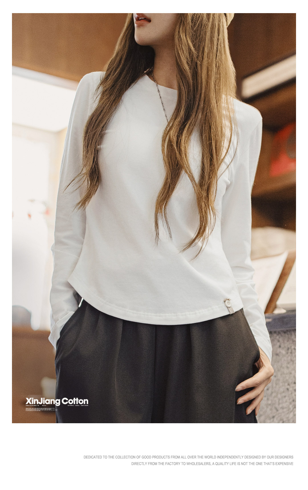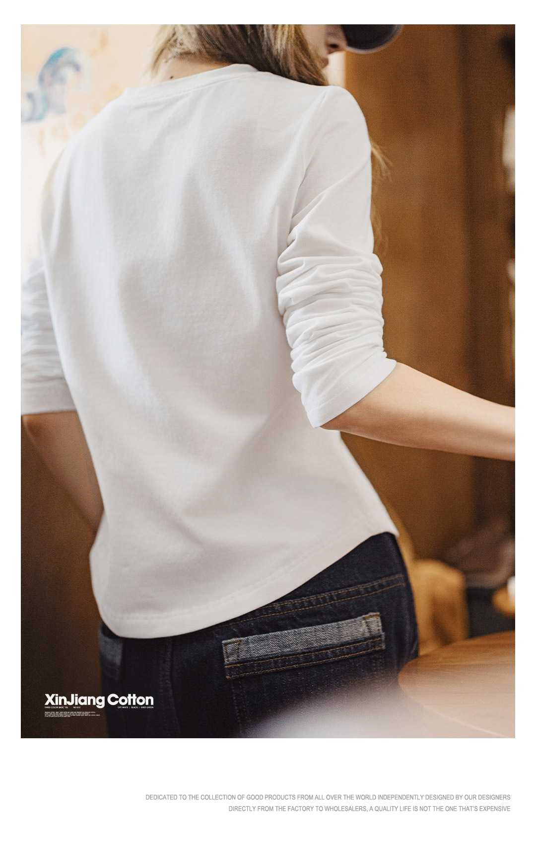 马登新疆棉黑白色基础款正肩磨毛修身长袖t恤打底衫内搭上衣女秋
