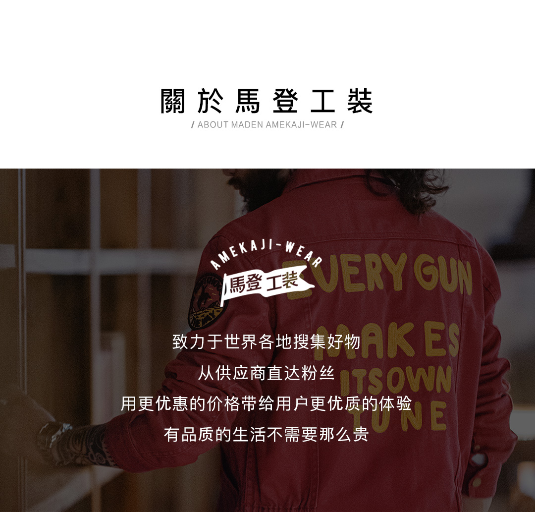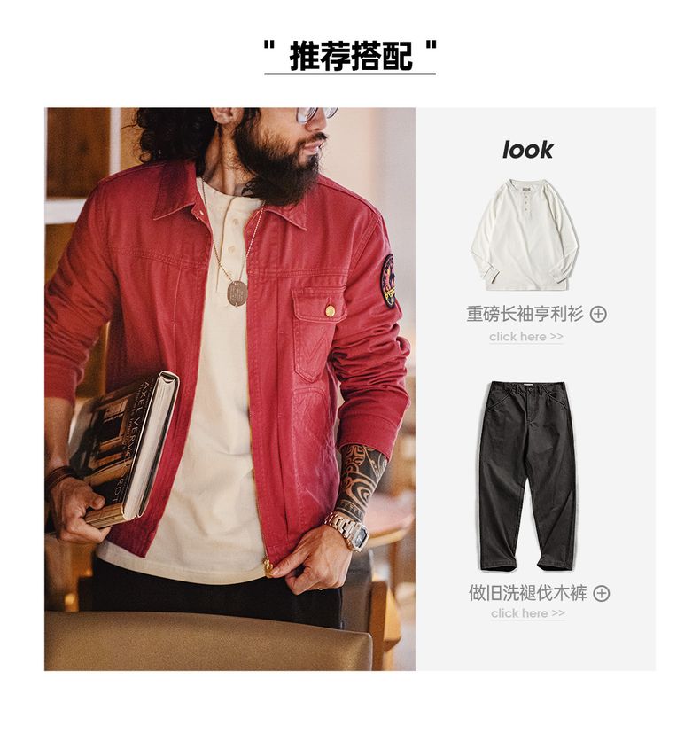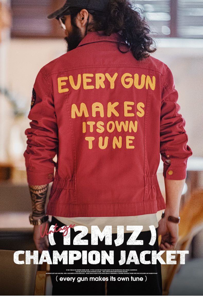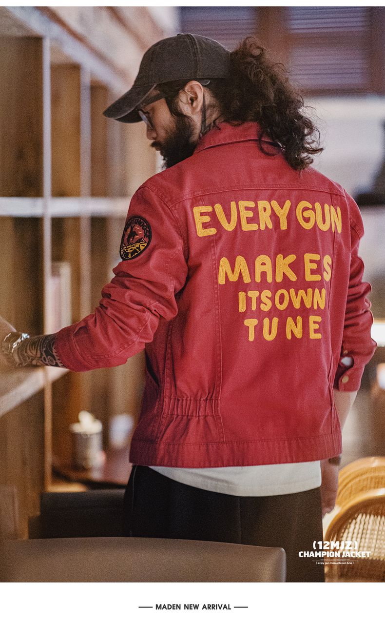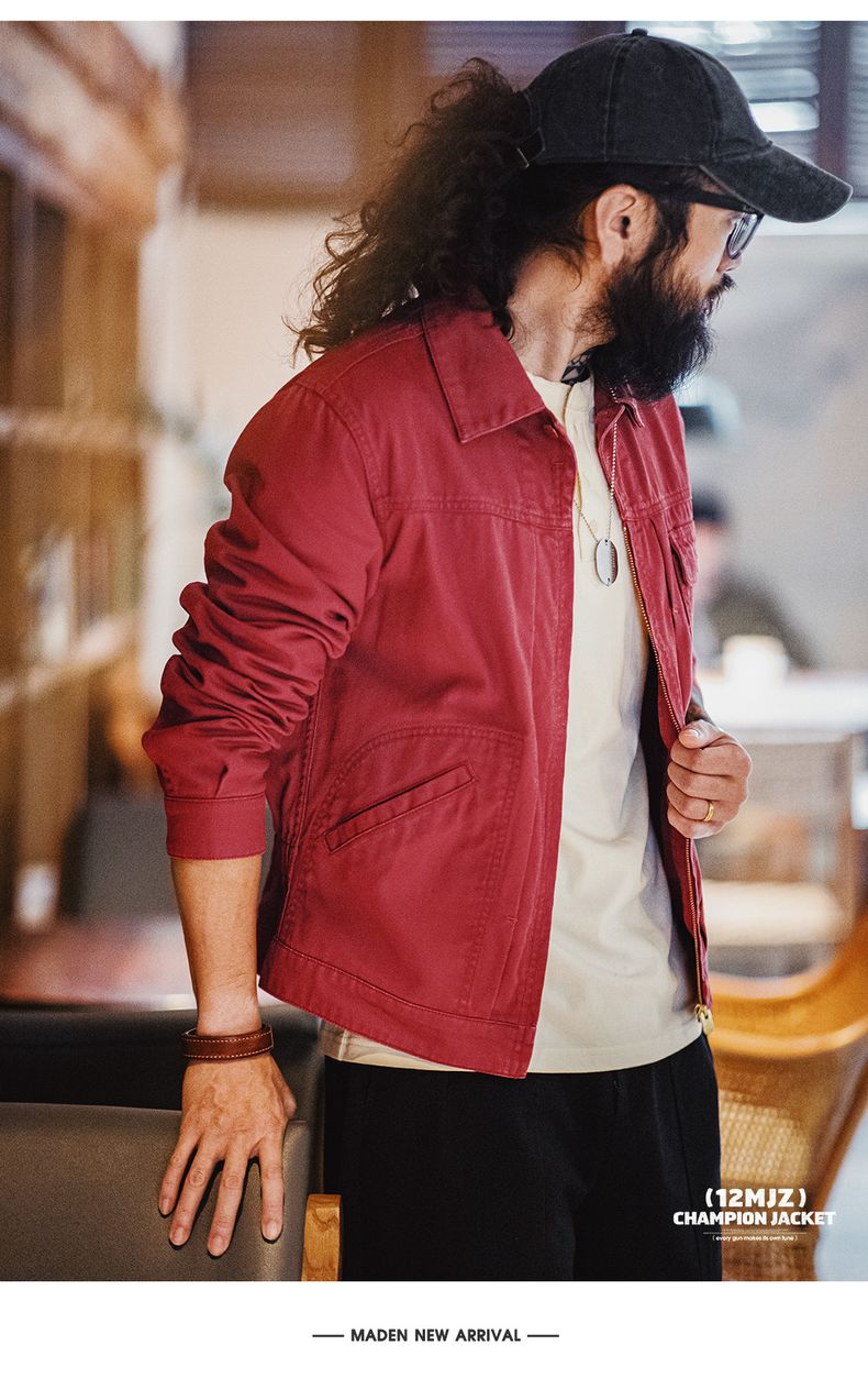 工装优选 美式复古重工刺绣冠军夹克vintage红色修身帆布外套男春