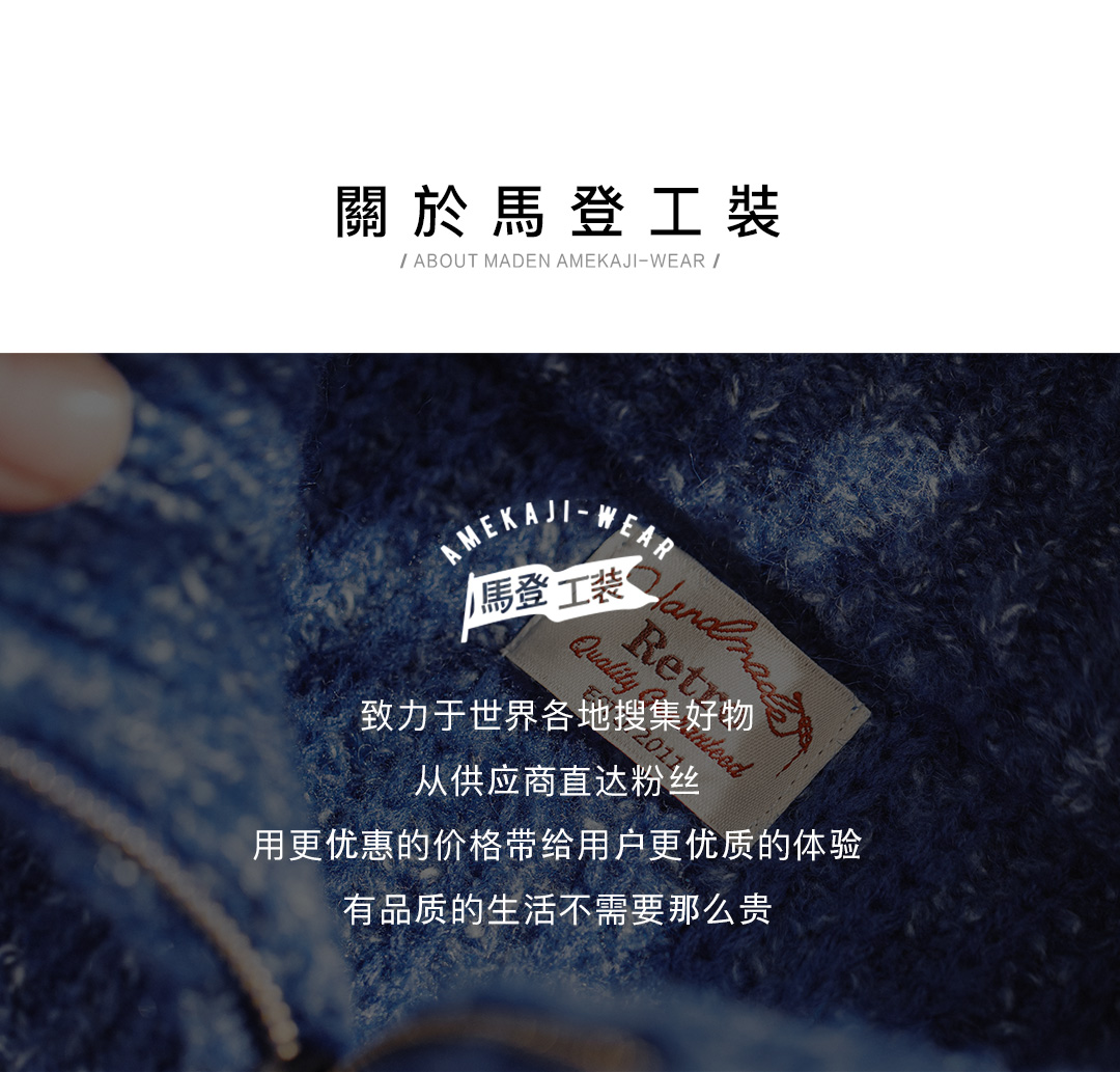 马登工装美式复古刺绣撞色毛衣保暖撞色外穿螺纹领口针织衫男秋冬