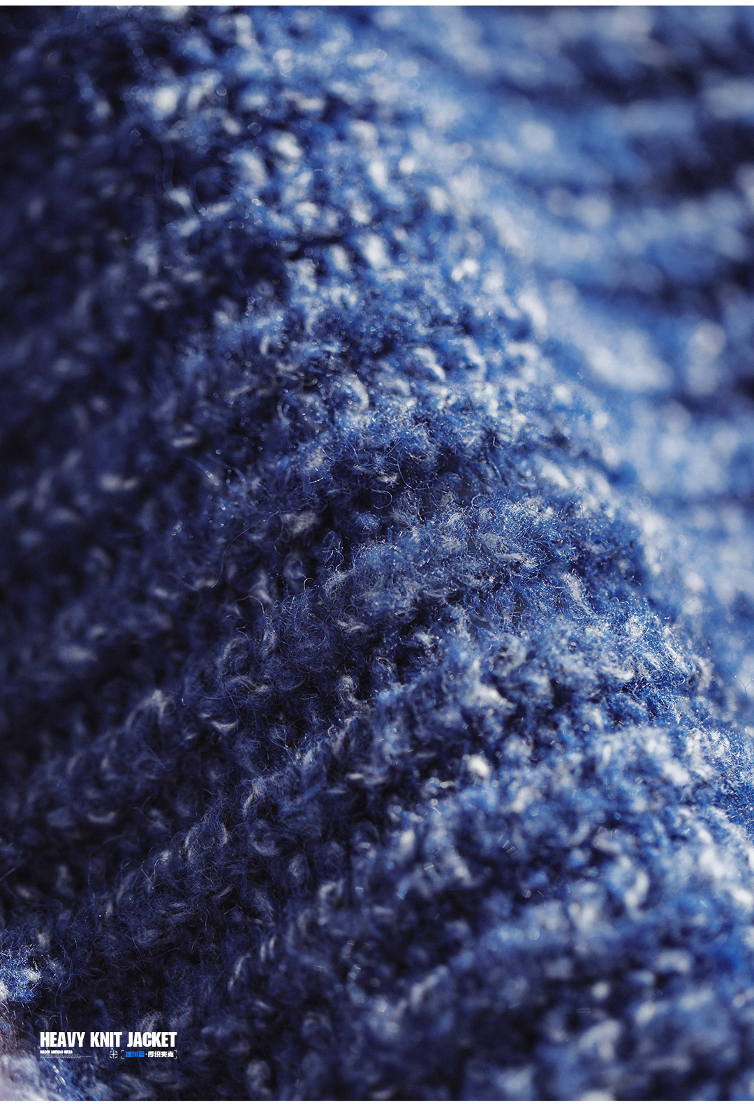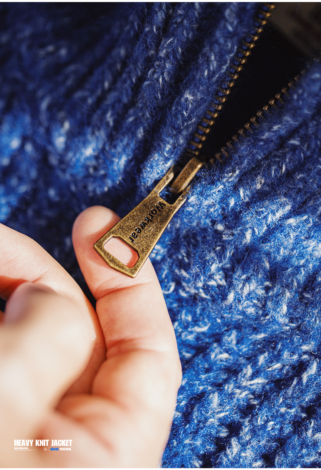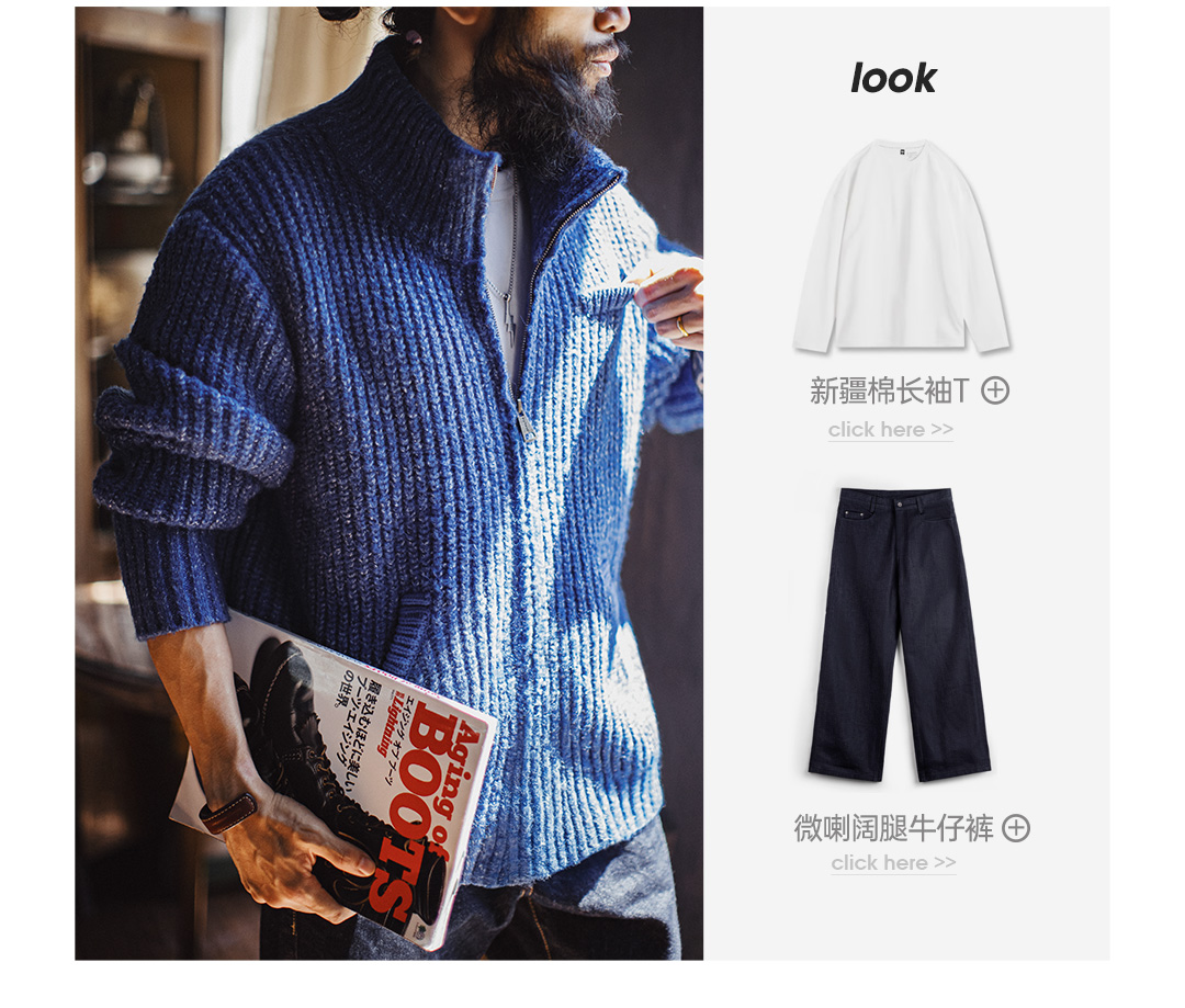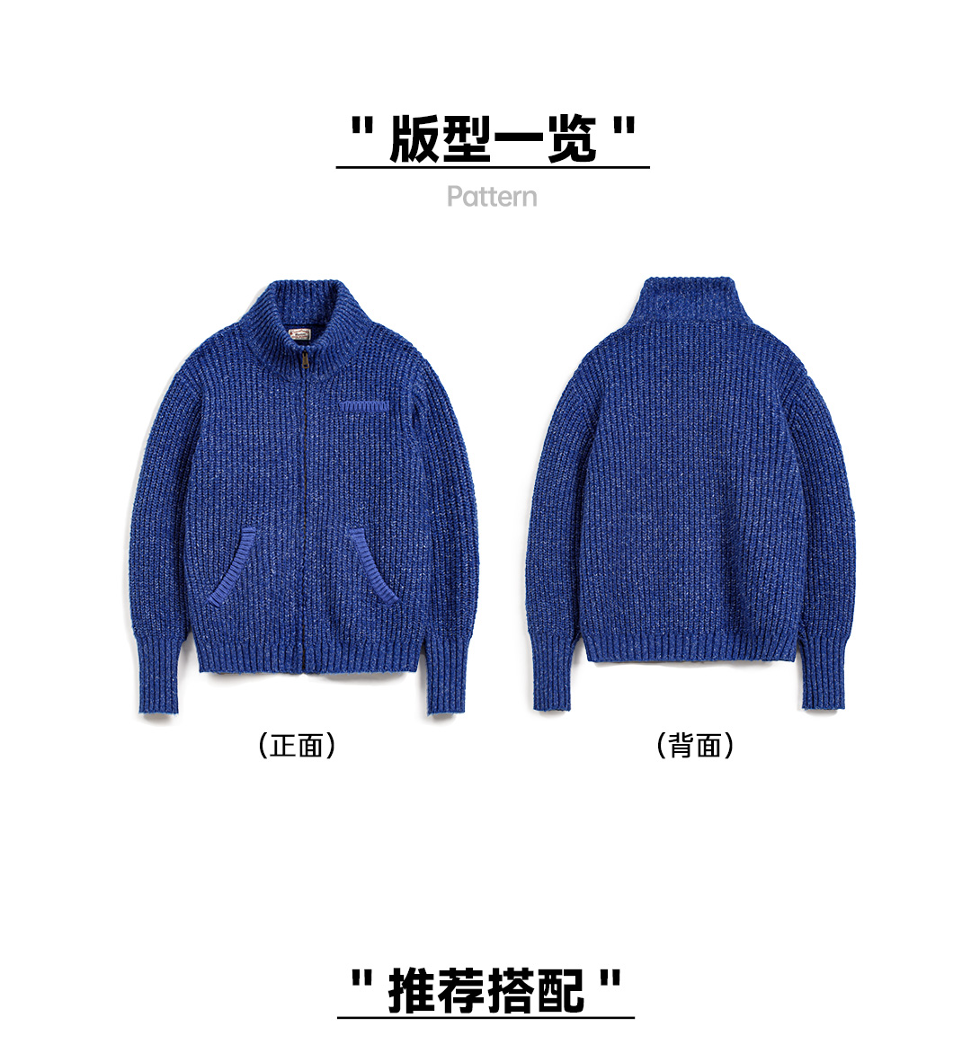 马登工装美式冰蓝色开衫加厚毛衣立领垂感高领保暖针织衫外套男冬