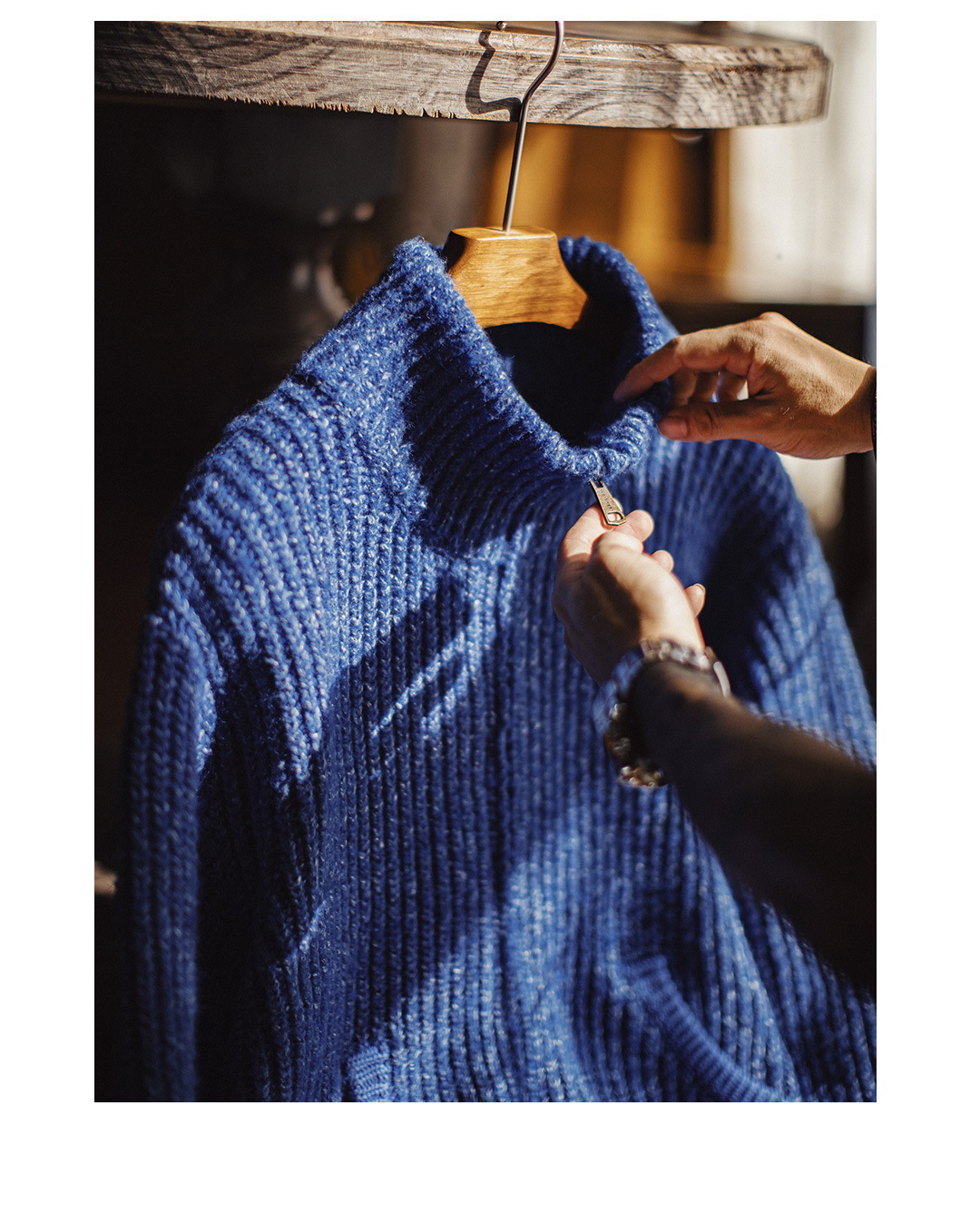 工装优选 日系复古加厚针织高领马海毛毛衣秋冬慵懒针织打底衫男绒