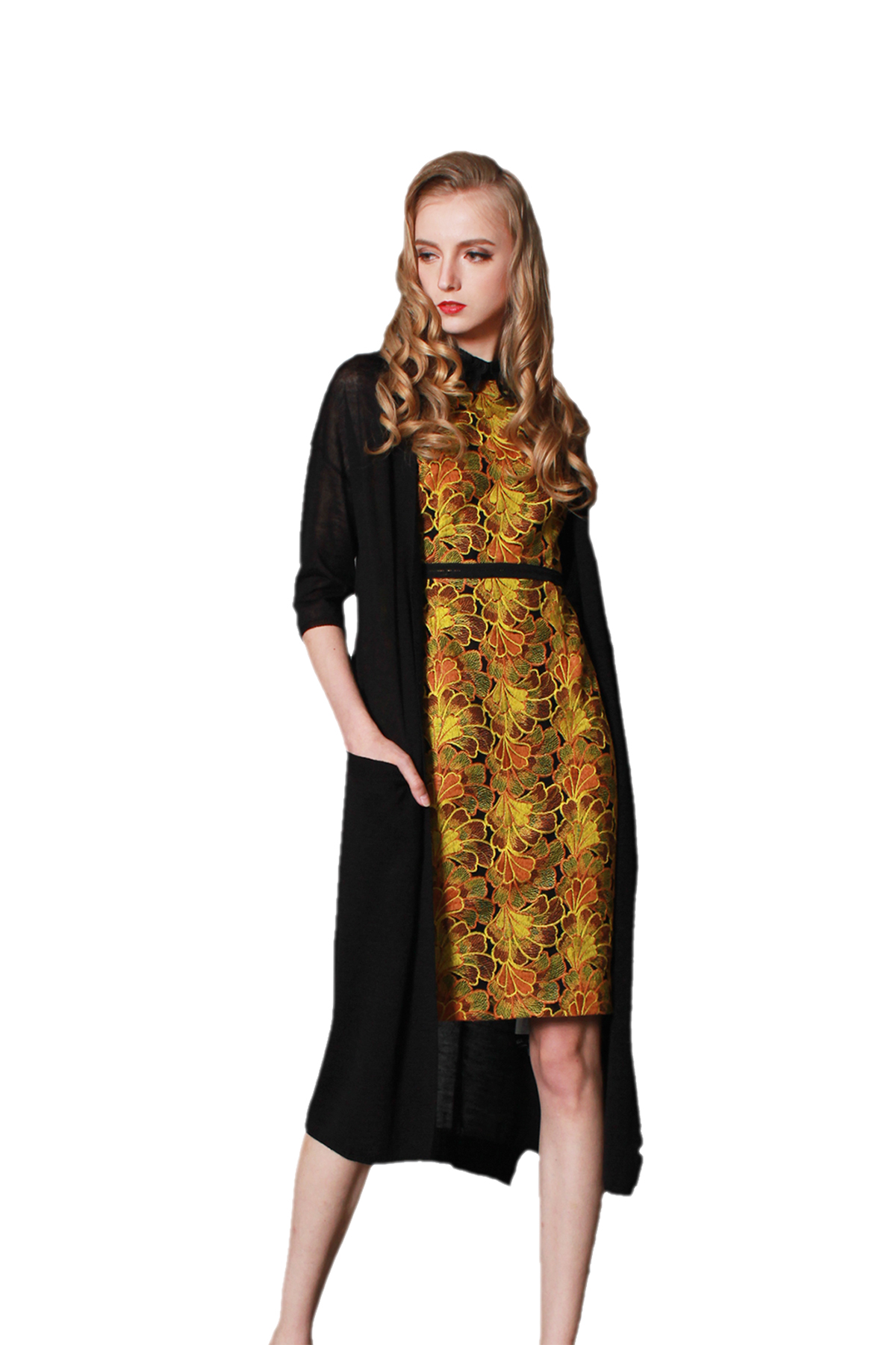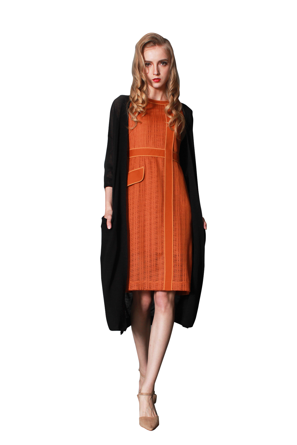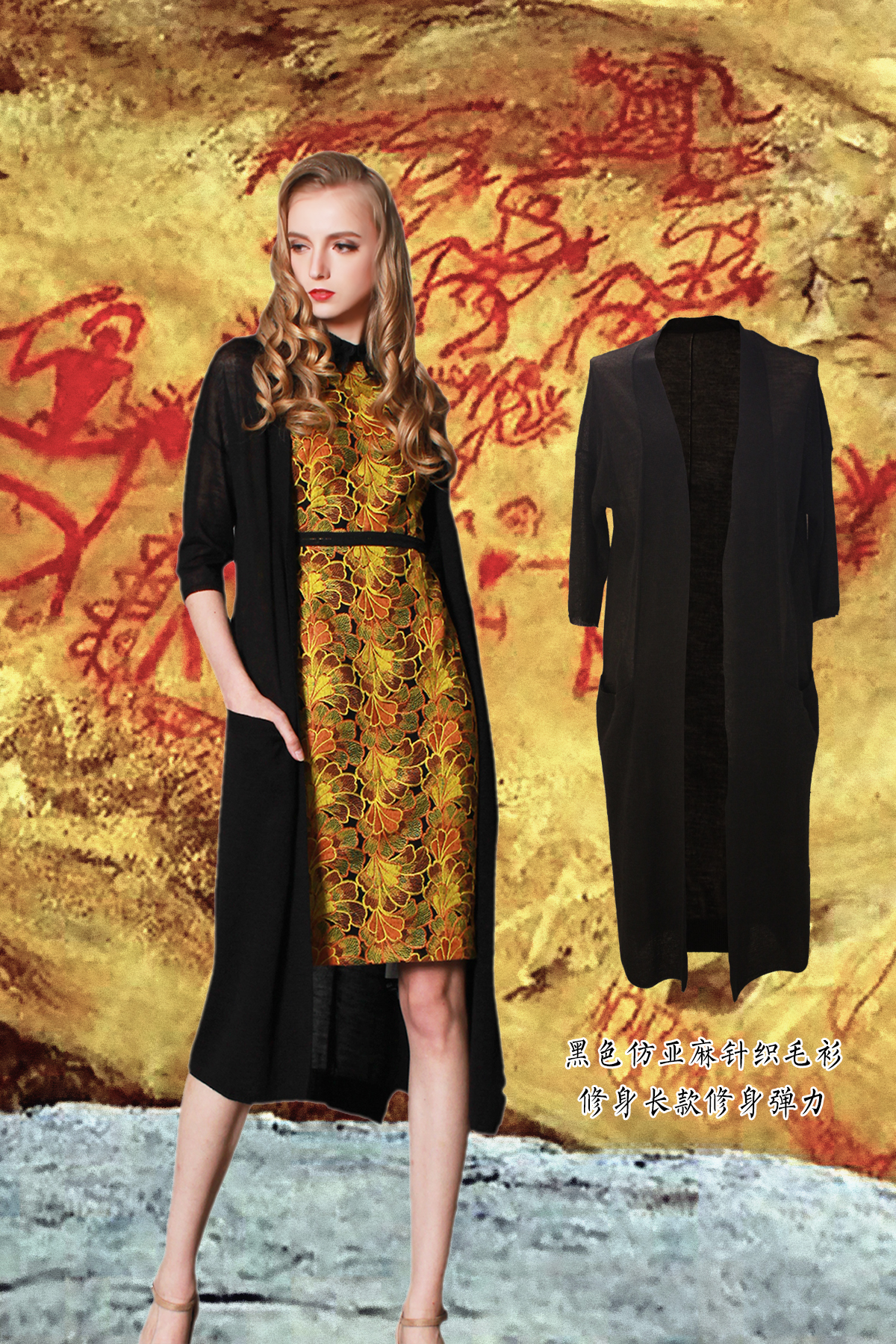 衣长超常,拉长身型。