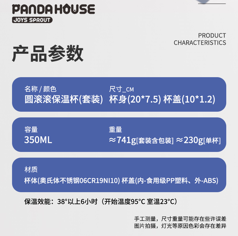 熊猫屋PANDAHOUSE 圆滚滚保温杯(套装) 多色可选 送纸袋