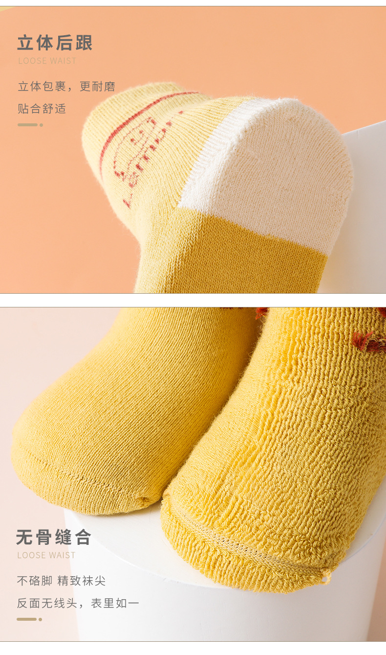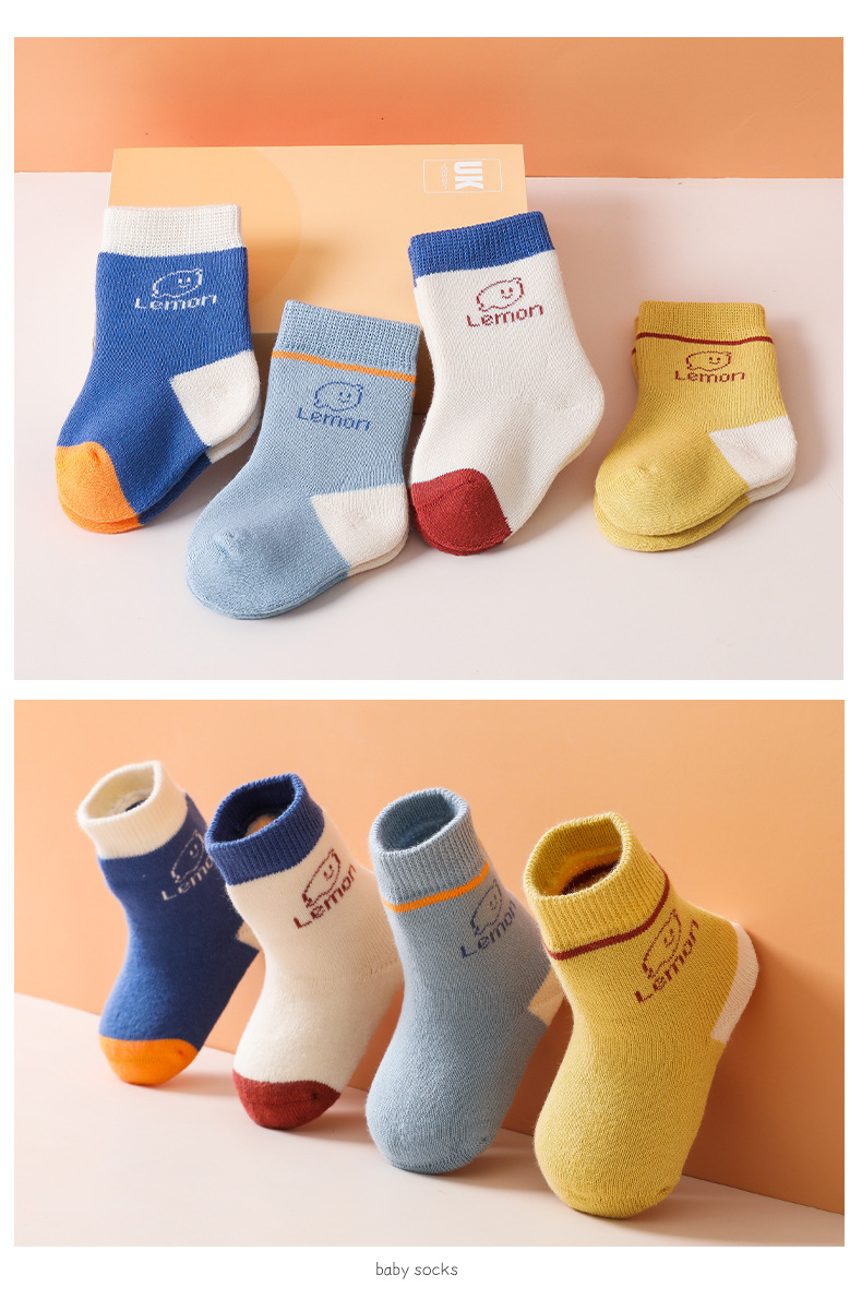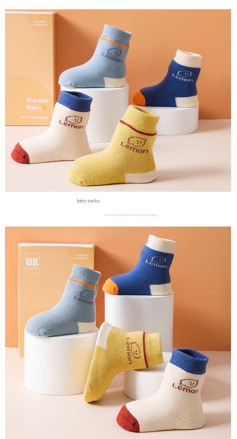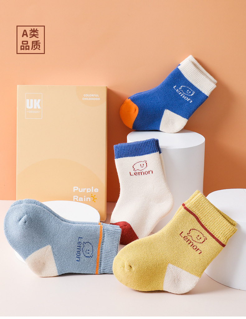 【3双装 保暖柔软亲肤】A类毛圈加厚婴儿袜子秋冬新款卡通字母拼色儿童袜子韩版新生儿宝宝袜