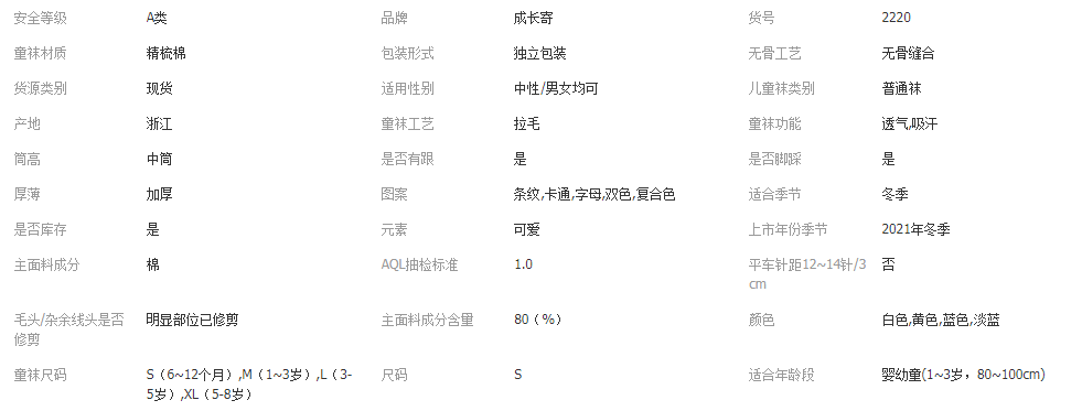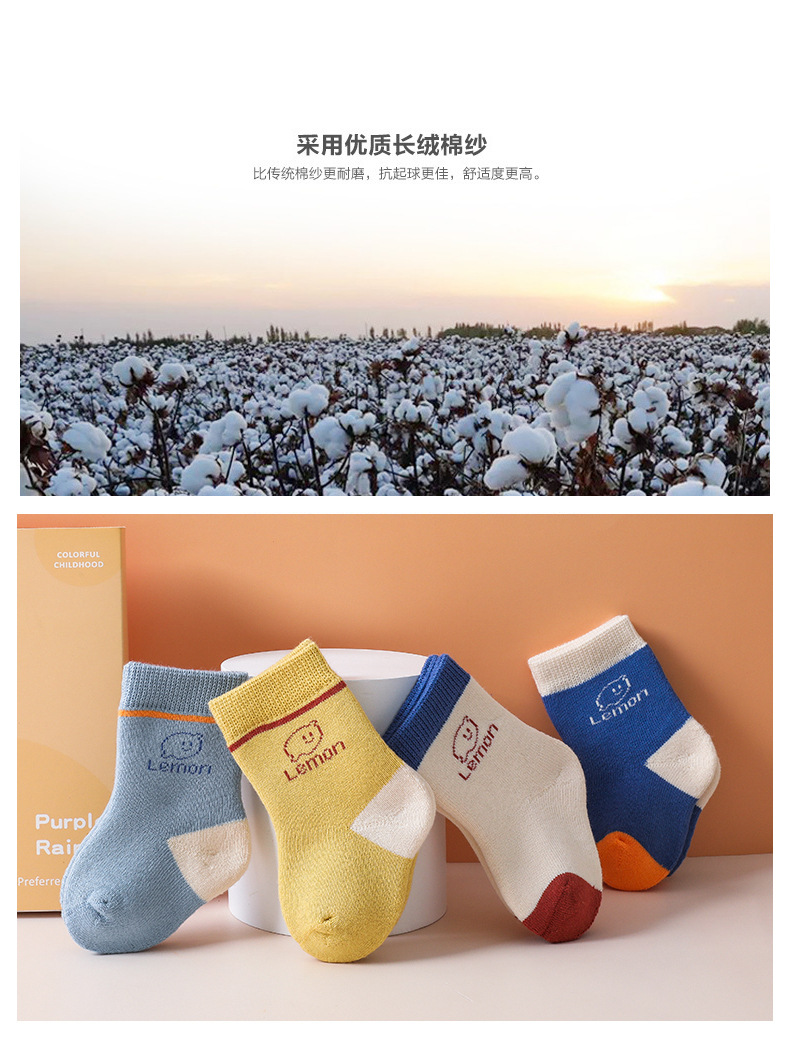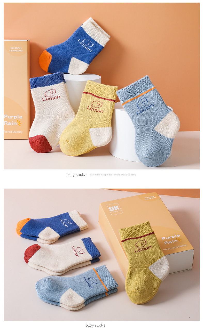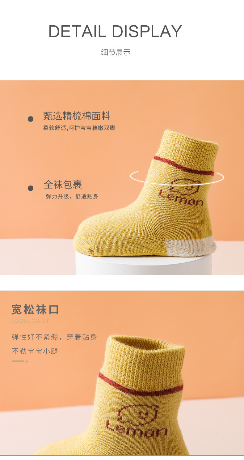 【3双装 保暖柔软亲肤】A类毛圈加厚婴儿袜子秋冬新款卡通字母拼色儿童袜子韩版新生儿宝宝袜