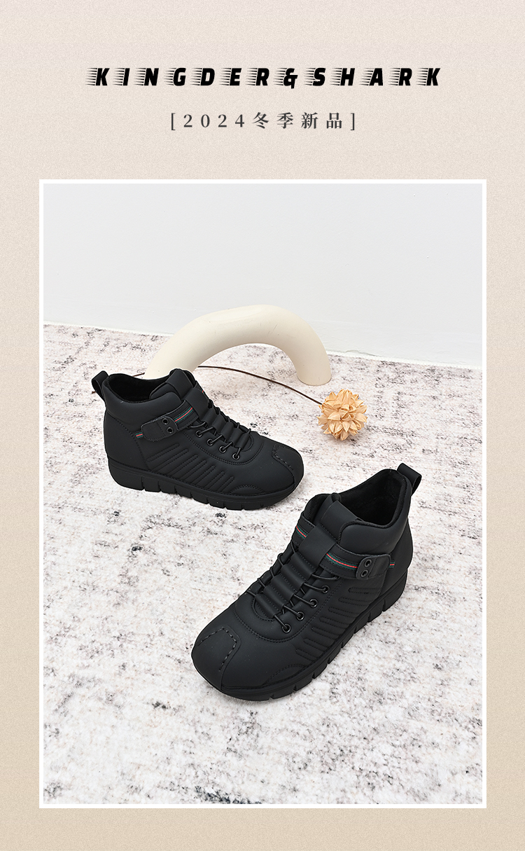 经典鲨2024年冬季款百搭黑色加绒加厚高帮平底休闲鞋棉鞋女KW172-D58181
