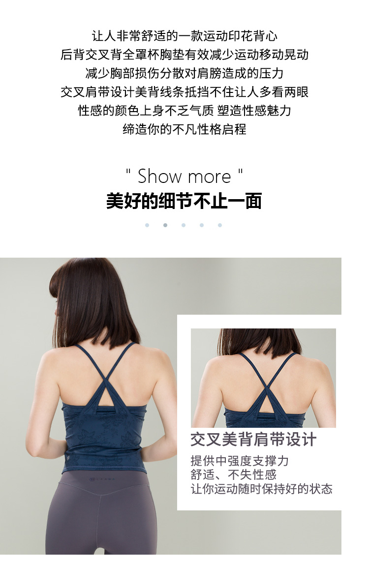 LEANA印花交叉美背内搭打底小吊带运动瑜伽外穿带胸垫可拆修身背心LN1303