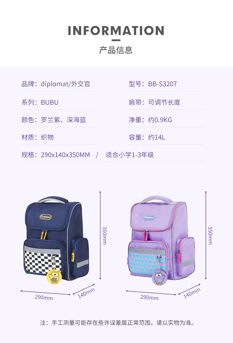 Diplomat外交官布布系列BB-S3207儿童减压背包大班-2年级
