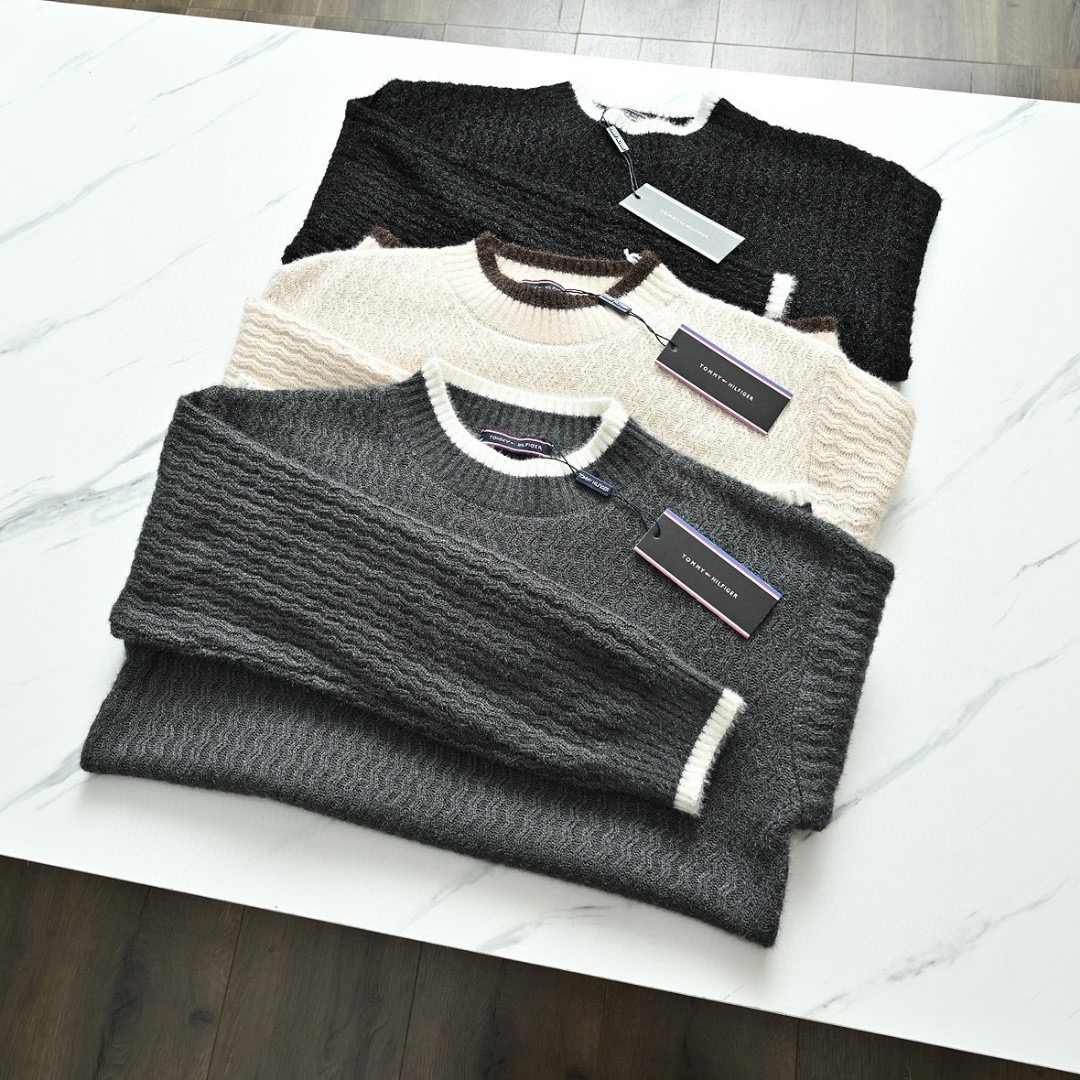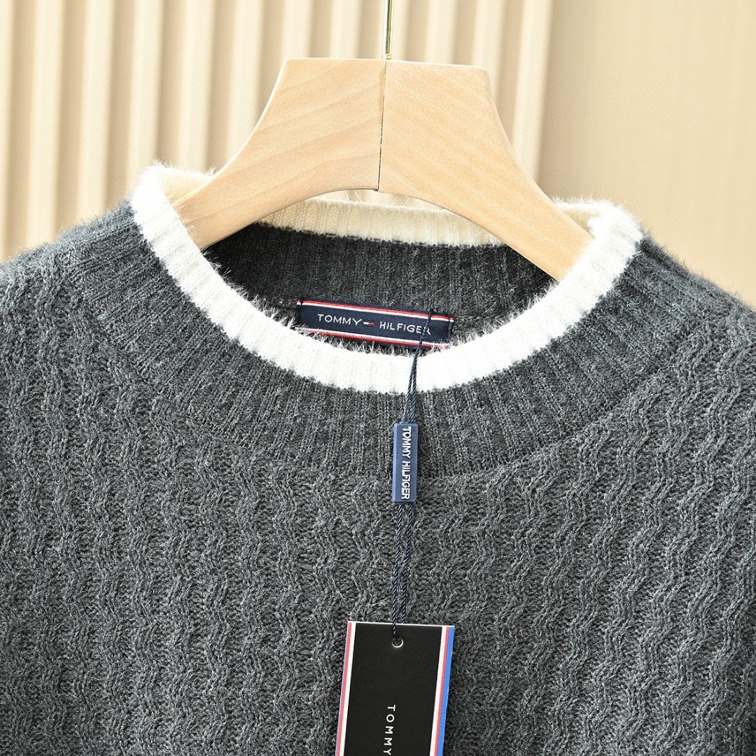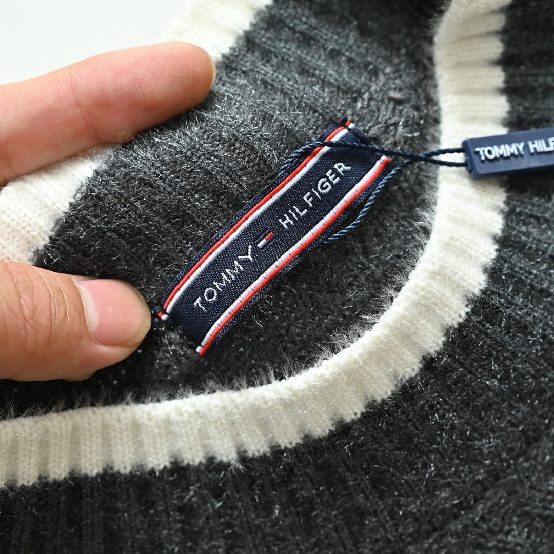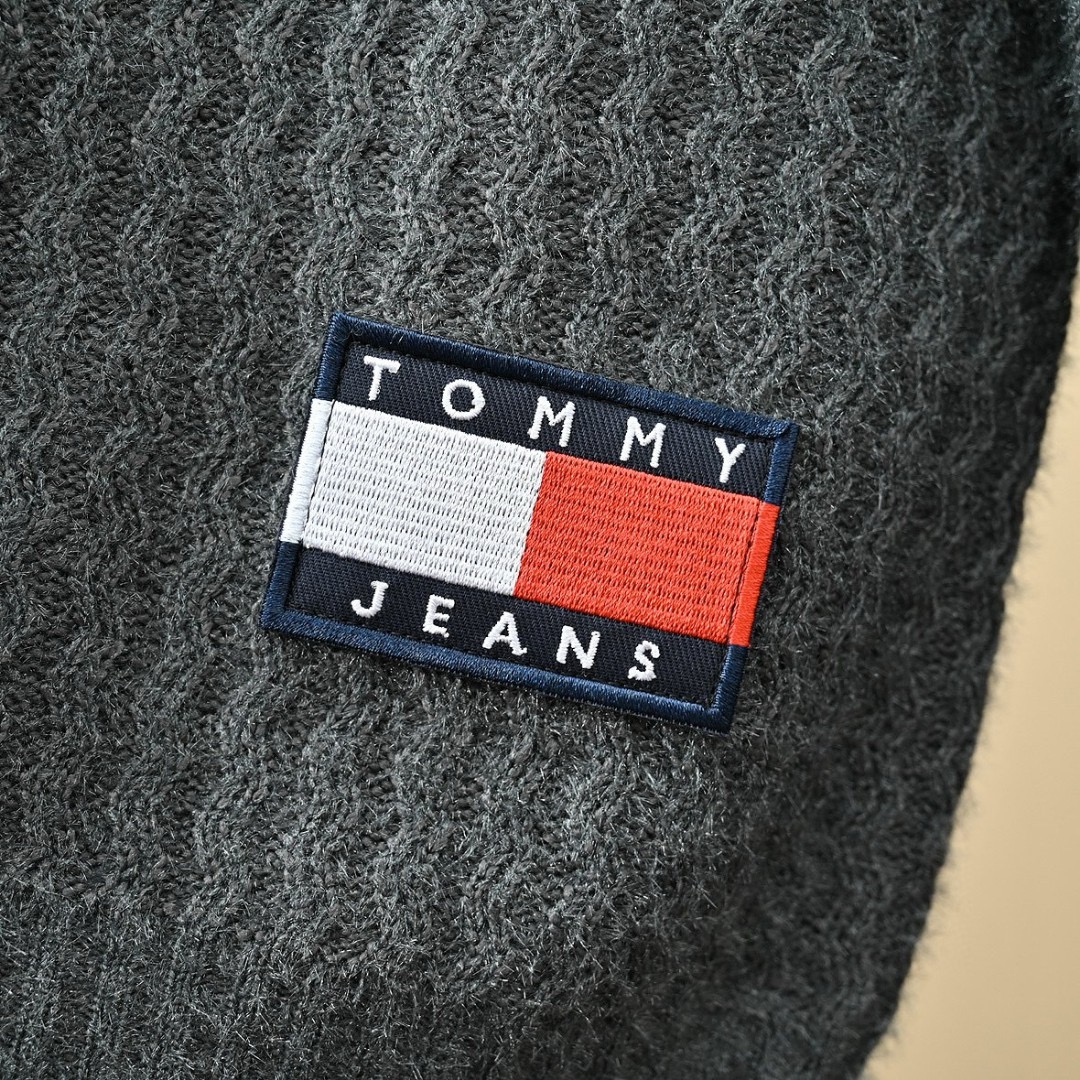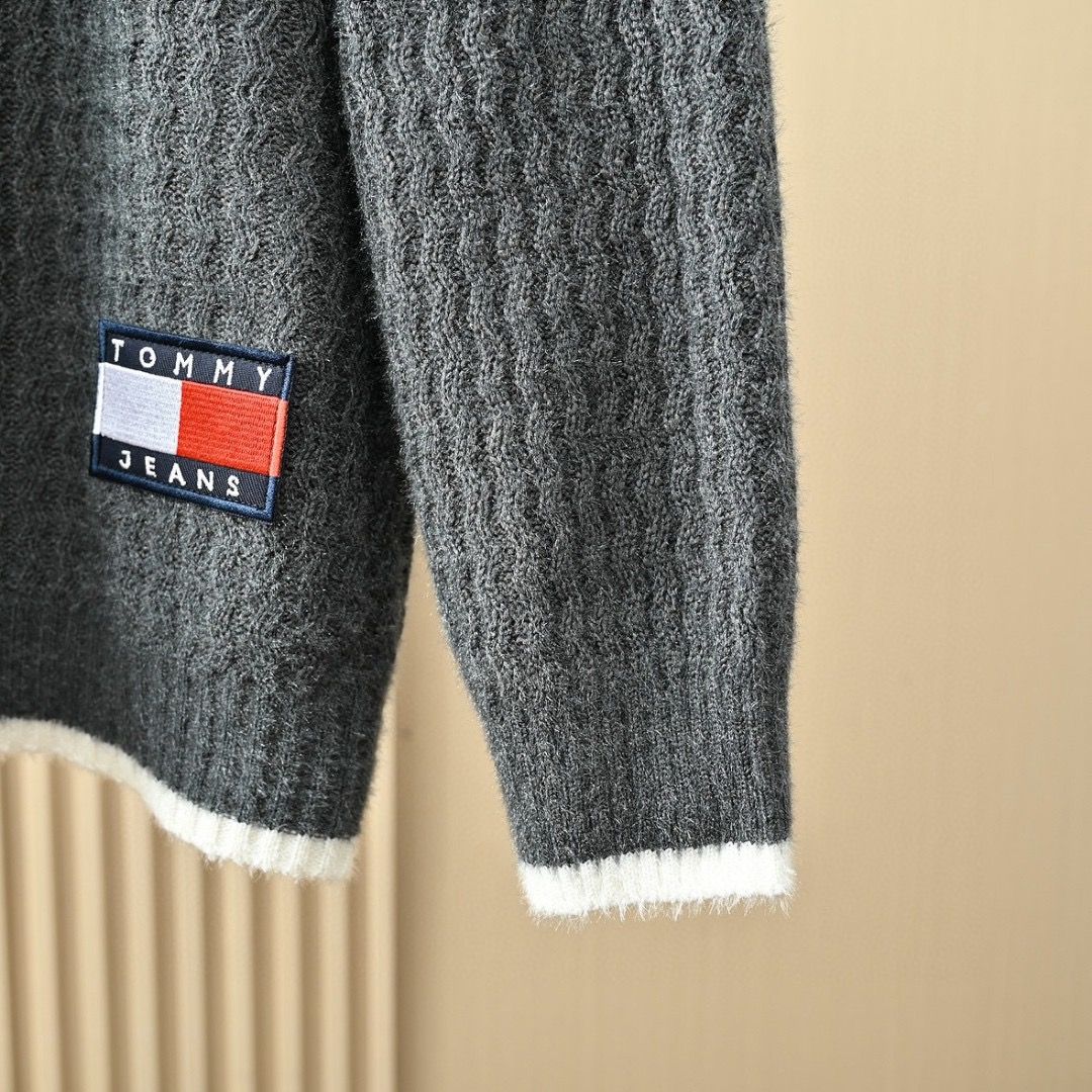 汤米25秋冬情侣款👫贴布刺绣时尚加绒加厚圆领毛衣,