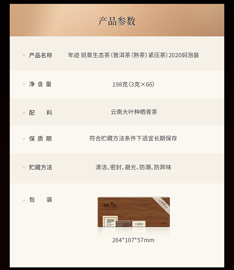 【上新】年迹 班章生态茶(普洱茶(熟茶)紧压茶)2020 焖泡装 3g*66饼 礼盒装【现货】