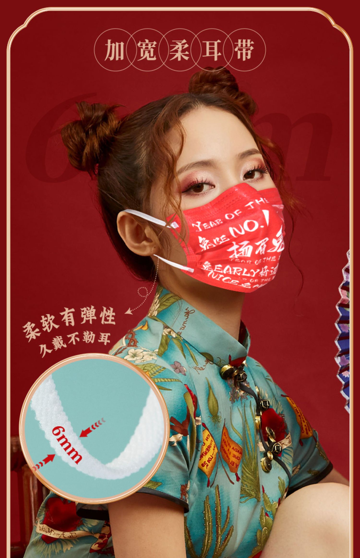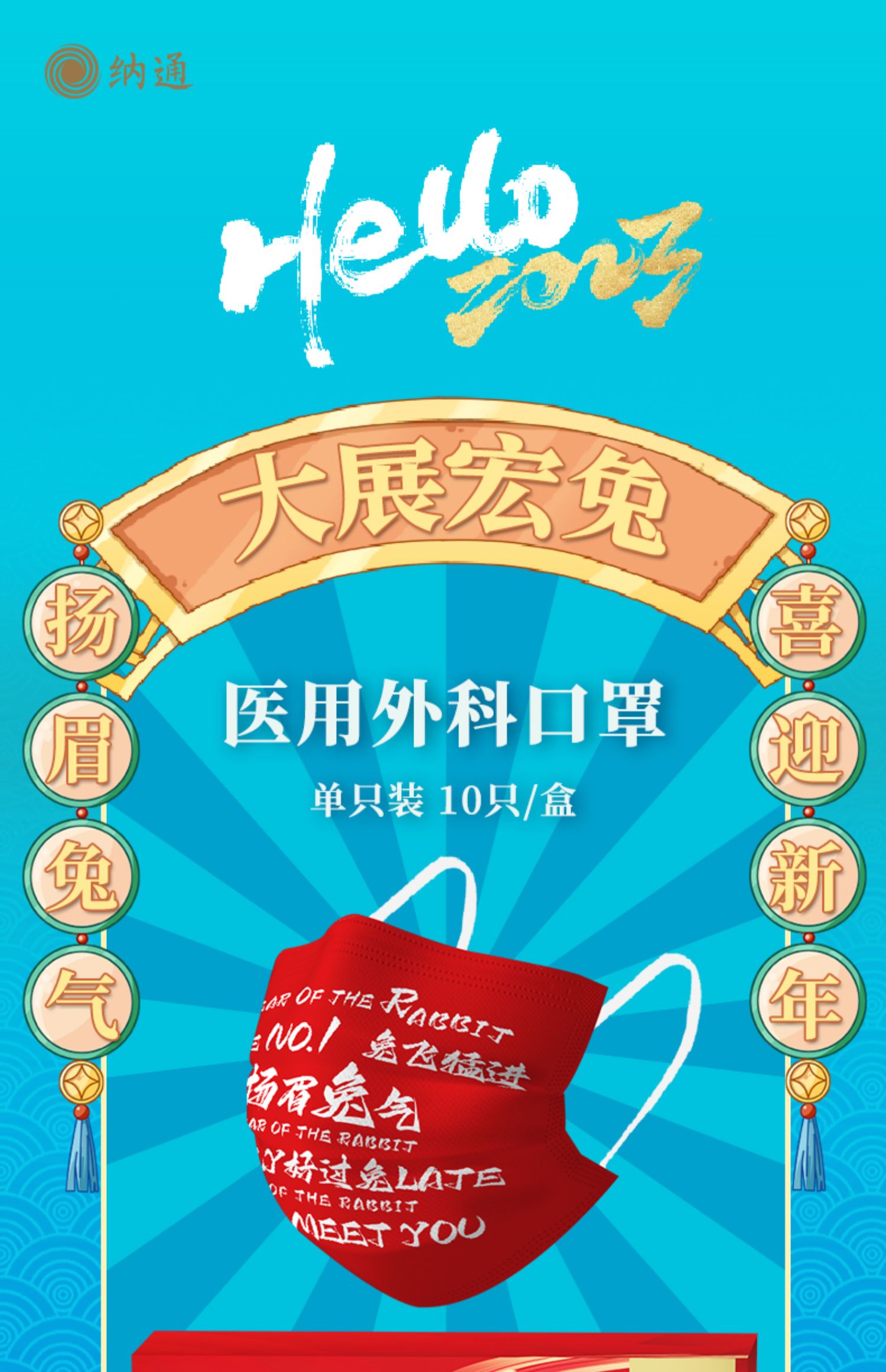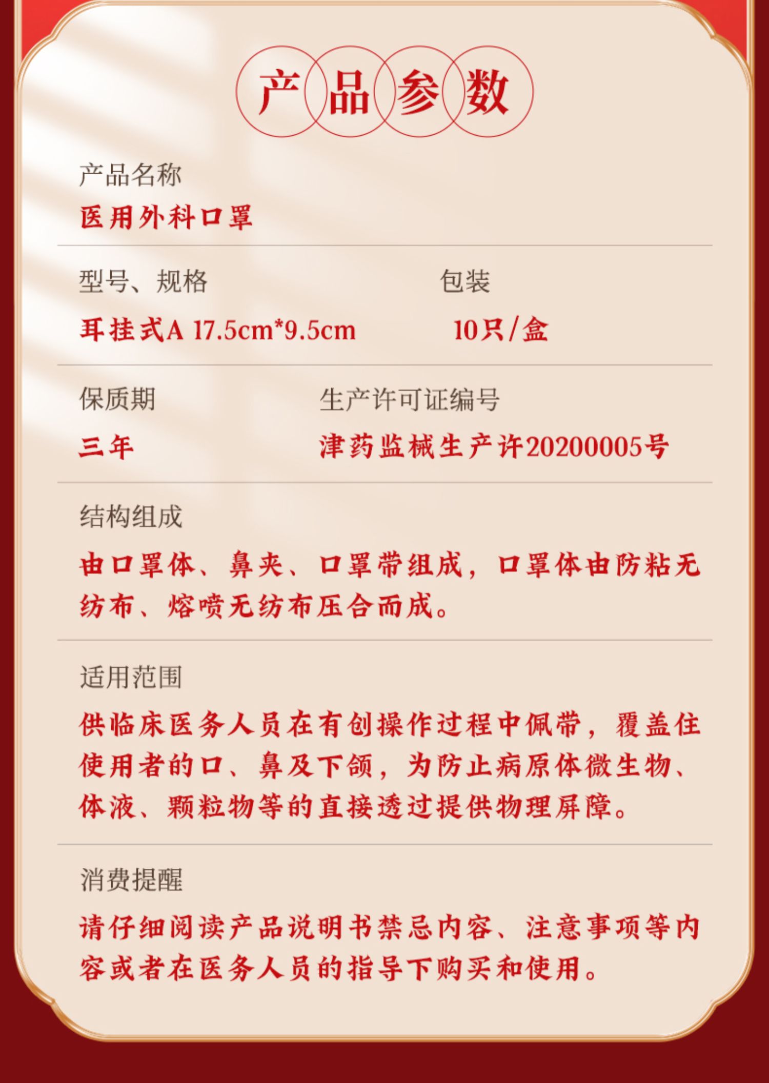 纳通印花红色喜庆医用外科口罩成人款独立装便携宽耳带