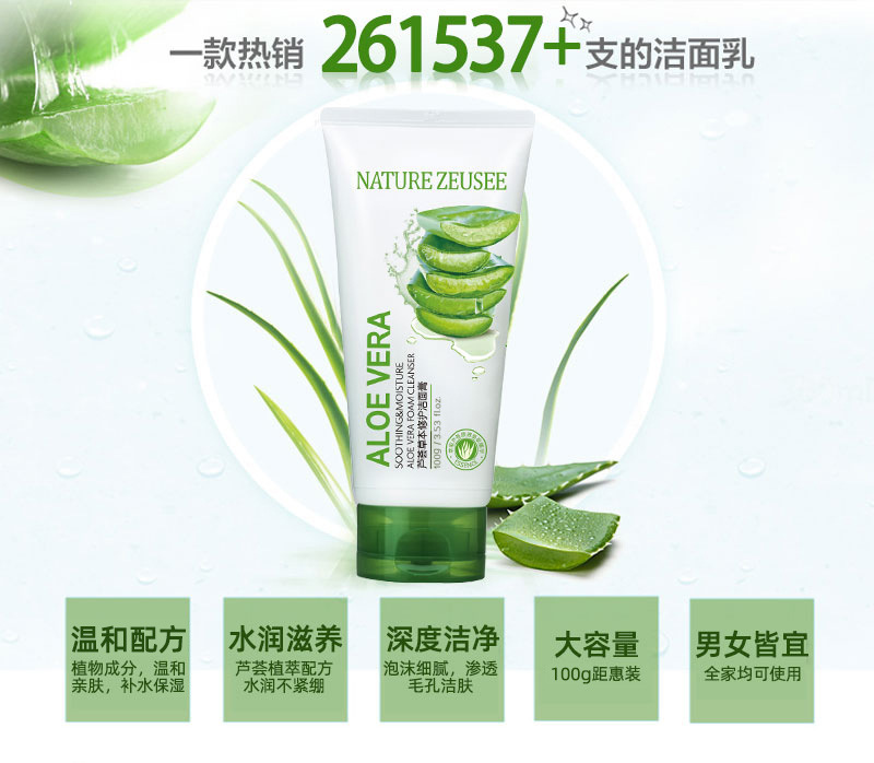 【美妆个护 买2送1 买3送2】芦荟洗面奶温和清洁控油保湿洁面乳洁面膏女泡沫男士护肤