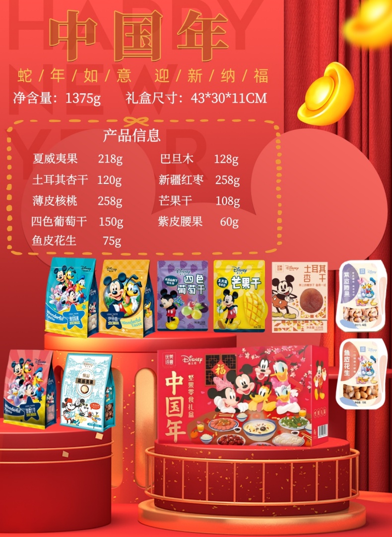 【送礼佳品】Disney迪士尼精美坚果礼盒 中国年礼盒1375克/盒