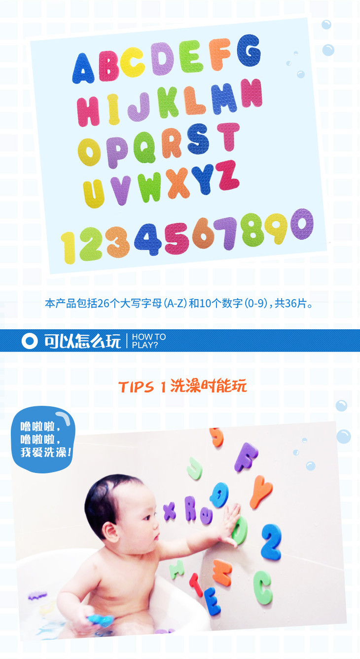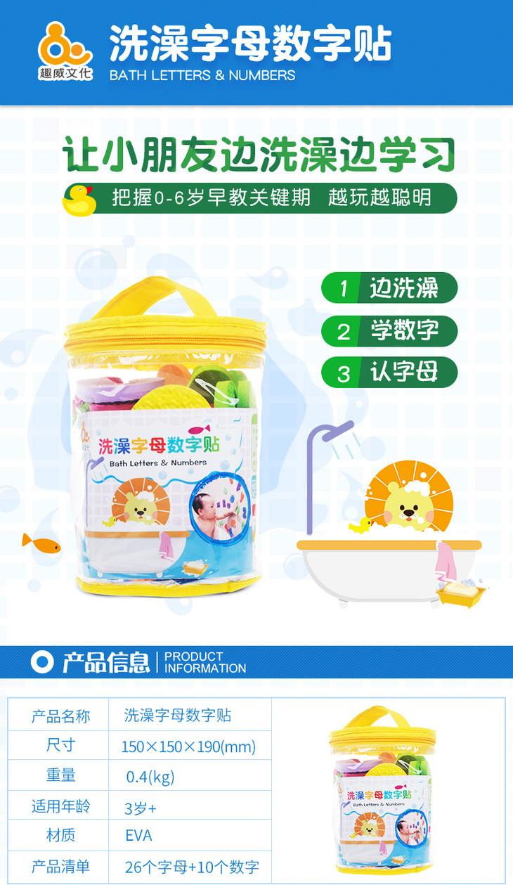 趣威文化 洗澡字母数字贴