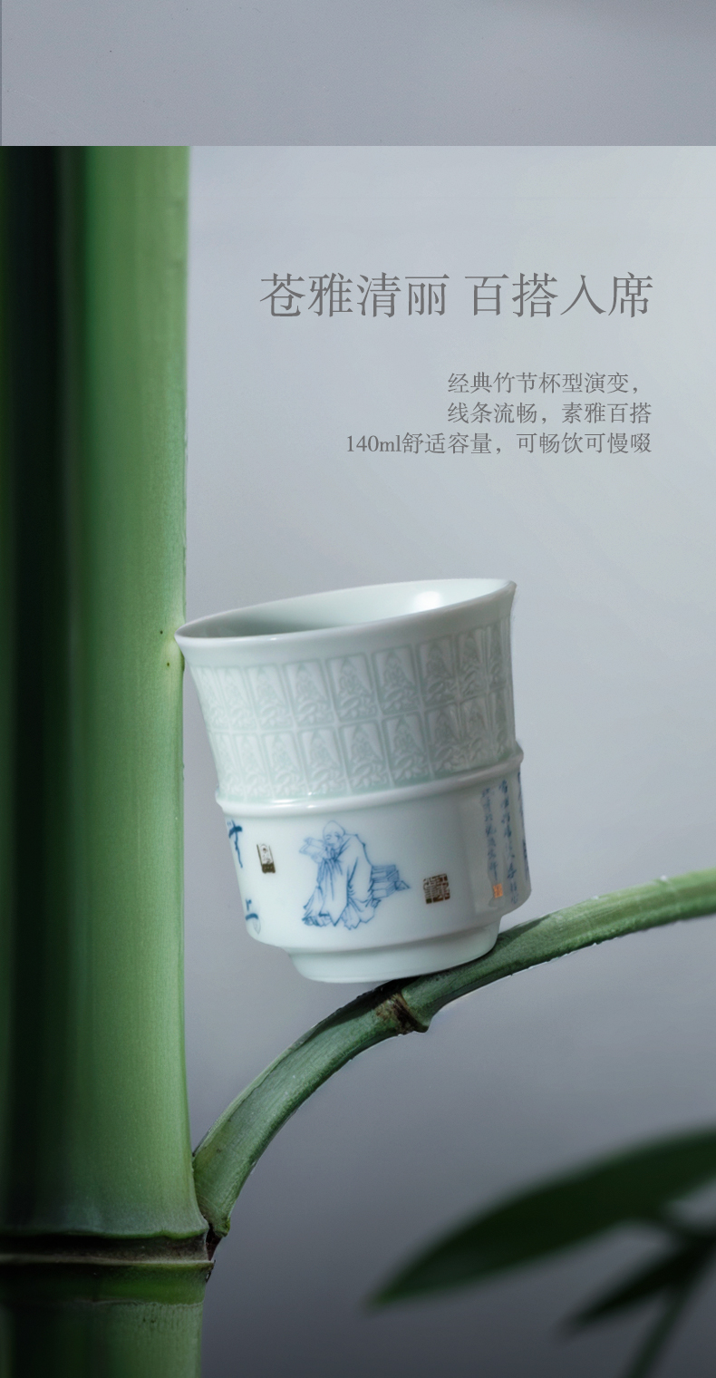 选用经典竹节杯型,线条流畅,素雅百搭。140ml的舒适容量,可畅饮,可慢啜。