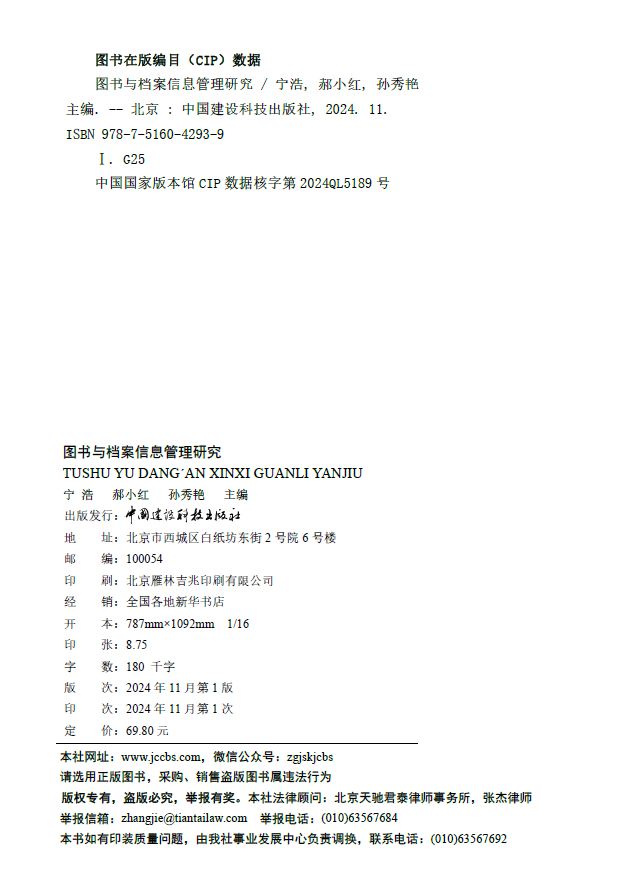 图书与档案信息管理研究 ISBN9787516042939