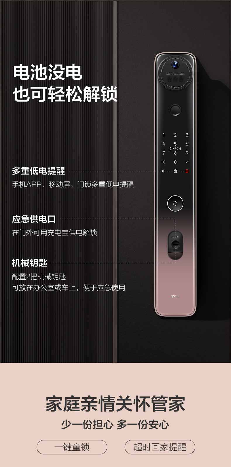 TCL掌静脉双摄猫眼锁智能门锁K9G Max