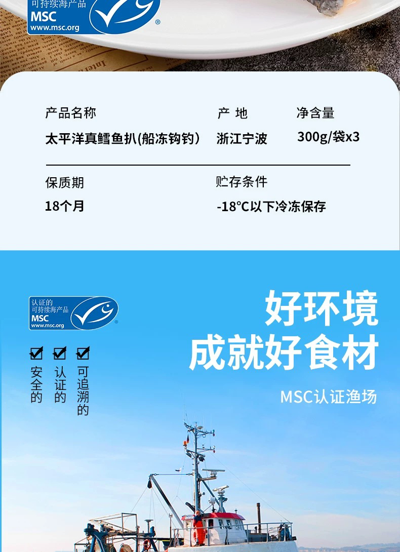 【BF】蓝雪太平洋真鳕鱼扒 300g/袋(提货时间:4.9-4.21)