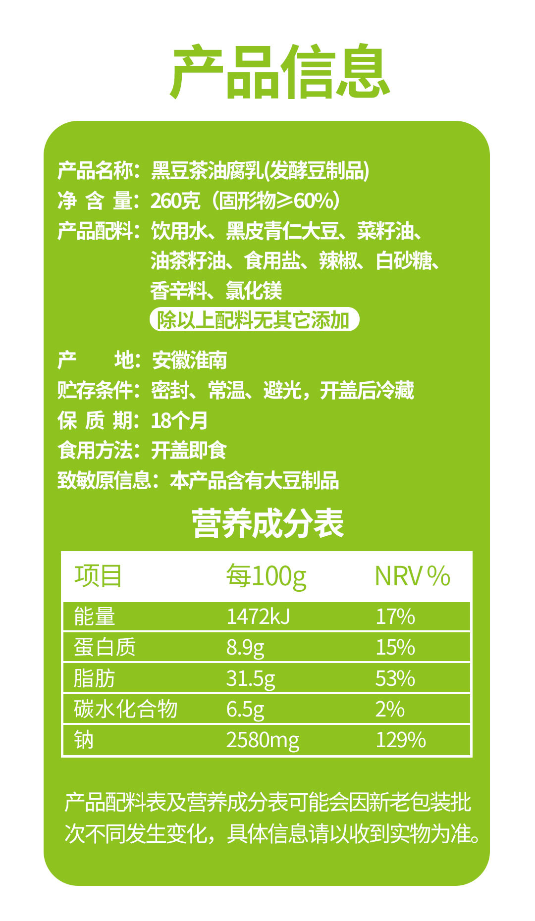 【产品名称】黑豆茶油腐乳(发酵豆制品)