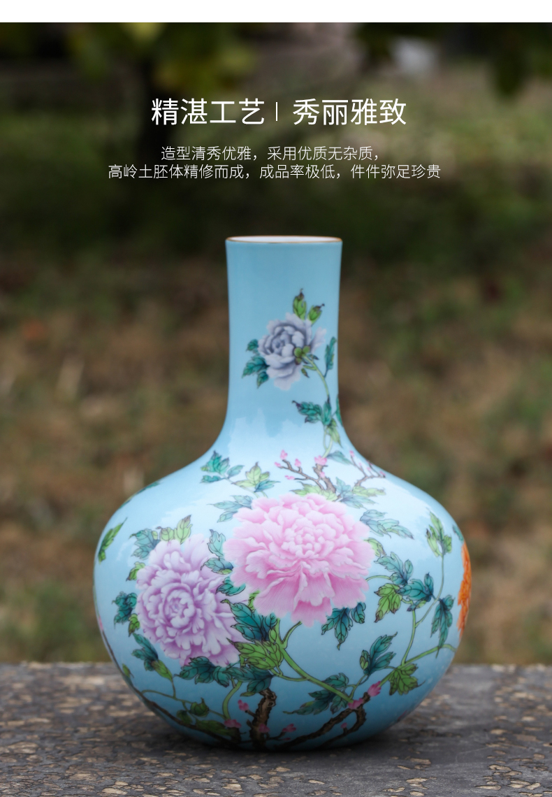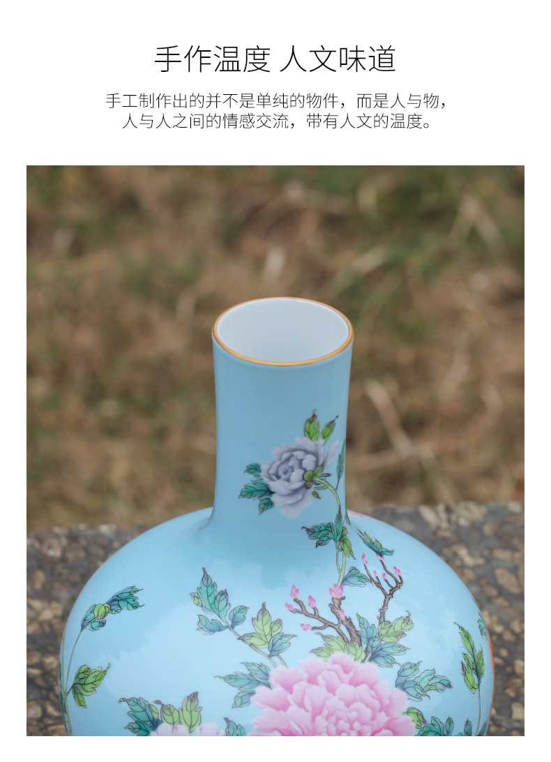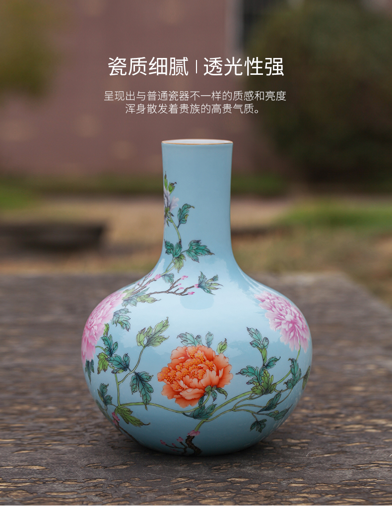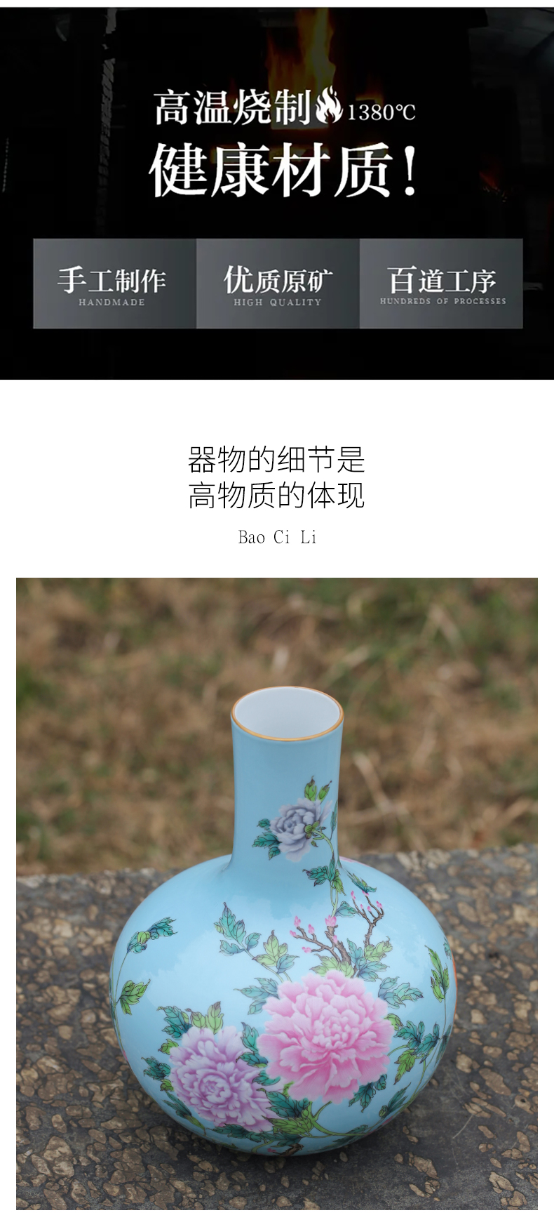 湖水蓝地粉彩描金花卉纹天球瓶(100件) 商品图2