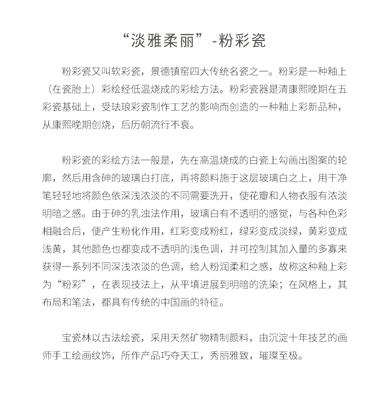 宝瓷林,2008年创立,是一家将传统清宫官窑制瓷技艺,移植于当代家居日用瓷品上的景德镇陶瓷骨干企业,是当下唯一一家代表“千年瓷都-景德镇”走向全球的陶瓷连锁品牌,被誉为陶瓷界的“国酒茅台”。