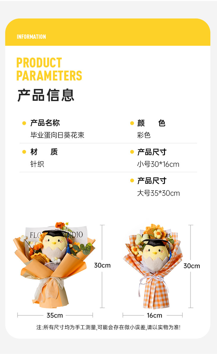 【毕业蛋向日葵花束】可定制创意纪念摆件毕业送礼礼品礼物学士/硕士/博士