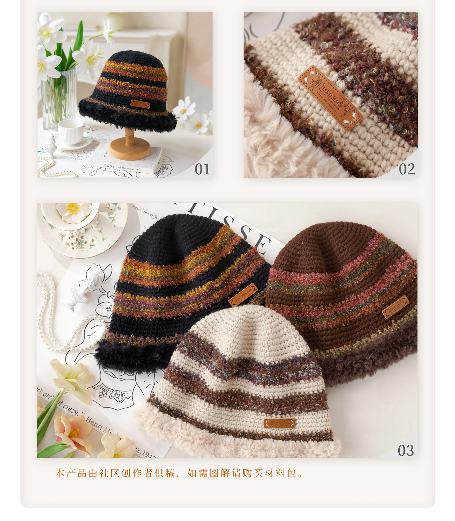苏苏姐家松绒渔夫帽手工diy编织钩针手编二号线毛线团帽子材料包