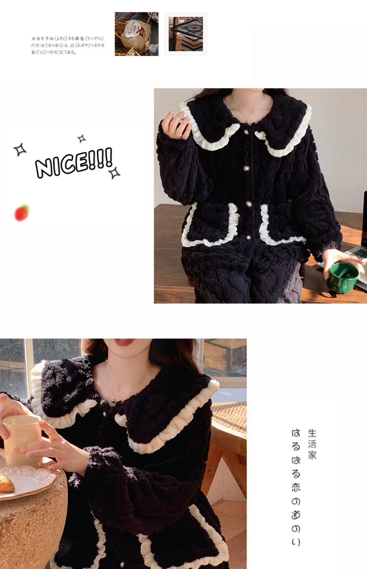 【ins小香风❗️珊瑚绒家居服套装】甜美公主风,加绒加厚,轻柔舒适耐穿❗️超暖冬季柔软新款保暖睡衣女套装