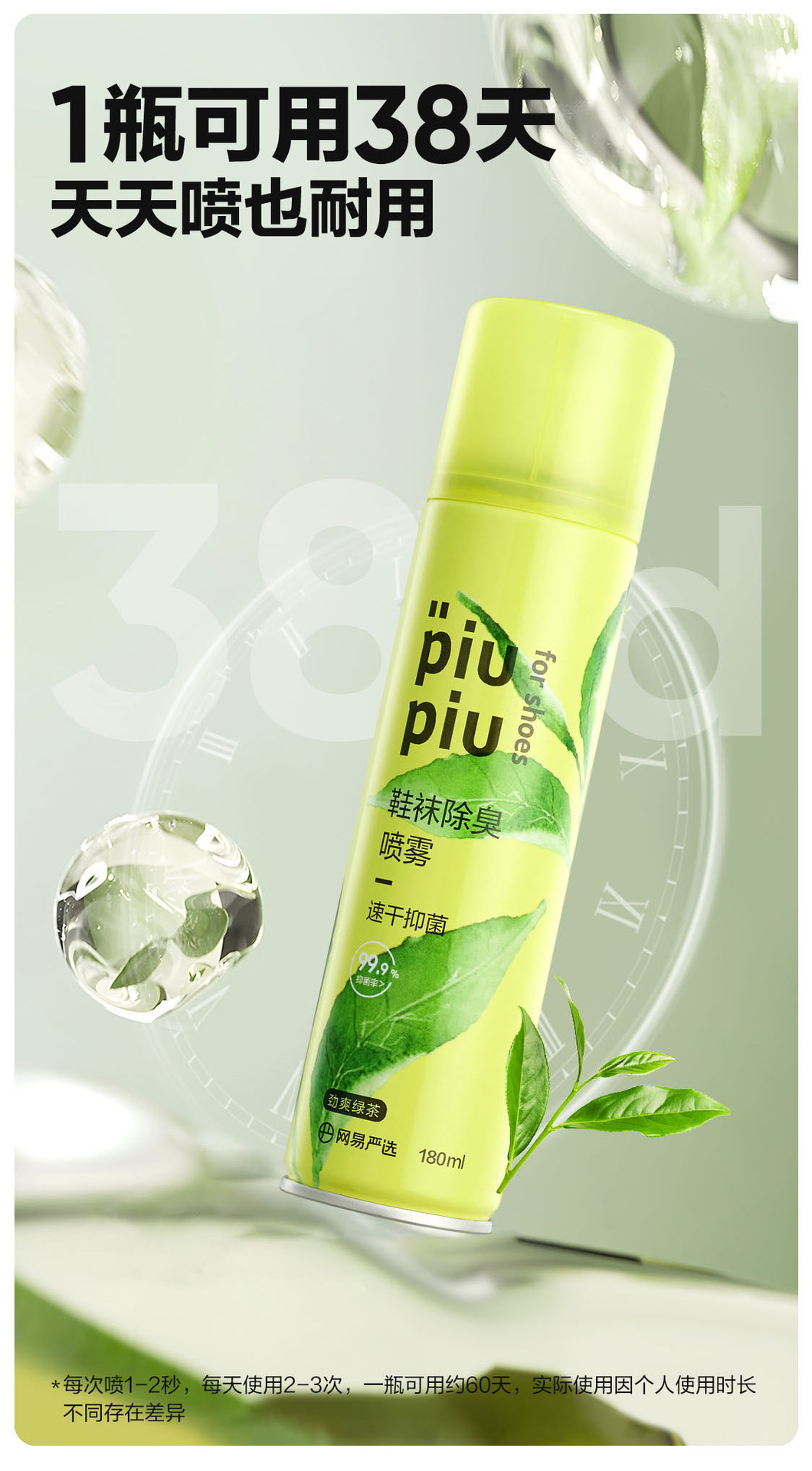 【高效去味❗️piupiu除臭喷雾】夏日鞋柜必备搭配,99.9% 抑真JUN告别脚气,96.6% 高除臭率深层去味,清爽绿茶清香自然,速干配方不湿鞋,喷雾去异味鞋袜鞋柜杀JUN除味防臭去味神器QQ